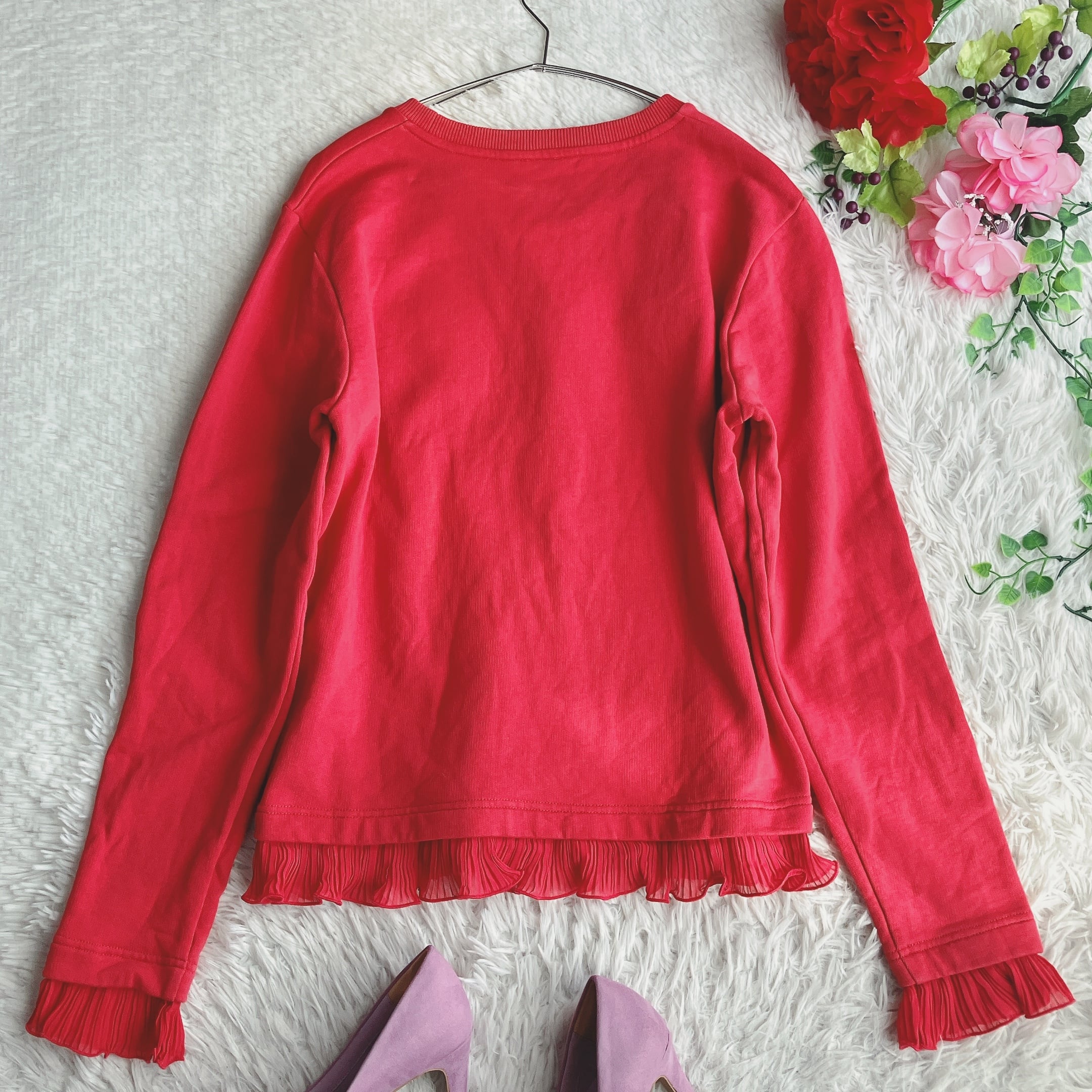 KENZO ケンゾー★シアーフリル スウェット ビッグシルエット トレーナー 花柄 ロゴ刺繍 レッド