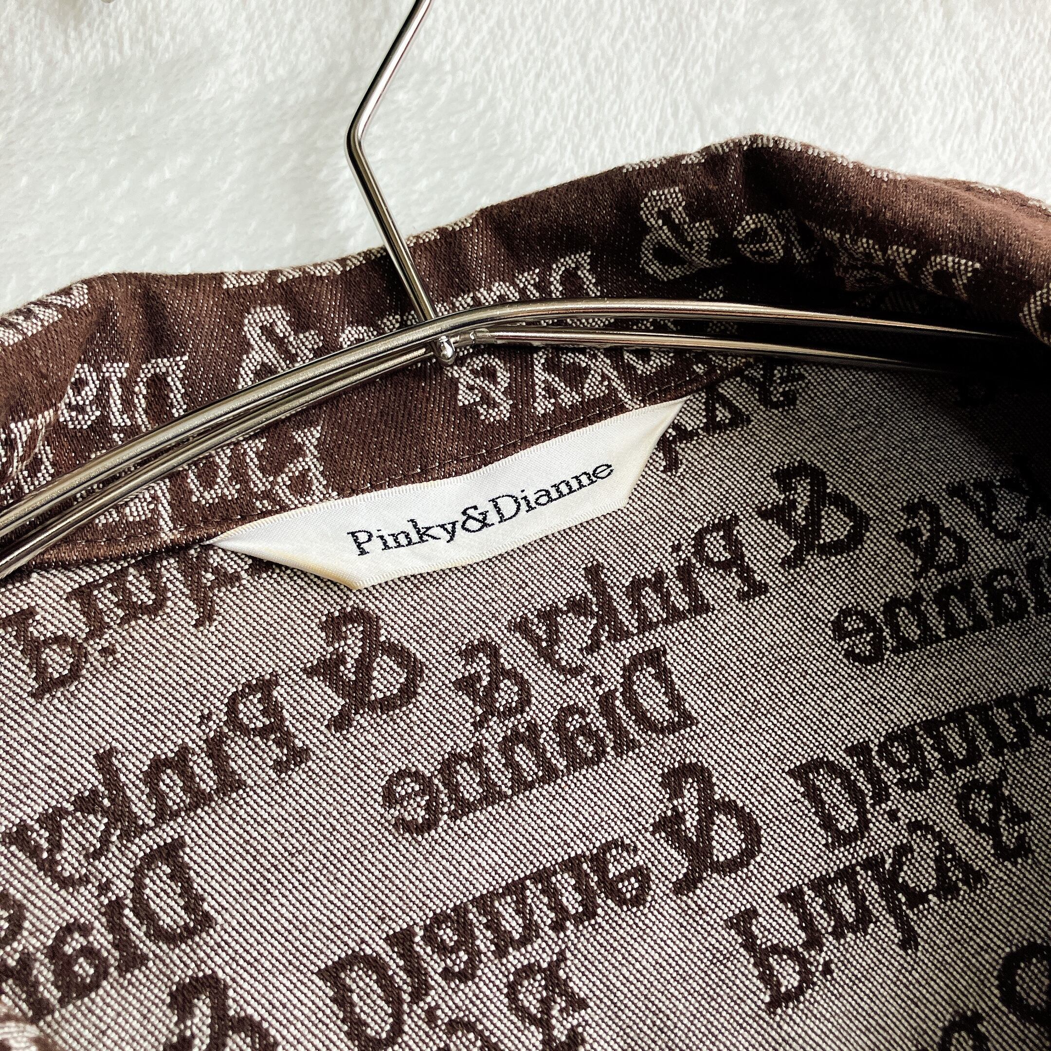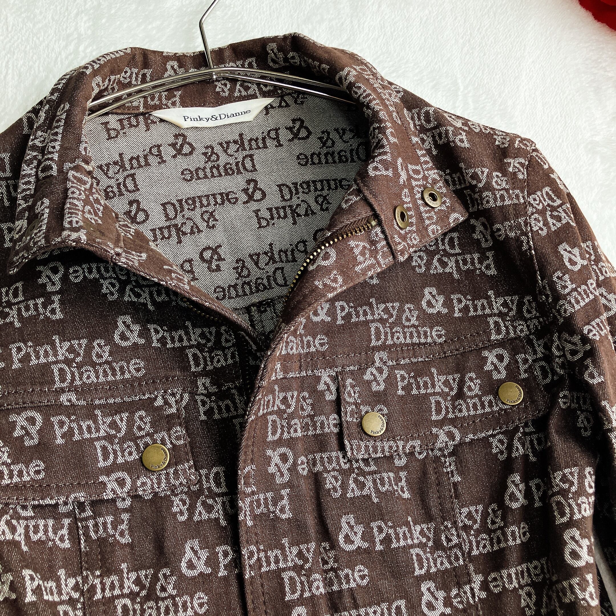 PINKY&DIANNE ピンキーアンドダイアン★ロゴ総柄 ストレッチ デニムジャケット 七分袖 ベルト付き ブラウン