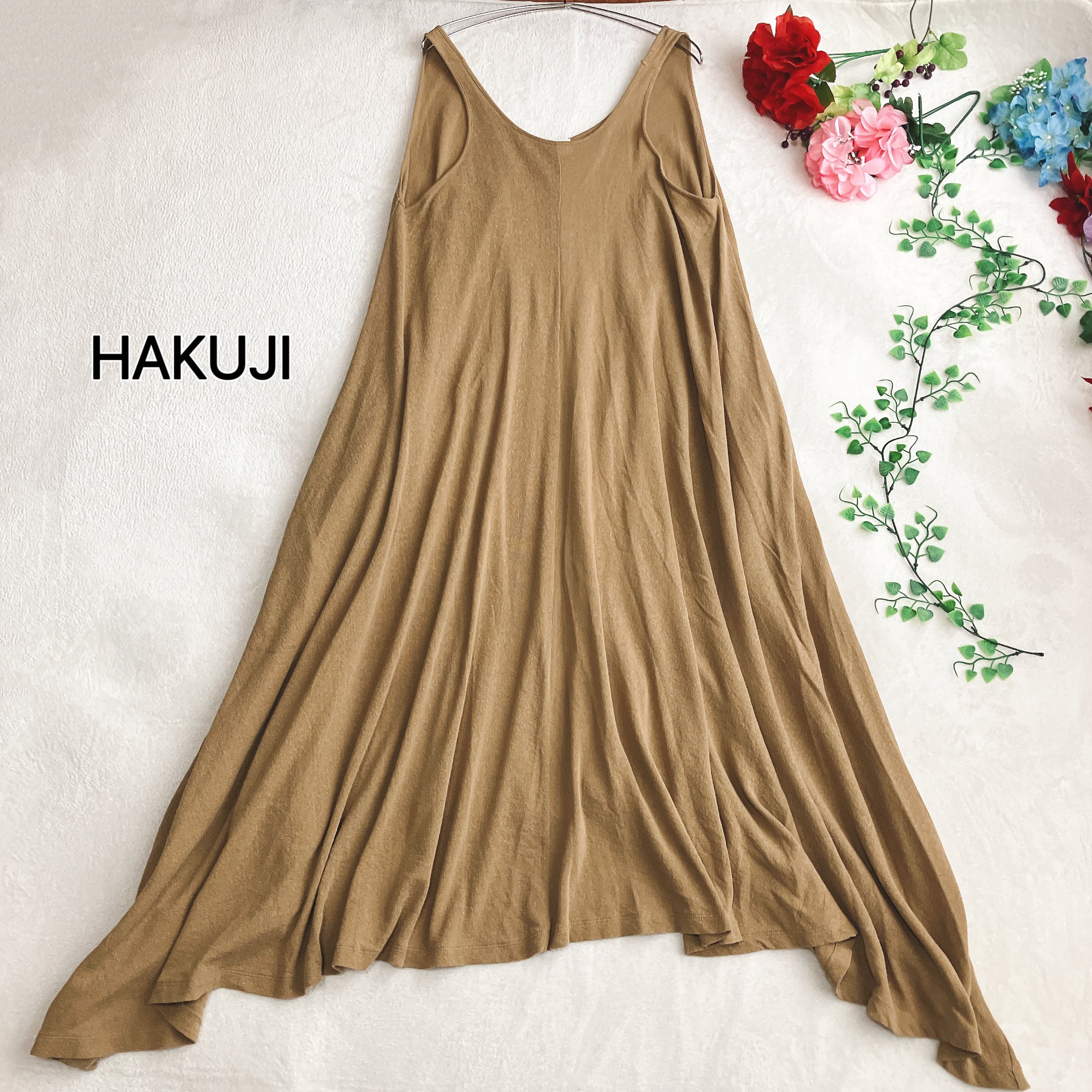 ハクジ HAKUJI★ビッグシルエット Aライン ワンピース マキシ丈 ノースリーブ シナモン系