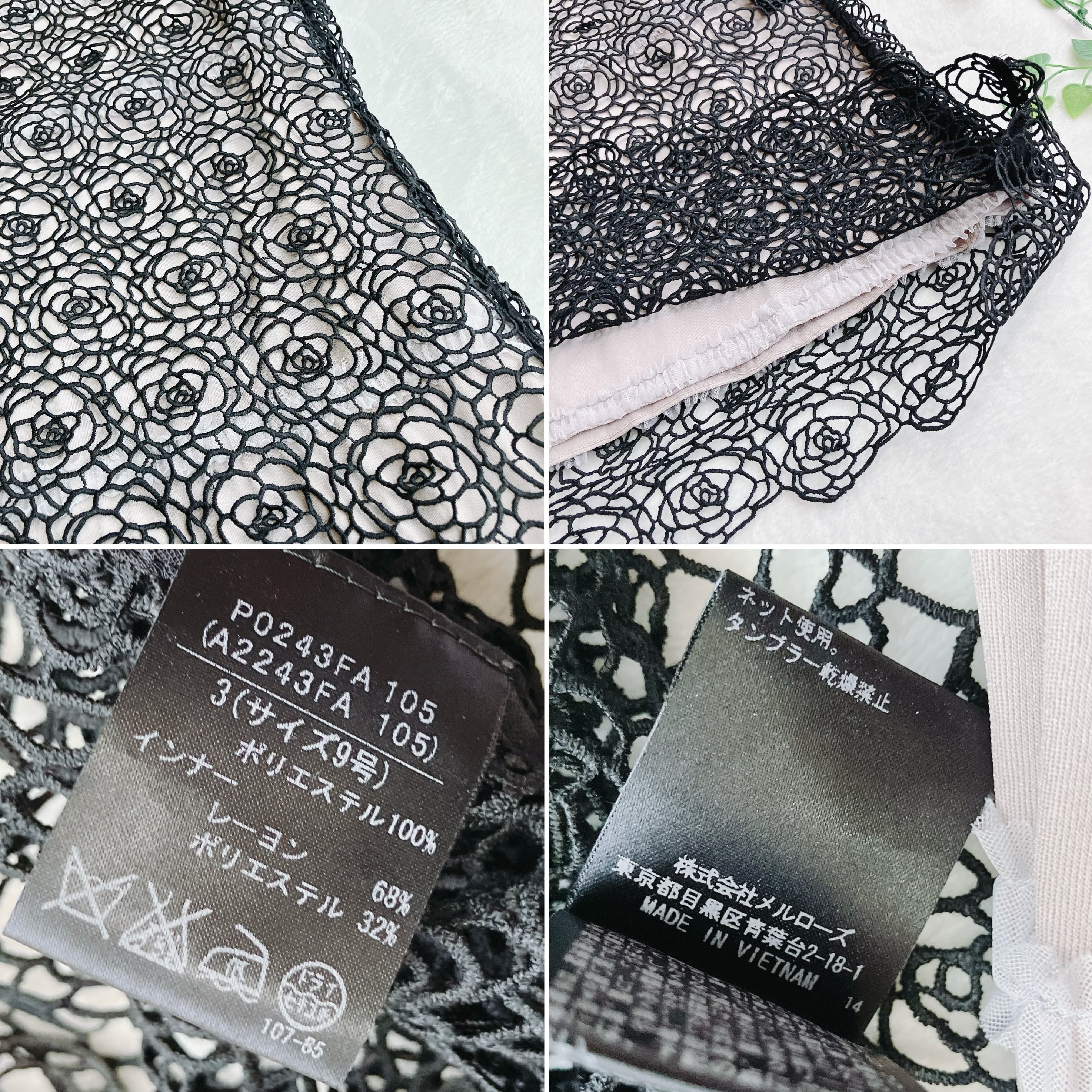 インゲボルグ INGEBORG★総レース コサージュ フリル 花柄 ワンピース Aライン ブラック×ベージュ