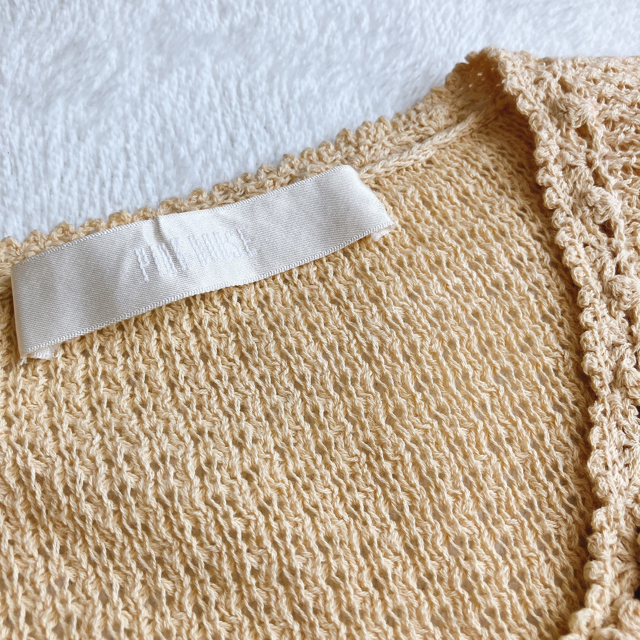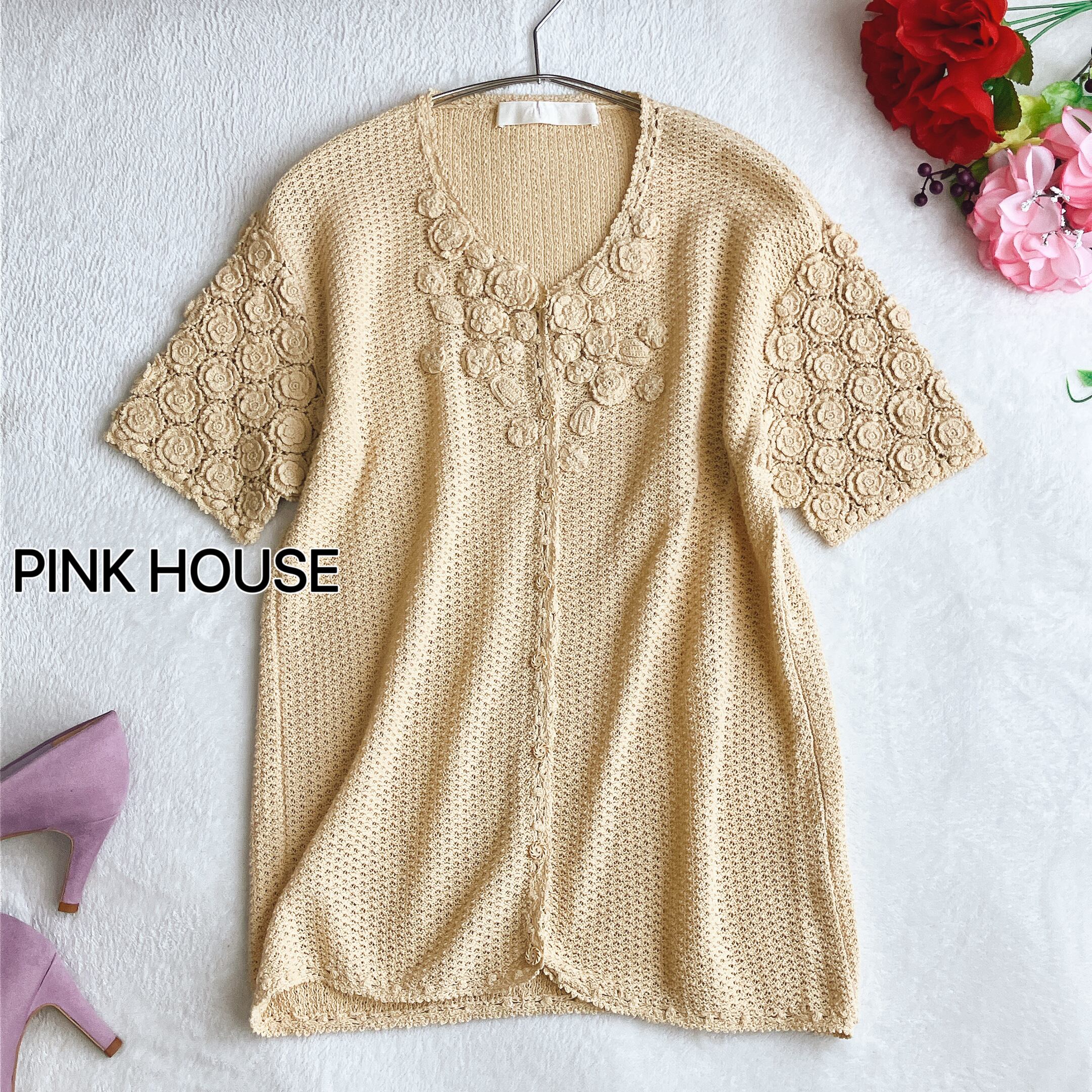 PINK HOUSE ピンクハウス★花柄モチーフ 透かし編み フリル カーディガン 半袖 ベージュ【美品】