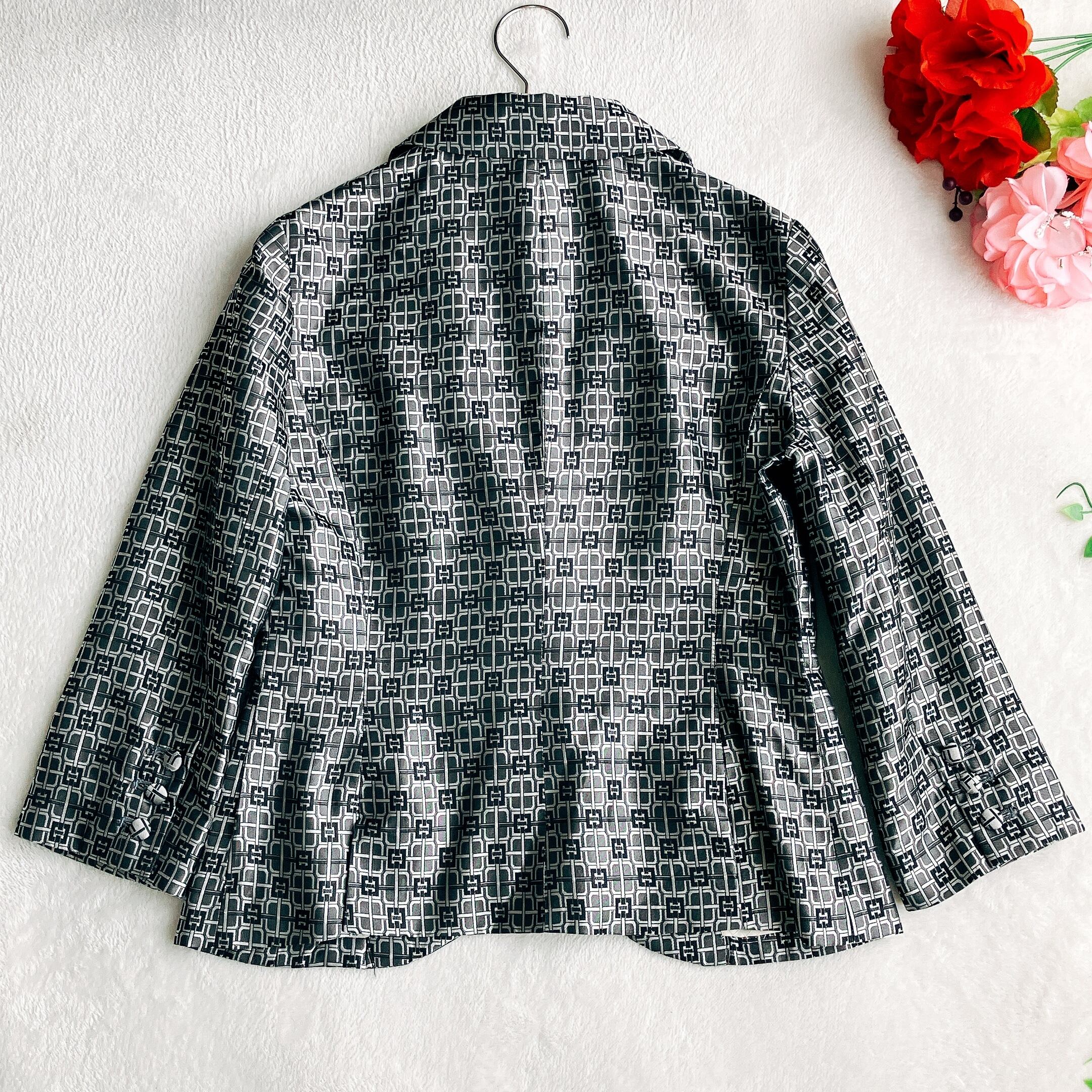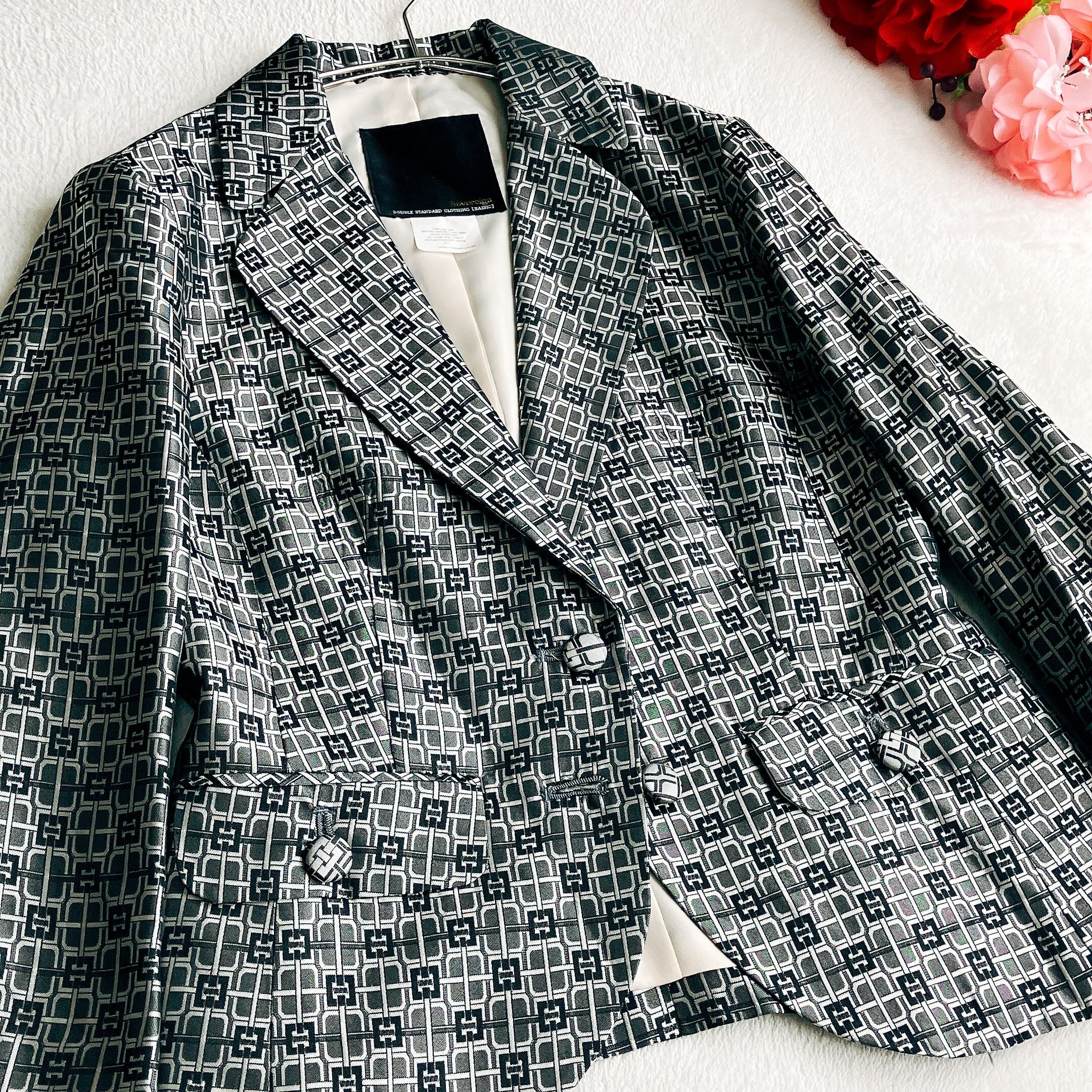 Sovereign ソブリン★光沢 シルク100% 総柄 テーラードジャケット オケージョン フォーマル グレー×ブラック系