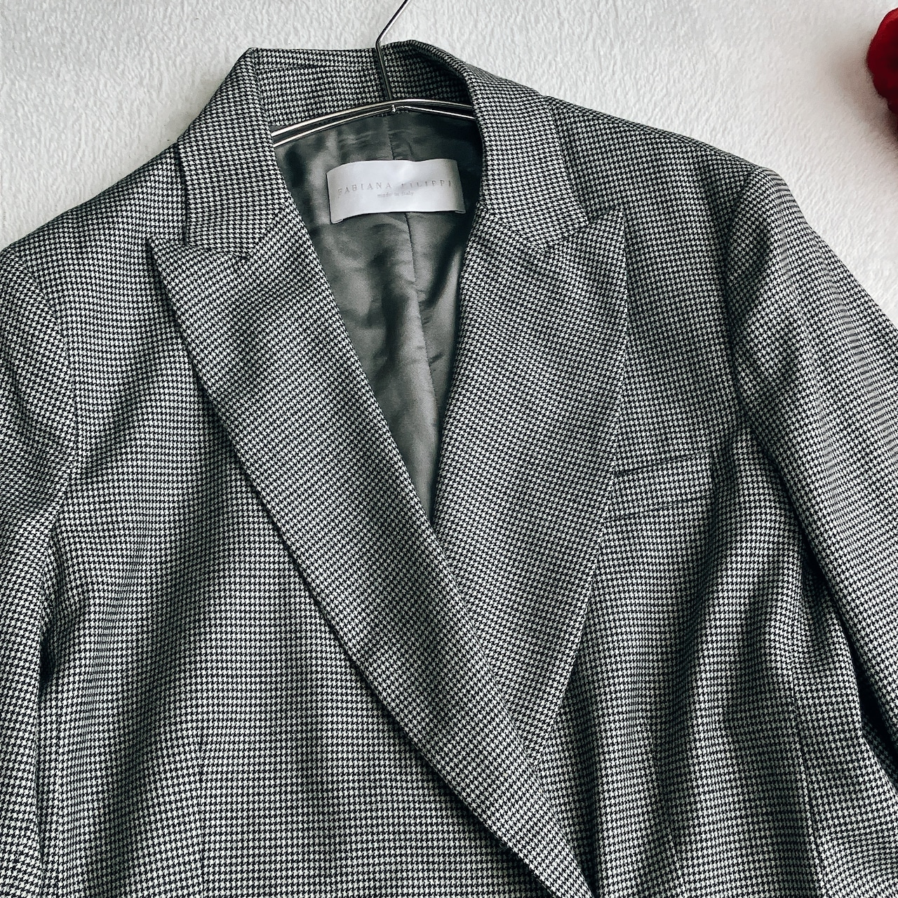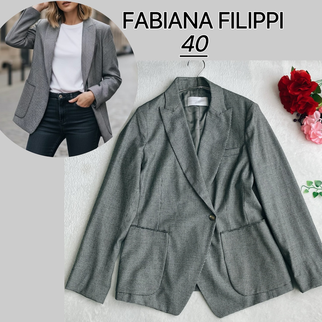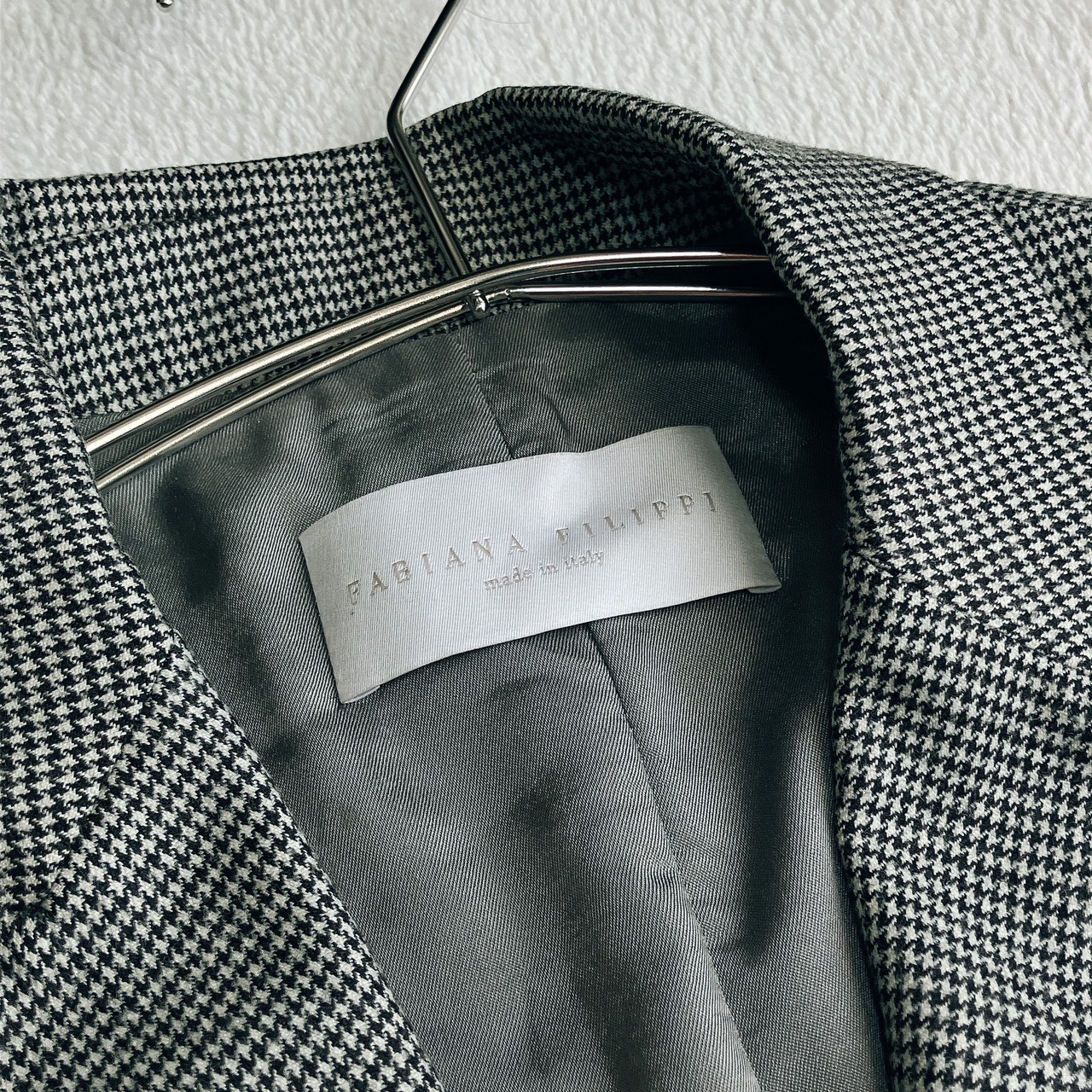 【美品】【近年モデル】FABIANA FILIPPI ファビアナフィリッピ★メリノウール テーラードジャケット ダブル 千鳥格子 ビジューポケット