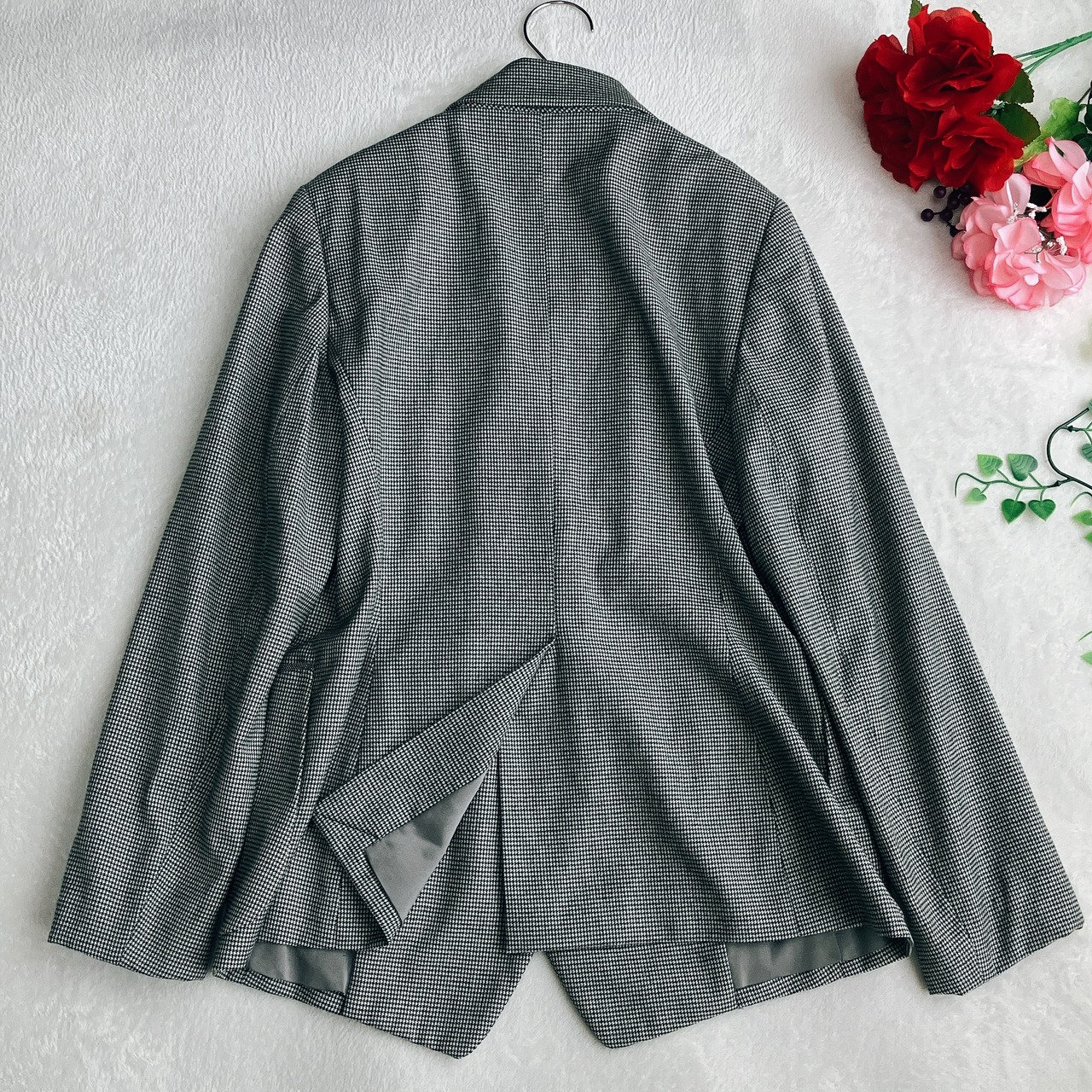 2. クラシックな千鳥格子 × ビジューポケットの洗練デザイン