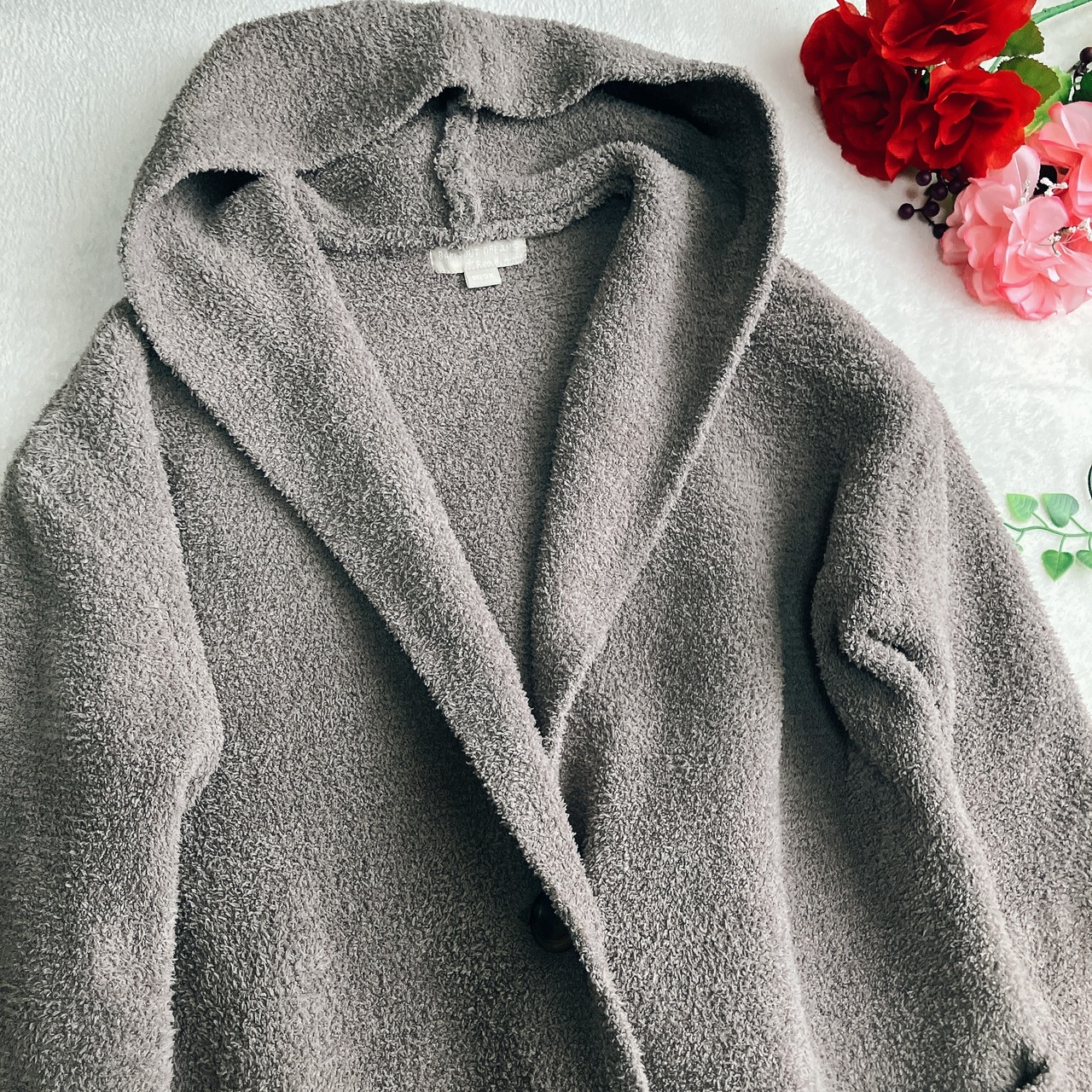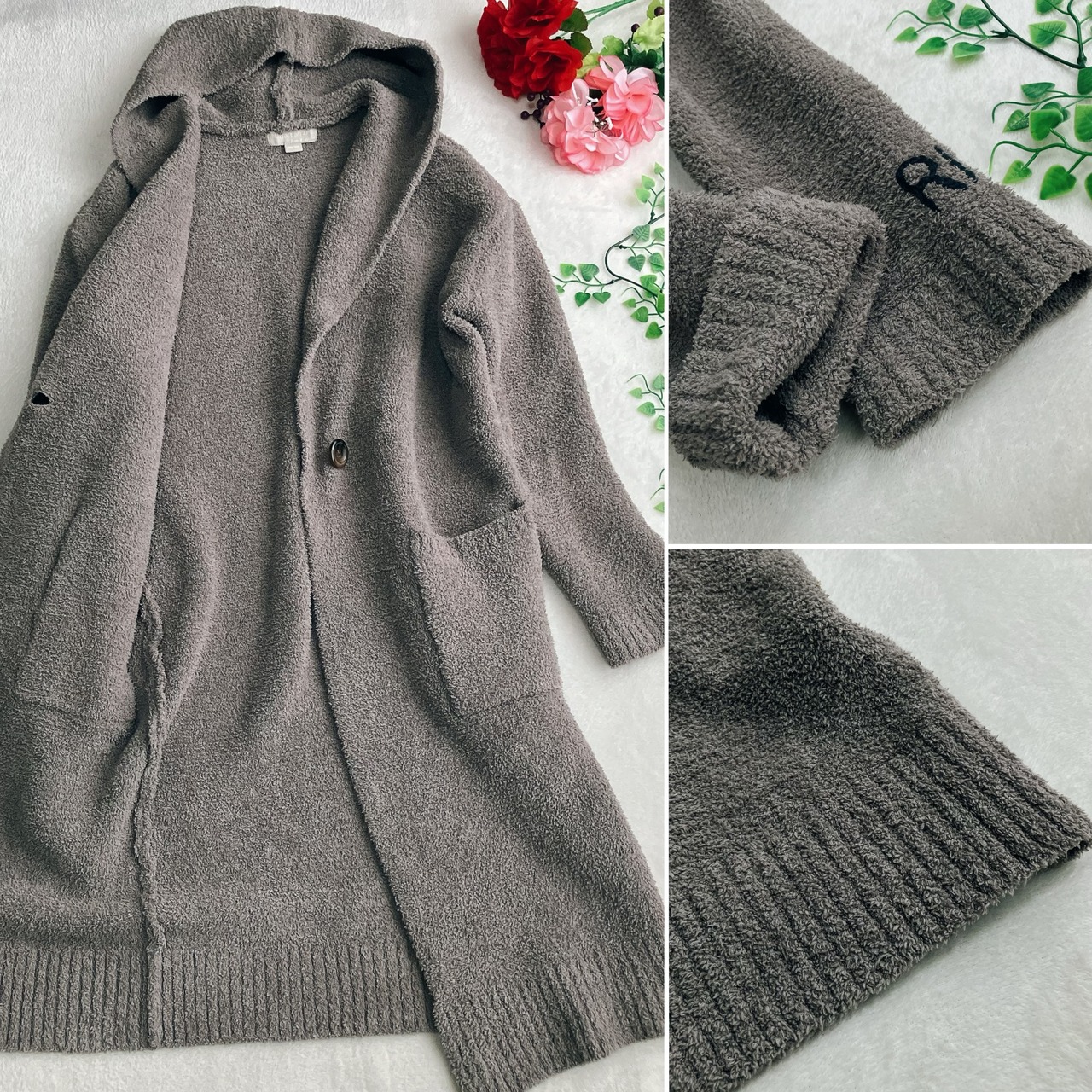 Ron Herman/BAREFOOT DREAMS ロンハーマン×ベアフットドリームズ★コージーシックニット ロングコート ショールカラー ロゴ刺繍 フード付き グレージュ系