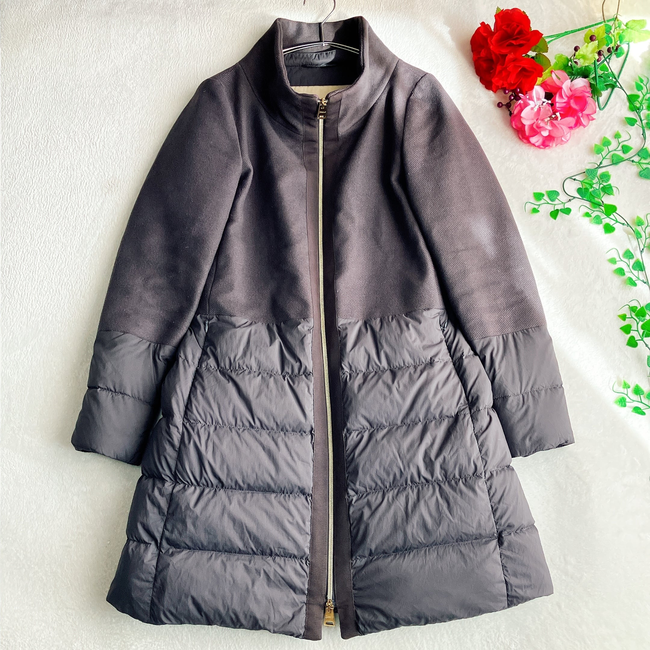 【大きいサイズ/42】【使用感アリ】ヘルノ HERNO★異素材ドッキング ダウンコート Aライン ウール イタリア製 グレー系