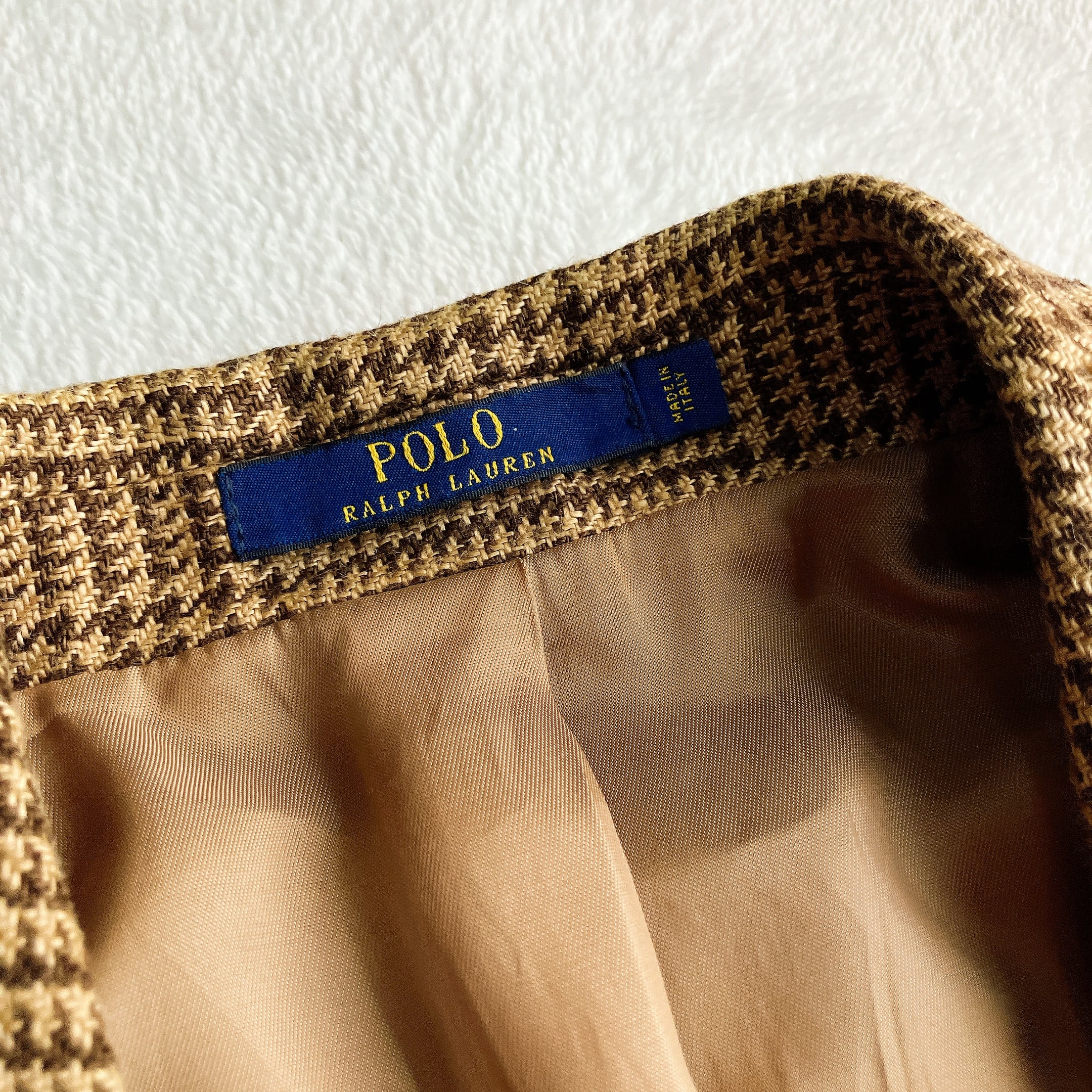 POLO RALPH LAUREN ポロラルフローレン★グレンチェック リネンツイード テーラードジャケット 段返り3B 背抜き イタリア製 ブラウン系