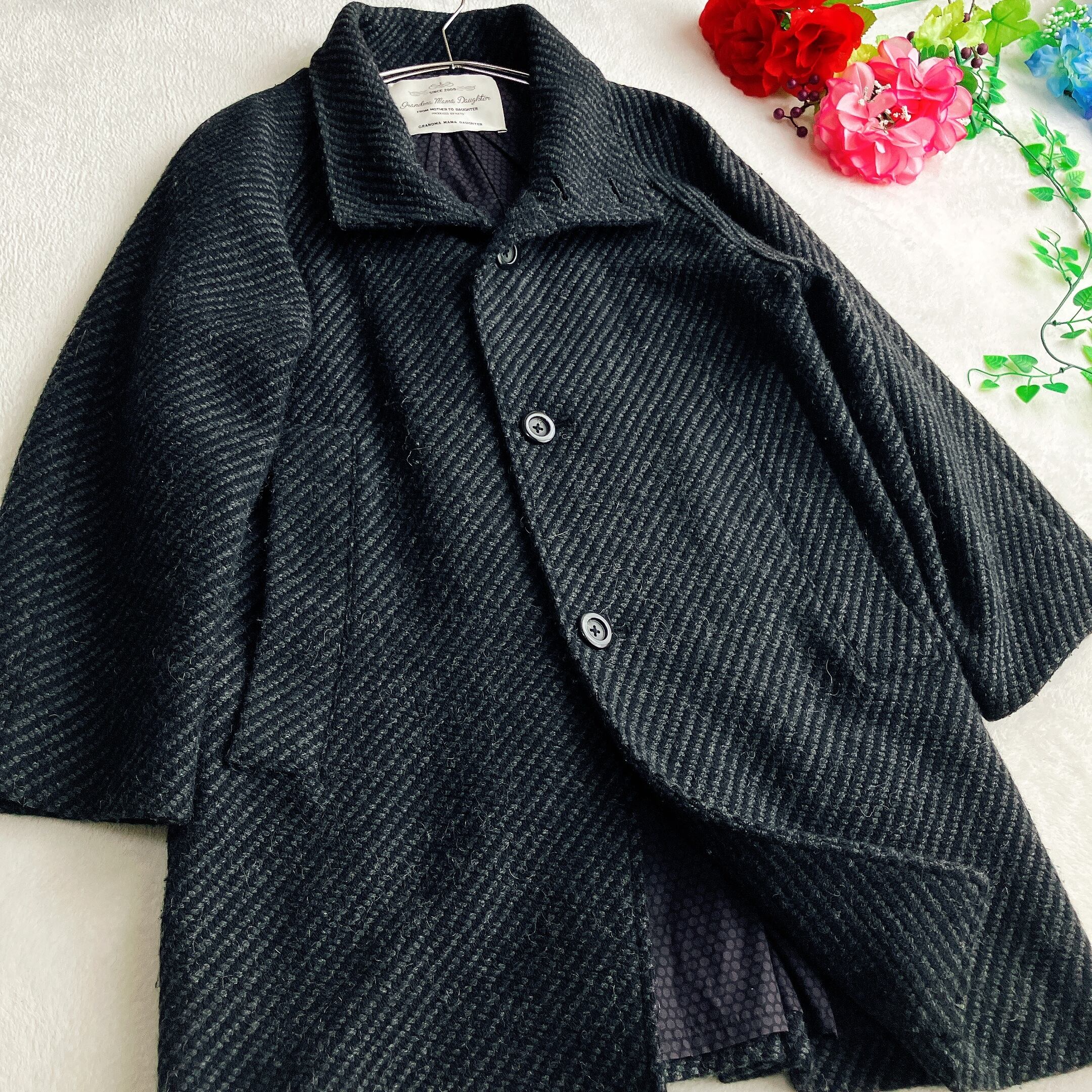 【美品】GRANDMA MAMA DAUGHTER グランマママドーター★コクーンシルエットコート ビッグカラー アンゴラ ウール ブラック×グレー