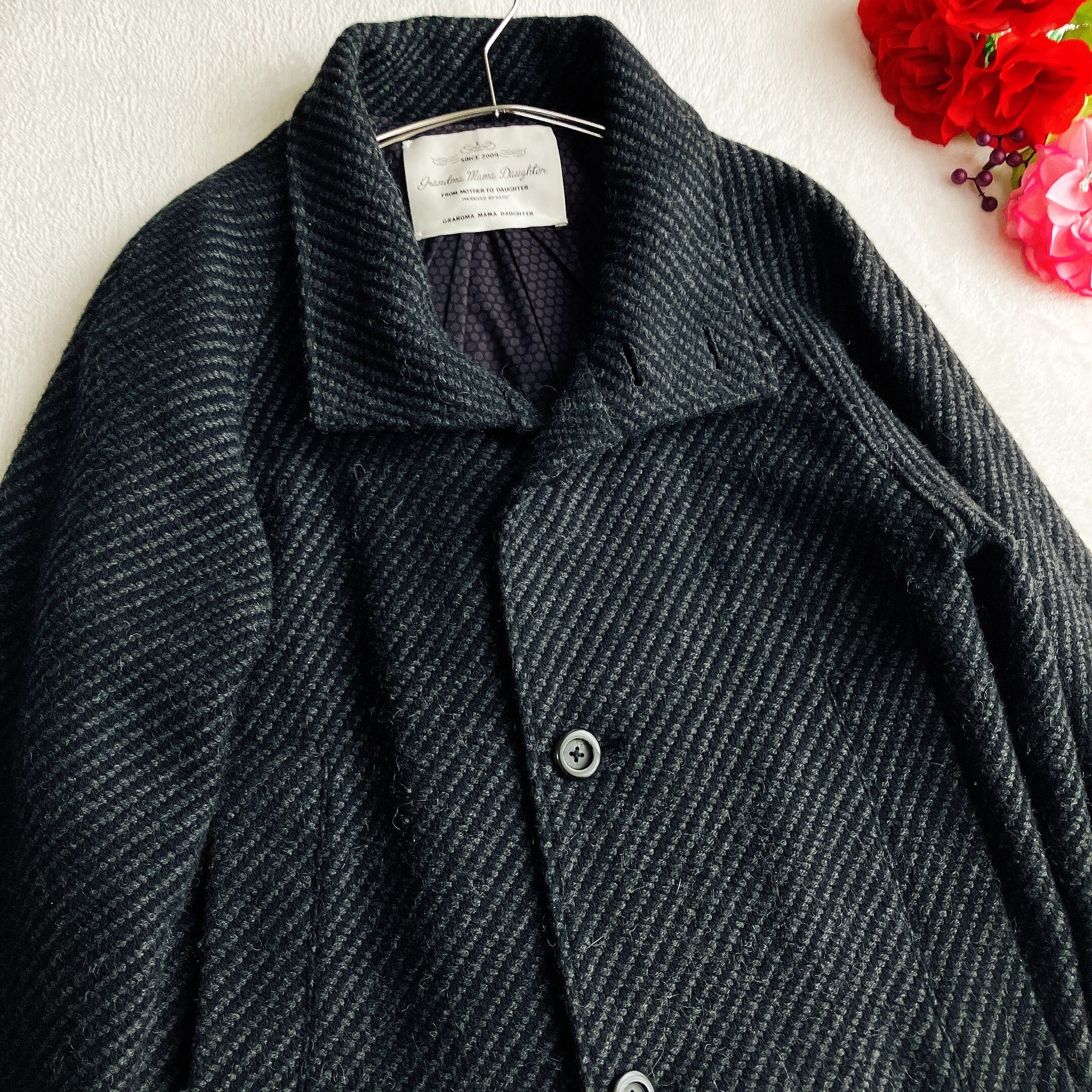 GRANDMA MAMA DAUGHTER グランマママドーター★コクーンシルエットコート ビッグカラー アンゴラ ウール ブラック×グレー