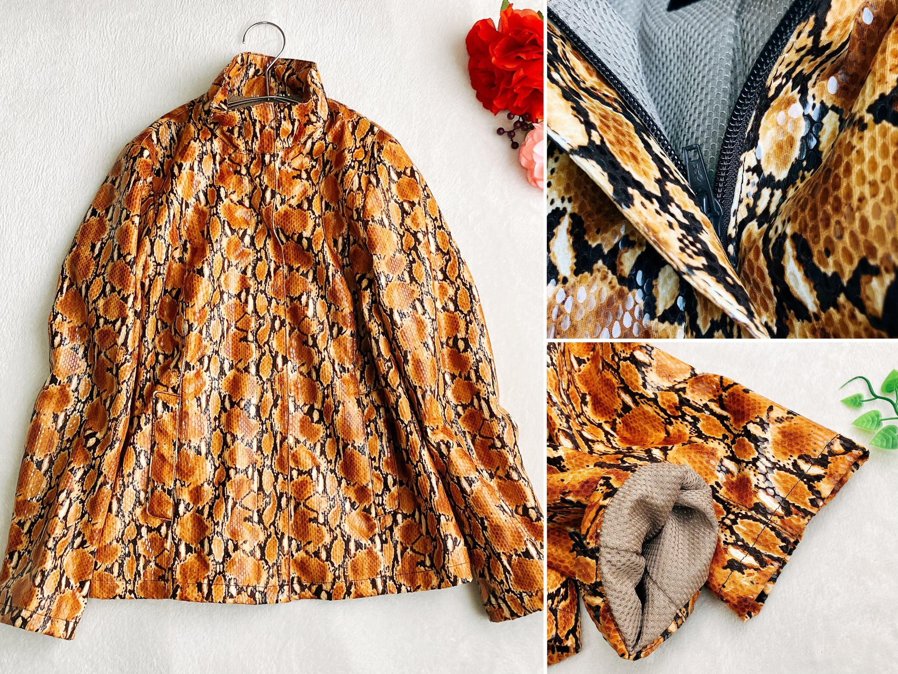 リアルなパイソン柄が印象的で、羽織るだけで高級感と個性を演出。トレンドのアニマル柄コーデにもぴったりな主役級ジャケットです。