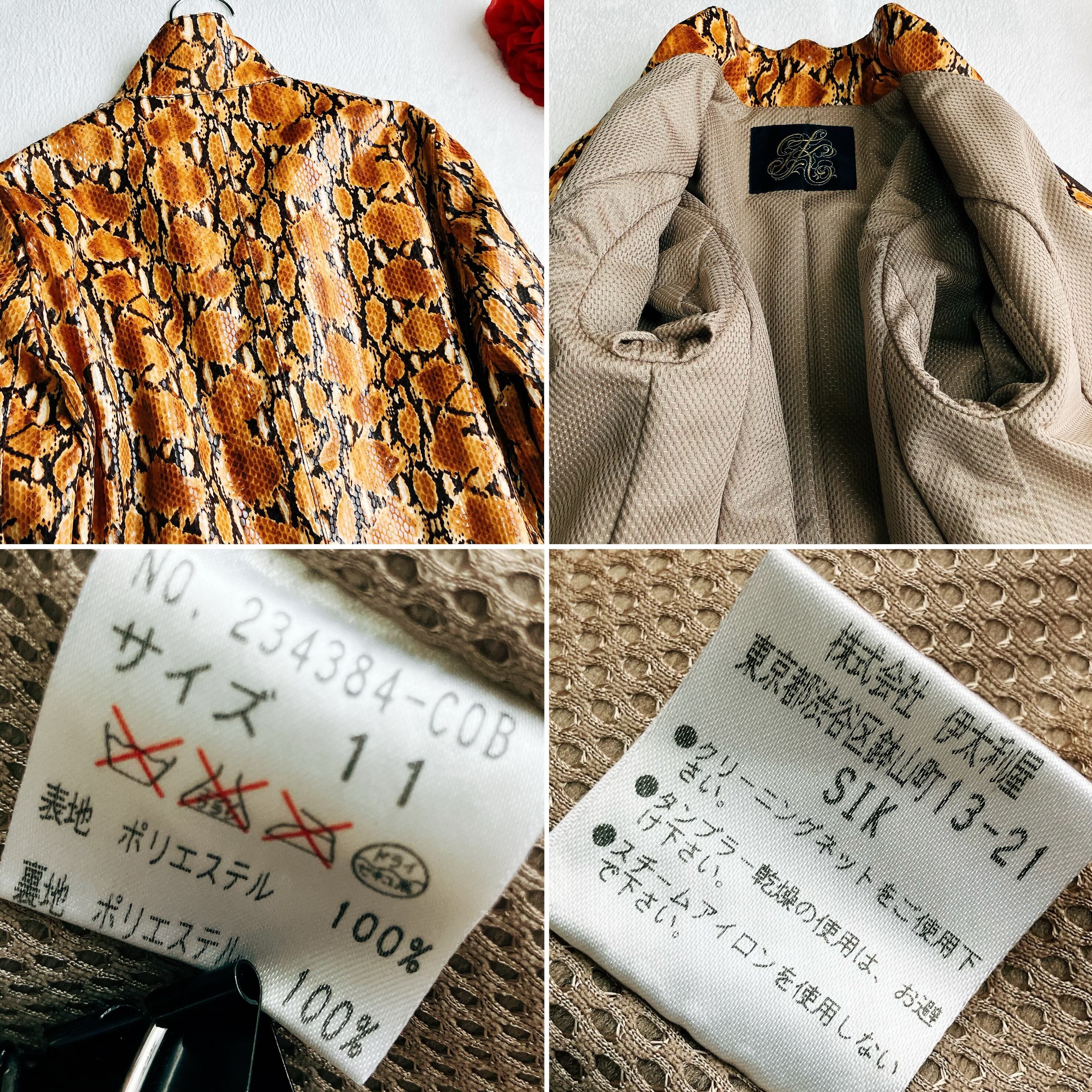 イタリヤ 伊太利屋★エナメル パイソン柄 ジャケット ブルゾン スタンドカラー ブラウン系