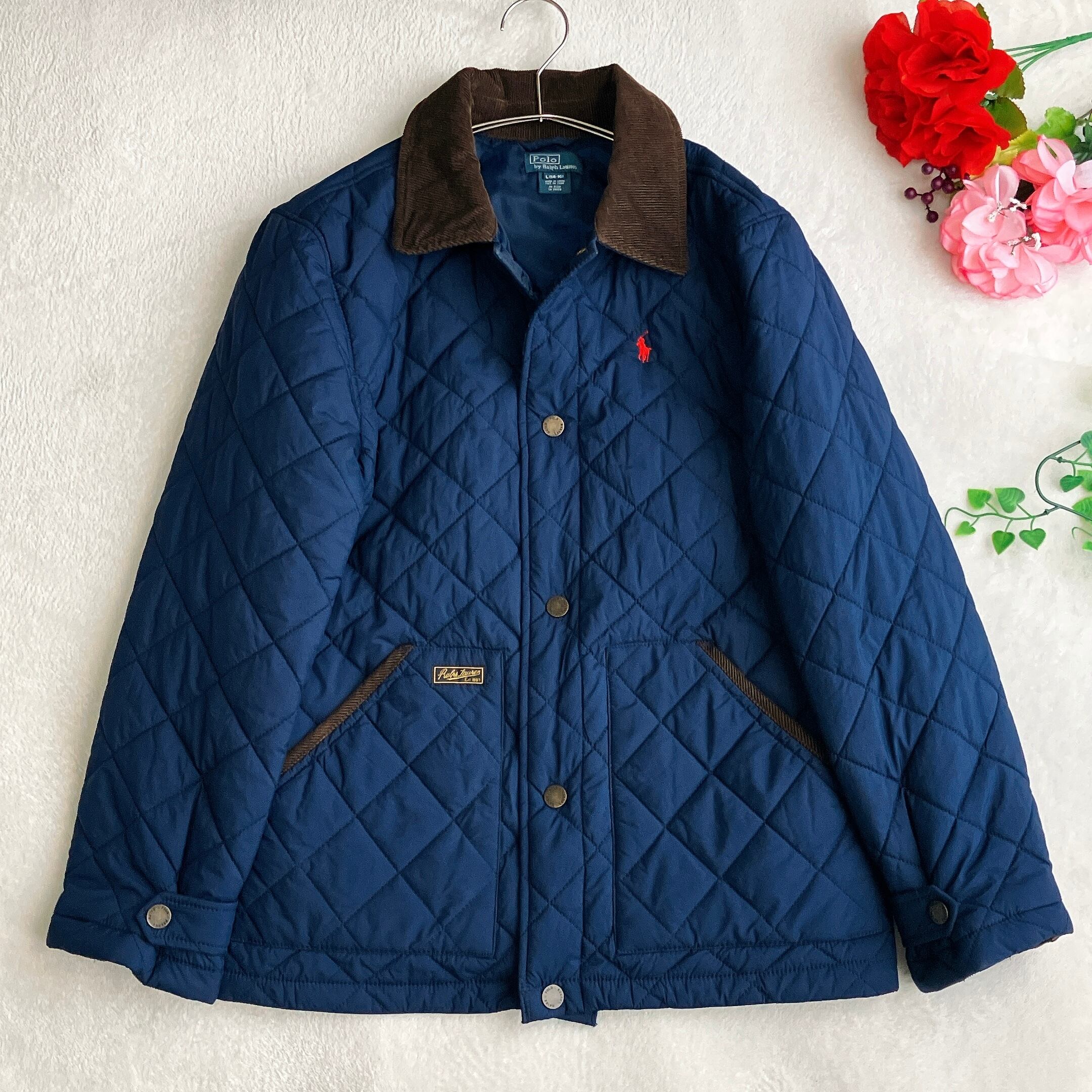 【美品】POLO RALPH LAUREN ポロラルフローレン★中綿 キルティングジャケット コーデュロイ切替え ポニー刺繍 ネイビー