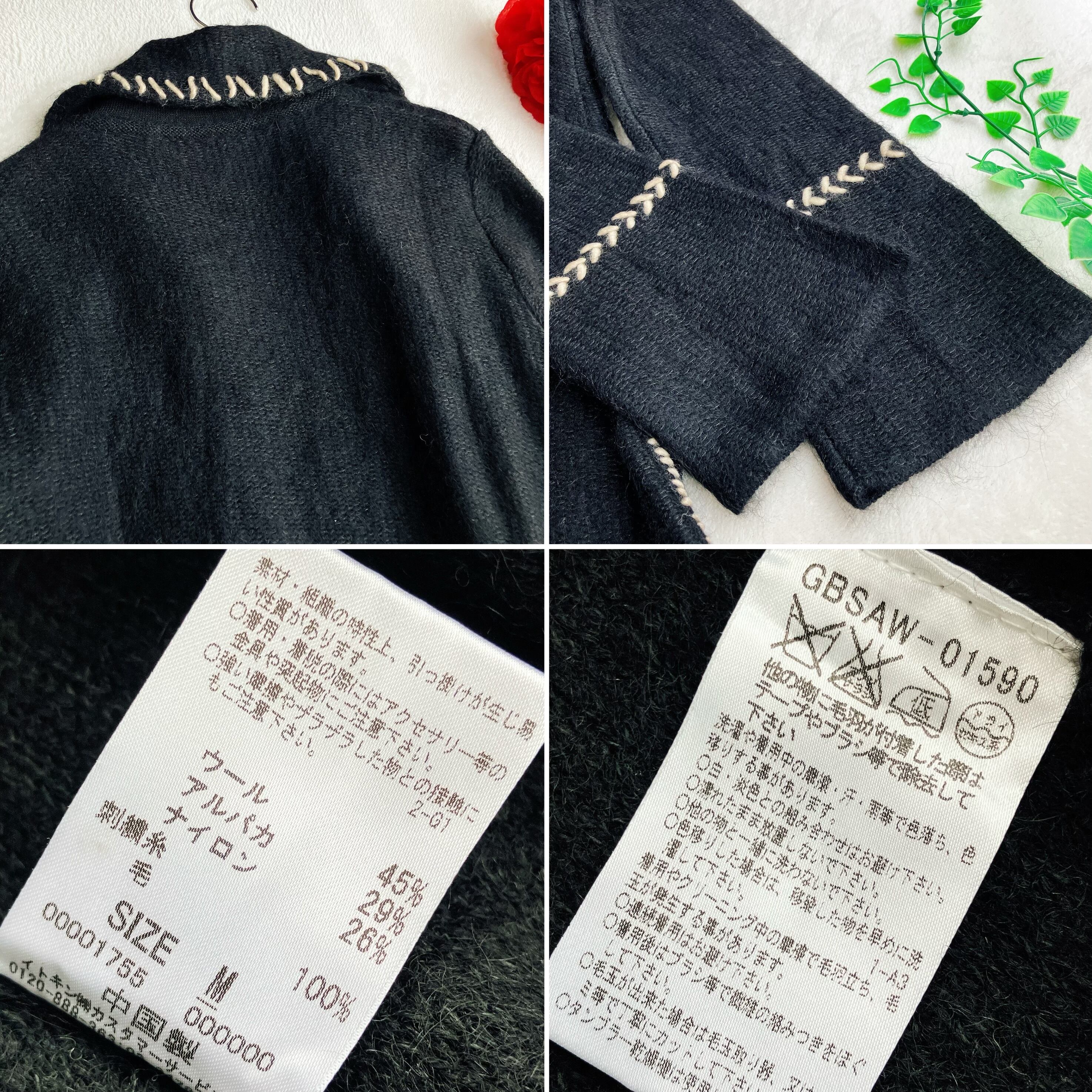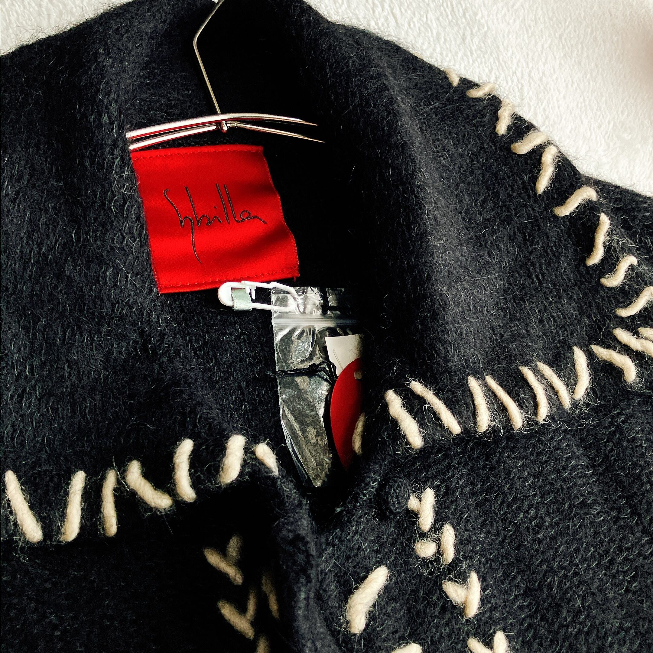 【未使用タグ付き】【ベルト付き】シビラ Sybilla★アルパカ ウール ビッグカラー 刺繍 ニットアウター ロングコート Aライン ブラック