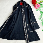 シビラ Sybilla★アルパカ ウール ビッグカラー 刺繍 ニットアウター Aライン ロングコート ブラック