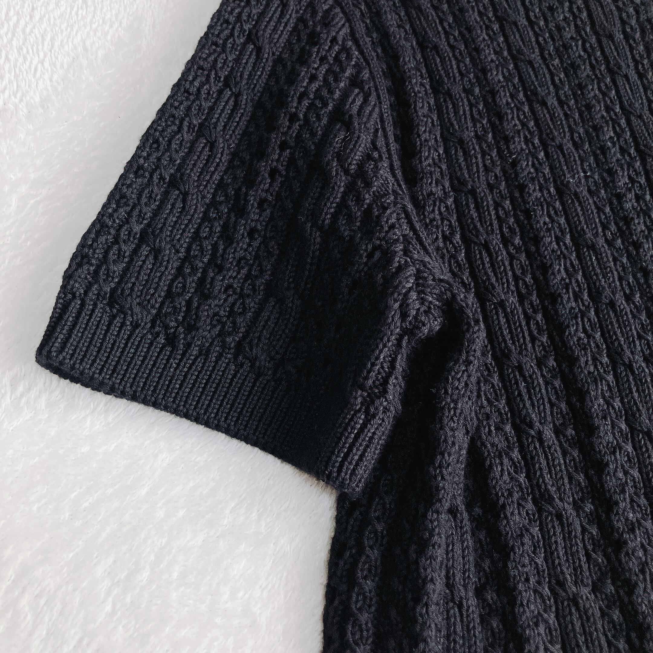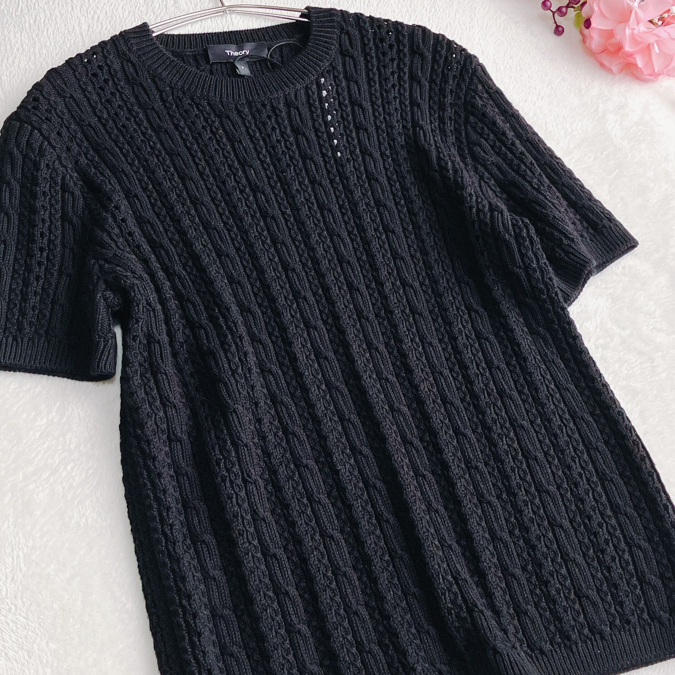 【2025】【未使用タグ付き】セオリー Theory★ケーブルニット コットン 半袖セーター 上品な質感 ブラック