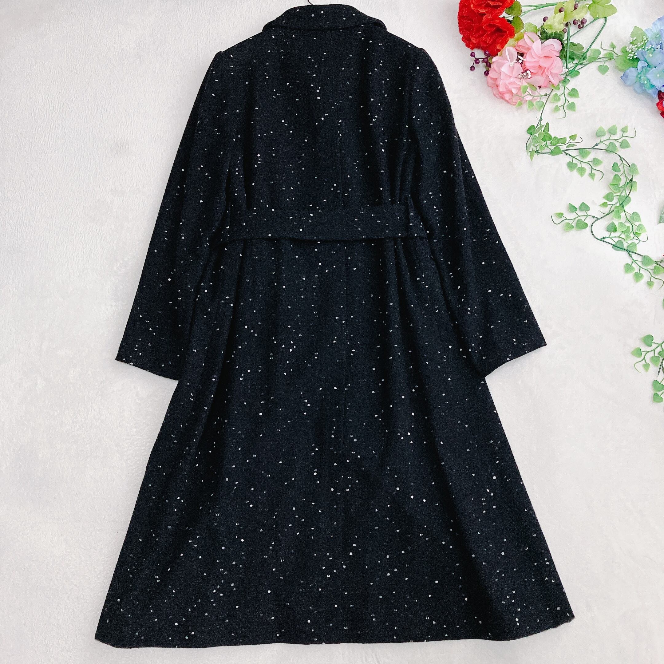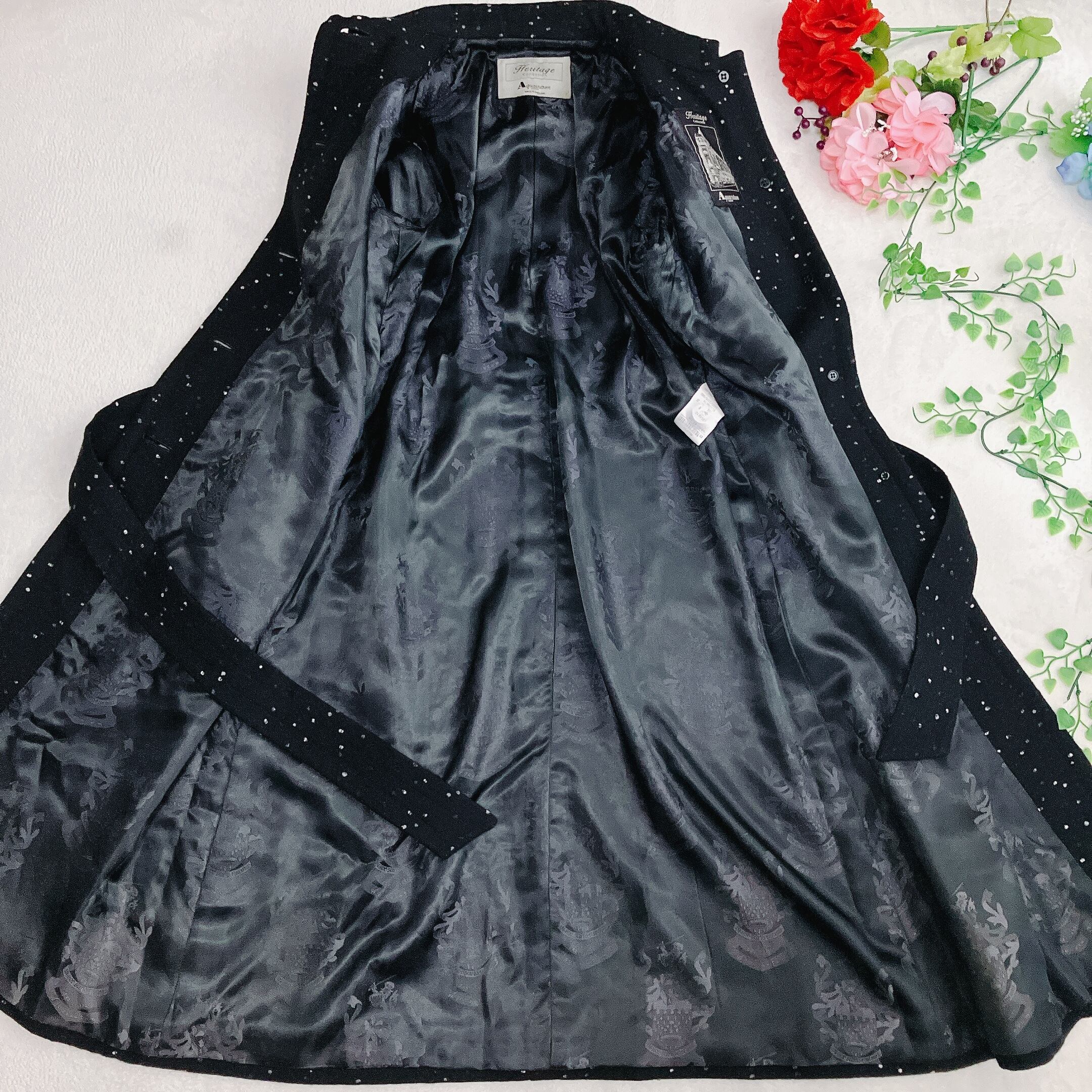 Aquascutum アクアスキュータム ヘリテージコレクション★カシミヤ90% 総柄 ステンカラーコート Aライン ベルト付き 裏地ロゴ ブラック系