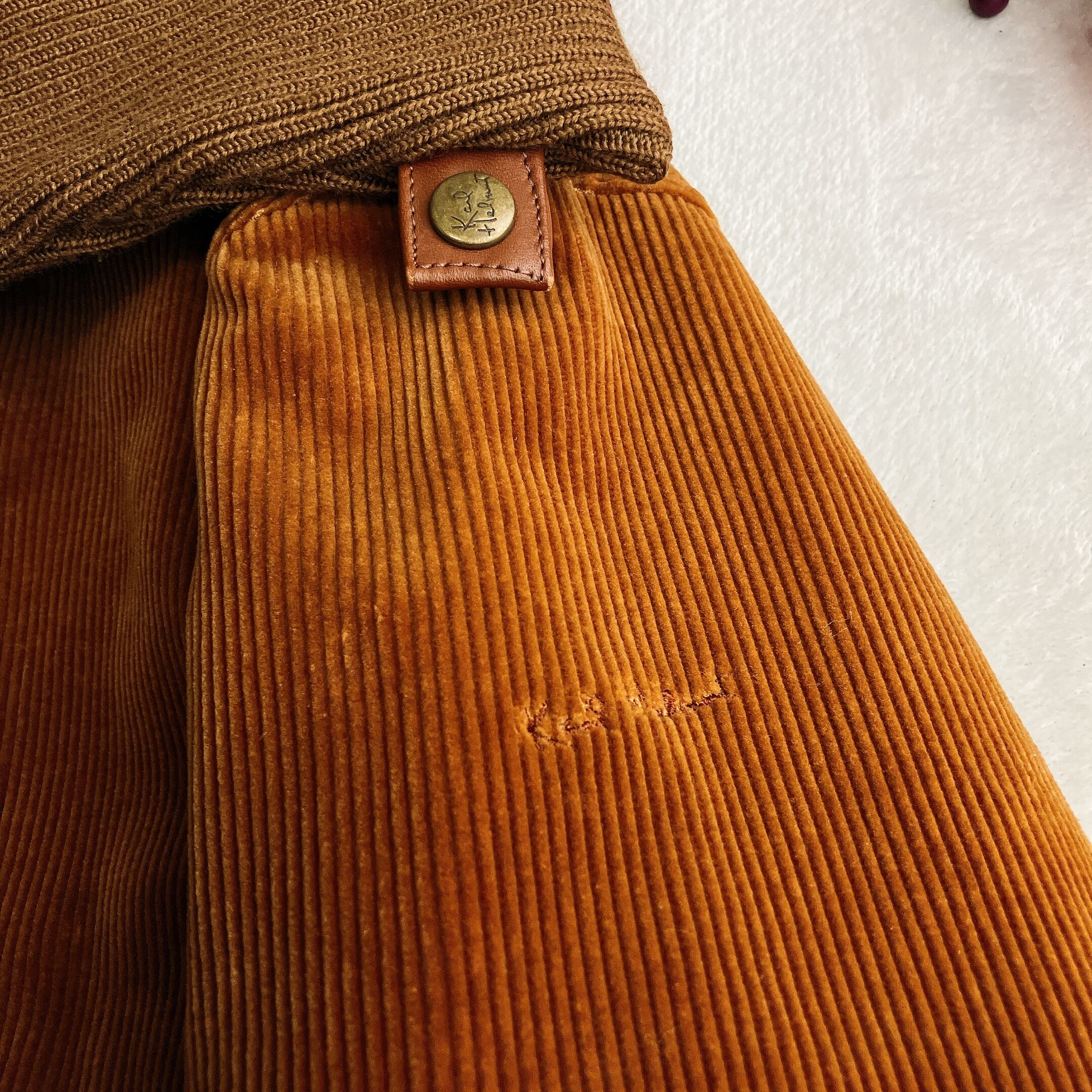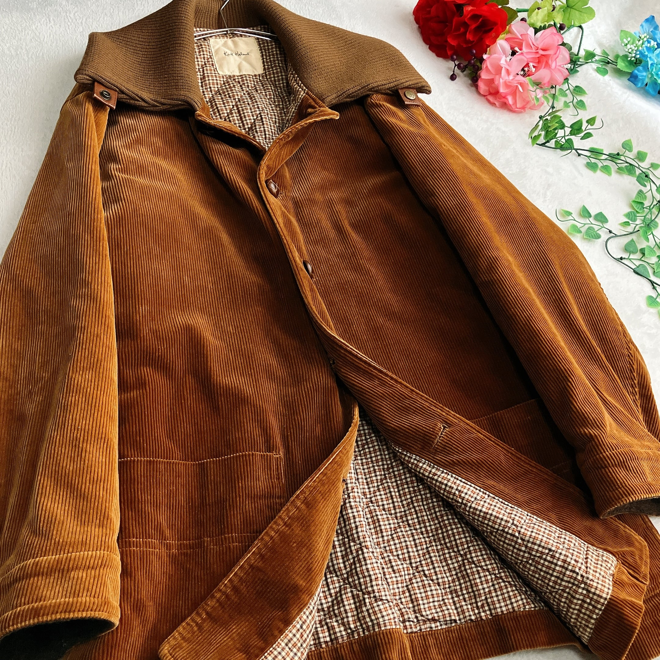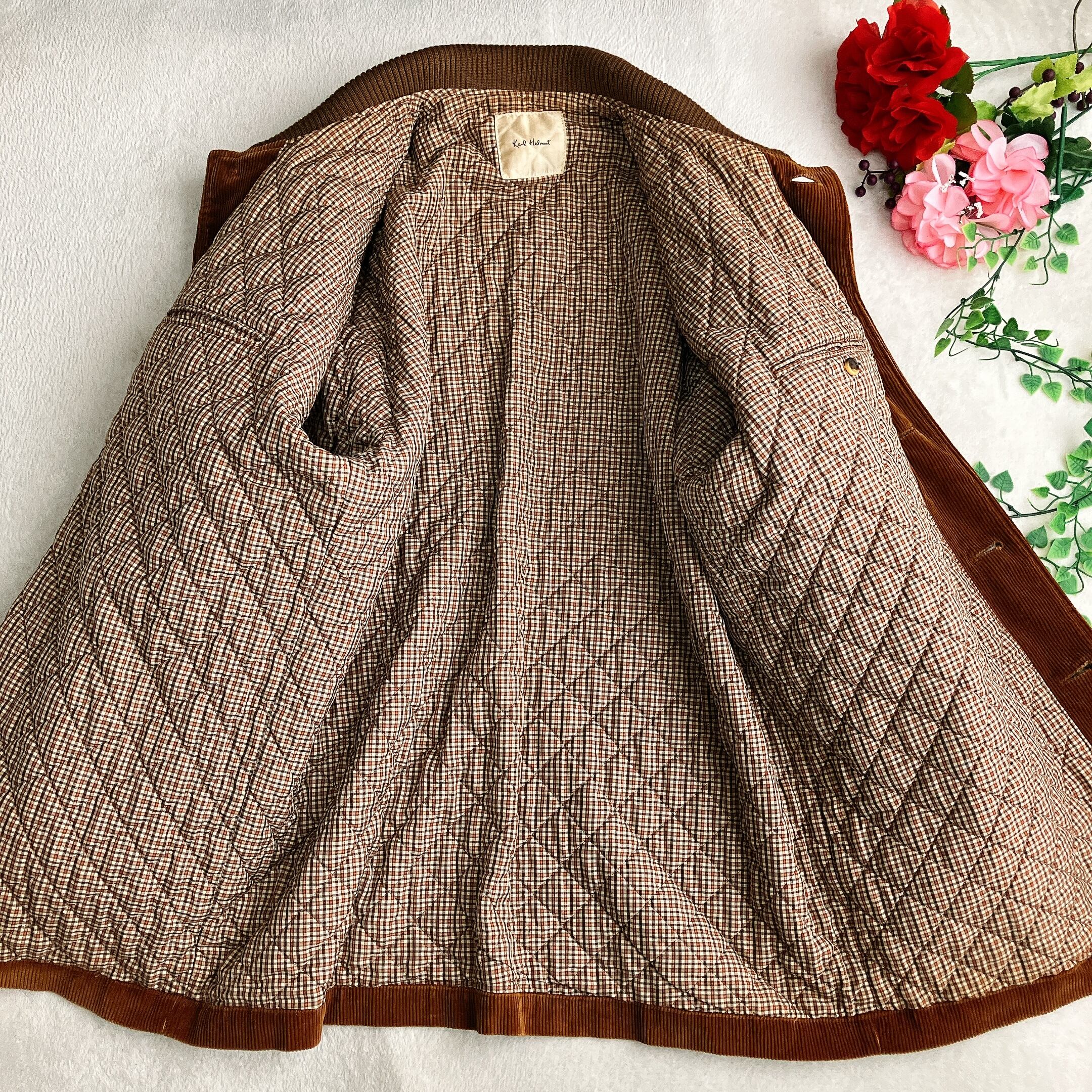【美品】Karl Helmut カールヘルム★中綿 コーデュロイコート ビッグカラー ウール切替え ロゴ刺繍 胡桃ボタン ビッグシルエット ブラウン
