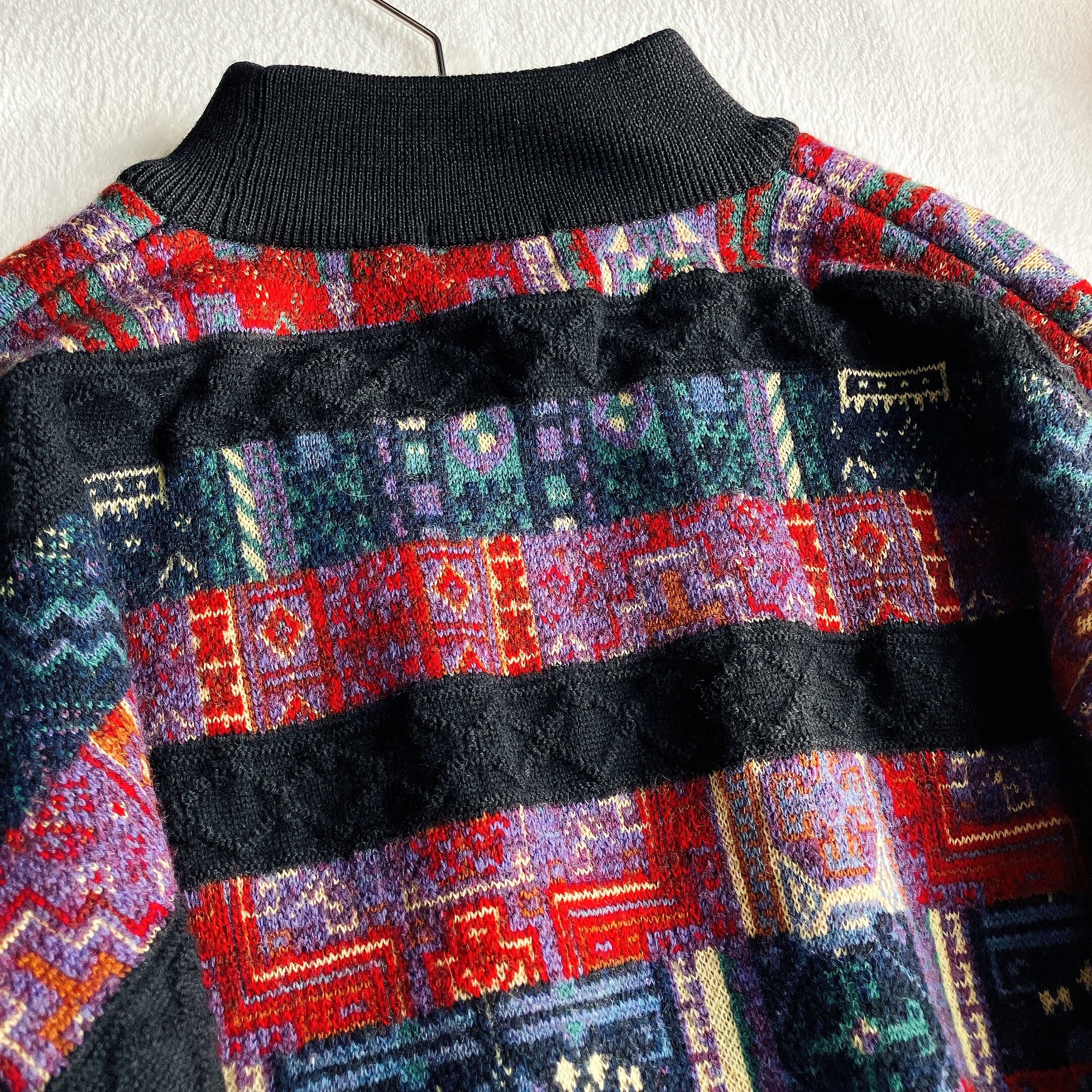 ケンゾー KENZO★ライカ期 ビッグシルエット 3Dニット 幾何学 総柄 ボーダー ウール マルチカラー