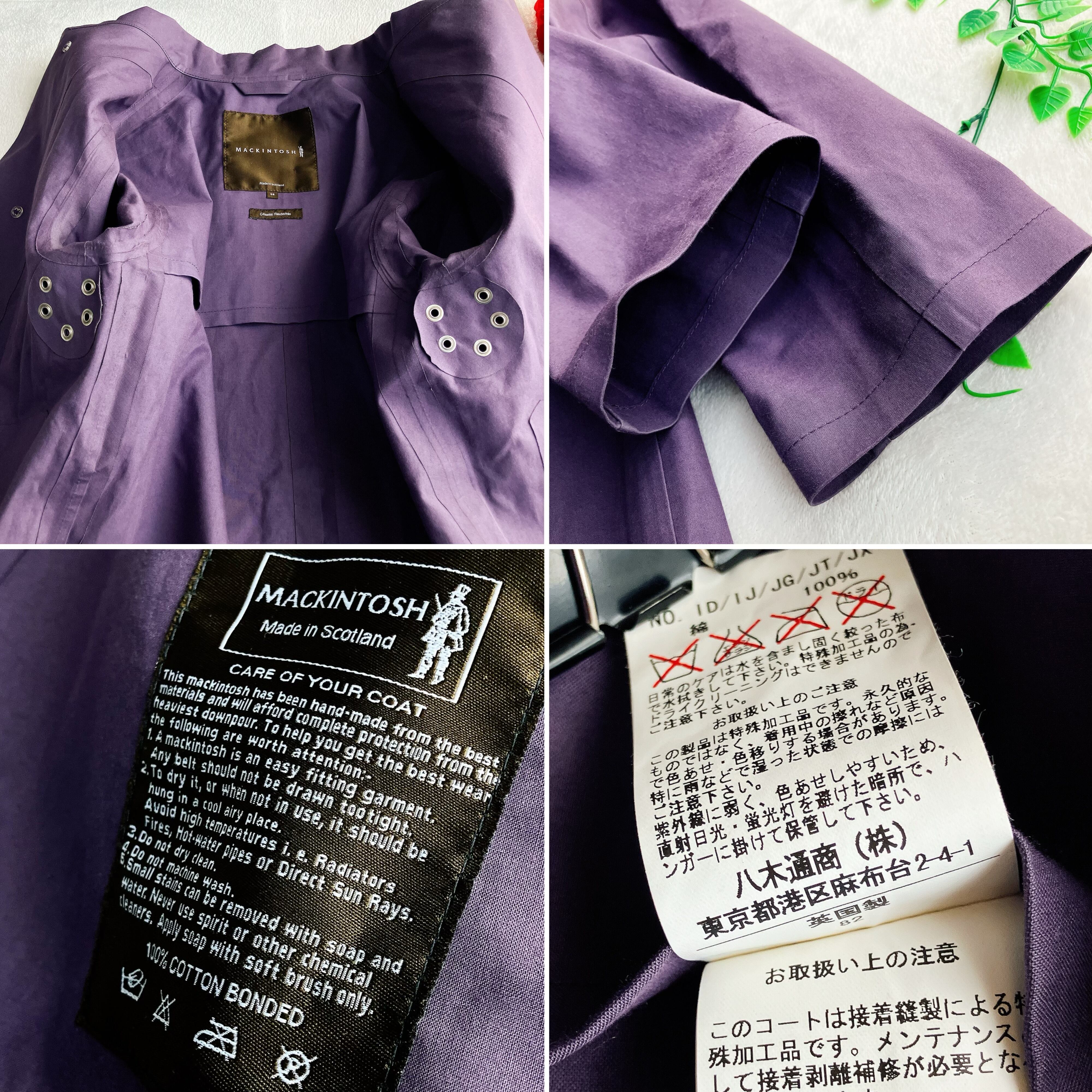 【美品】【ハンドメイド】MACKINTOSH マッキントッシュ★ゴム引き ステンカラーコート ロング丈 スコットランド製 パープル系