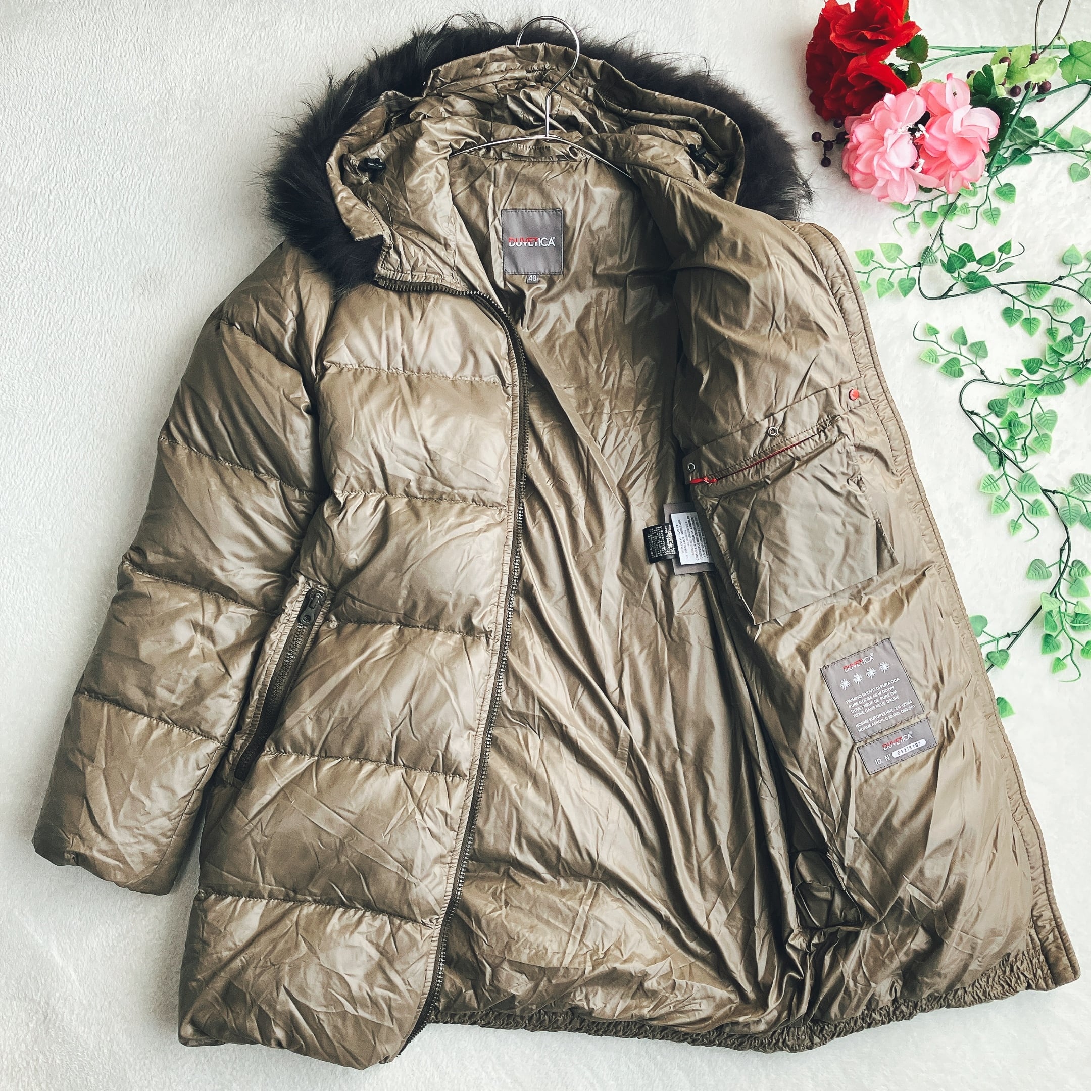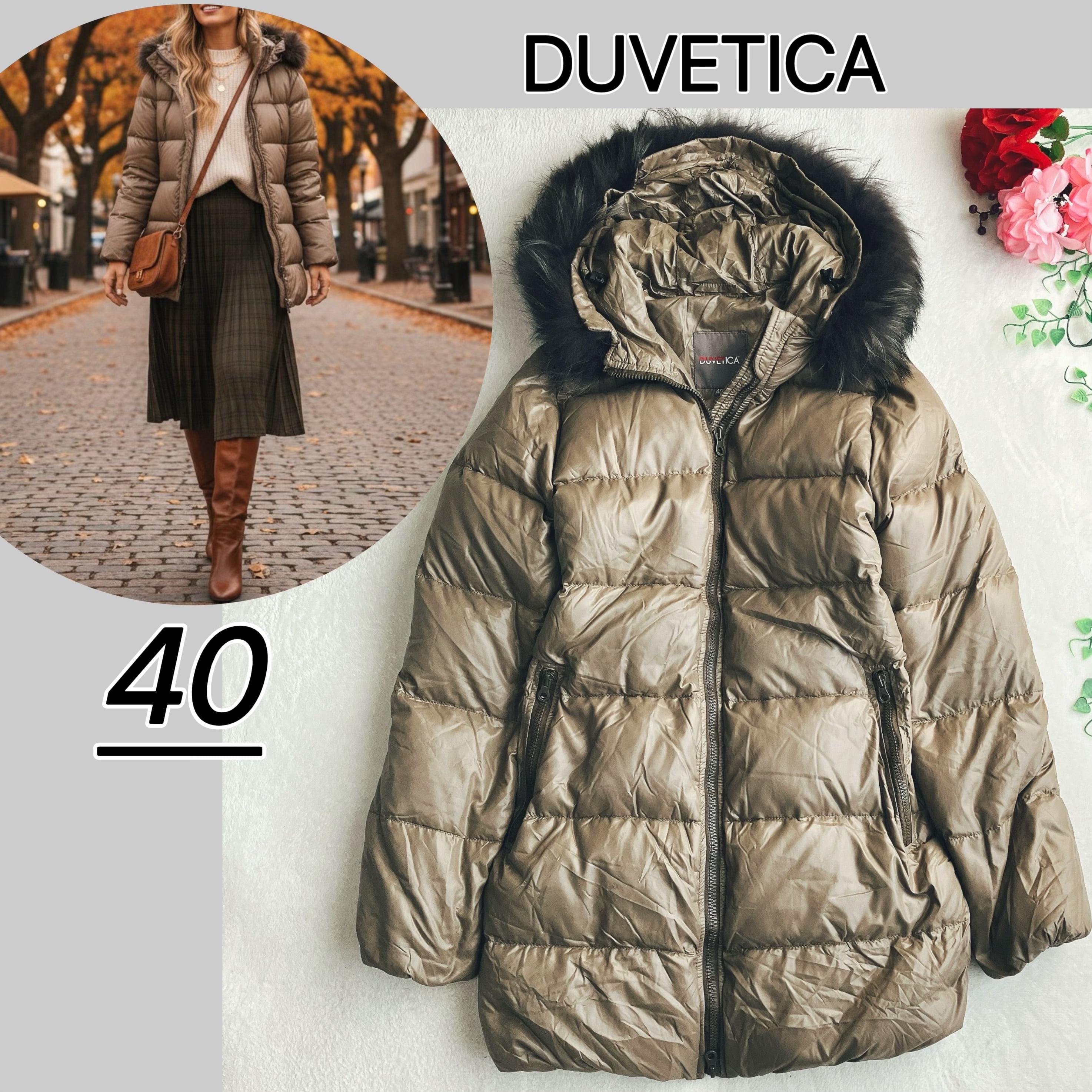 DUVETICA デュベティカ★2WAY ダウンコート Kappa フィンラクーンファー フード付き タン系