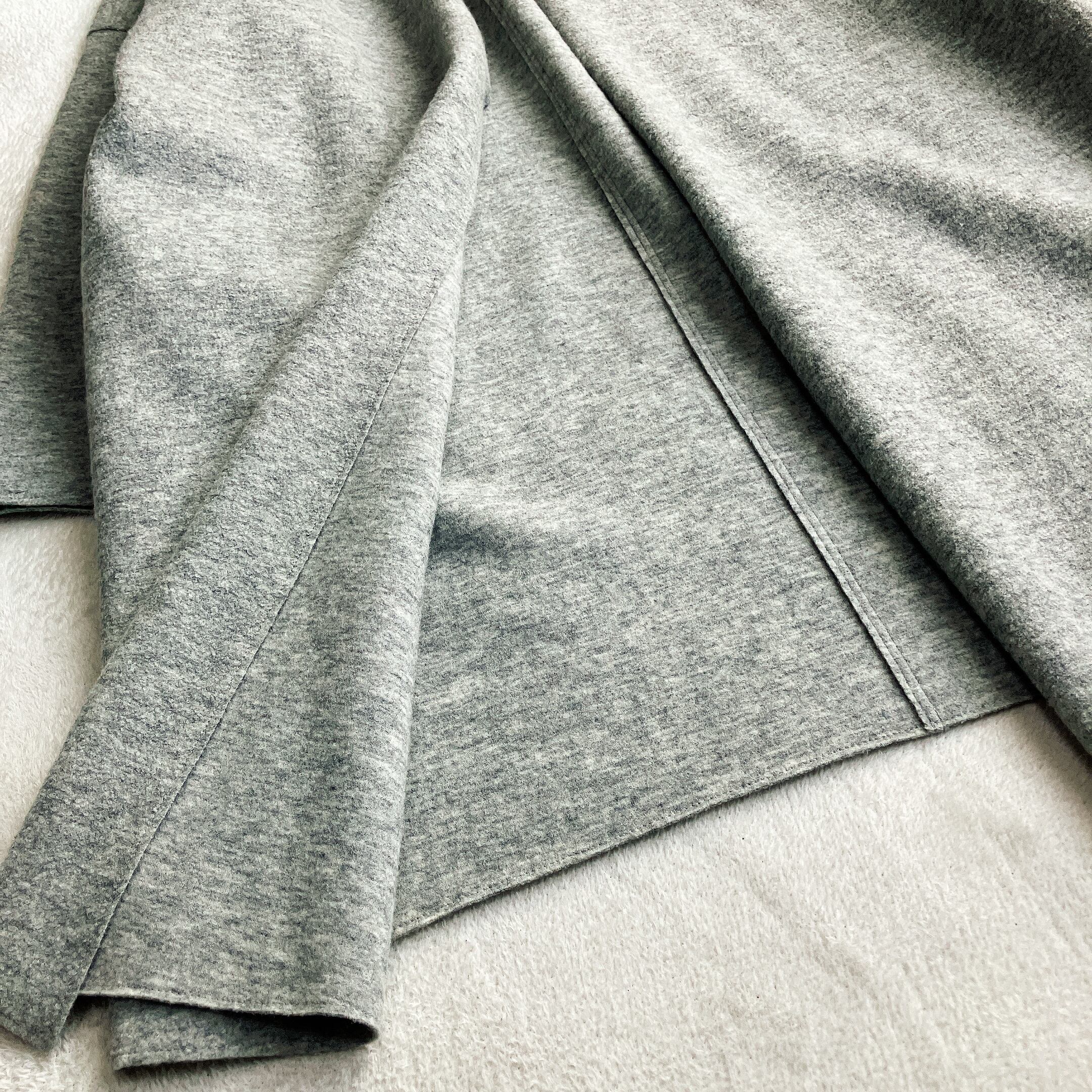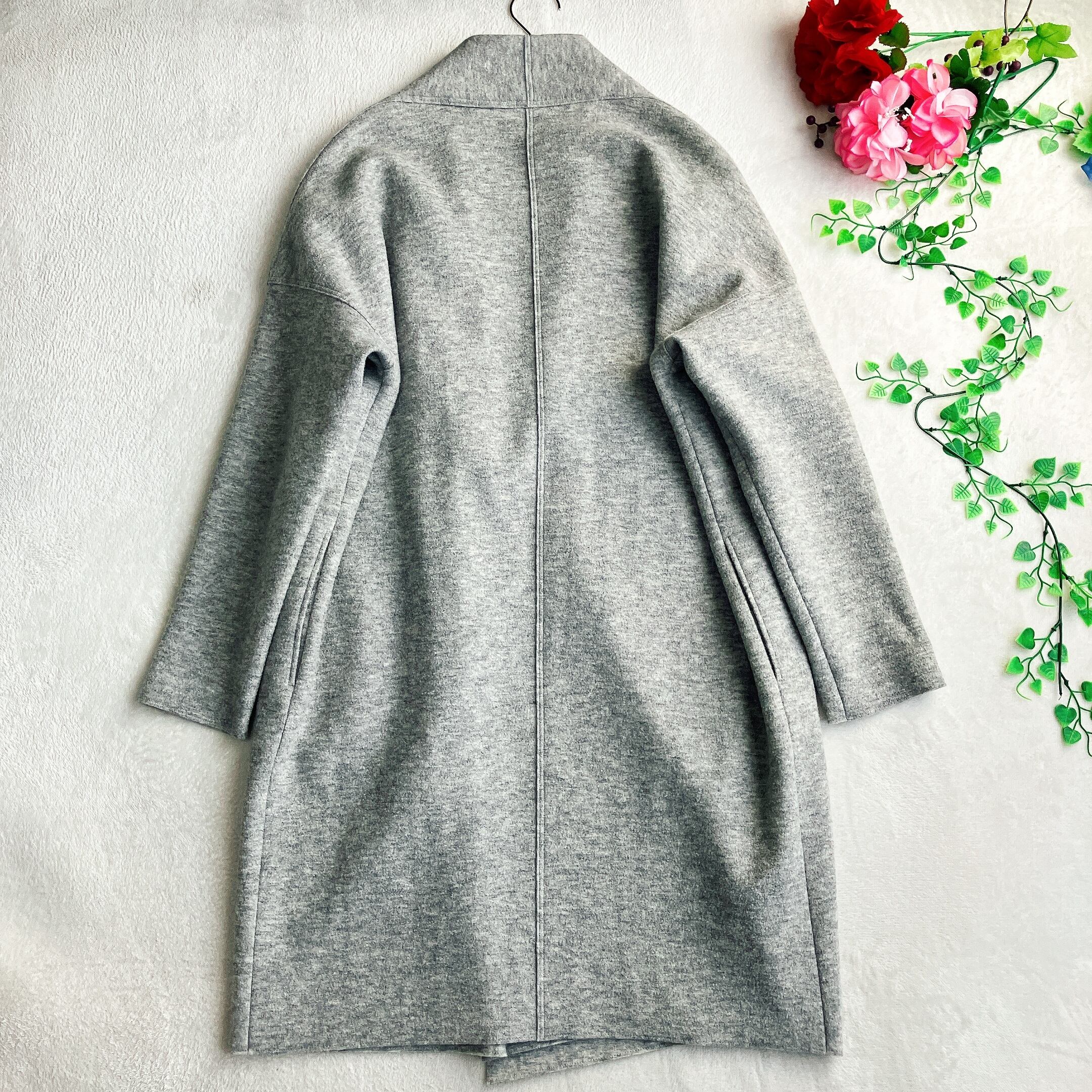 【美品】【体型カバー】23区★ウールリバーコート 薄手 ノーカラー ドロップショルダー ボタンレス オーバーサイズ グレー系