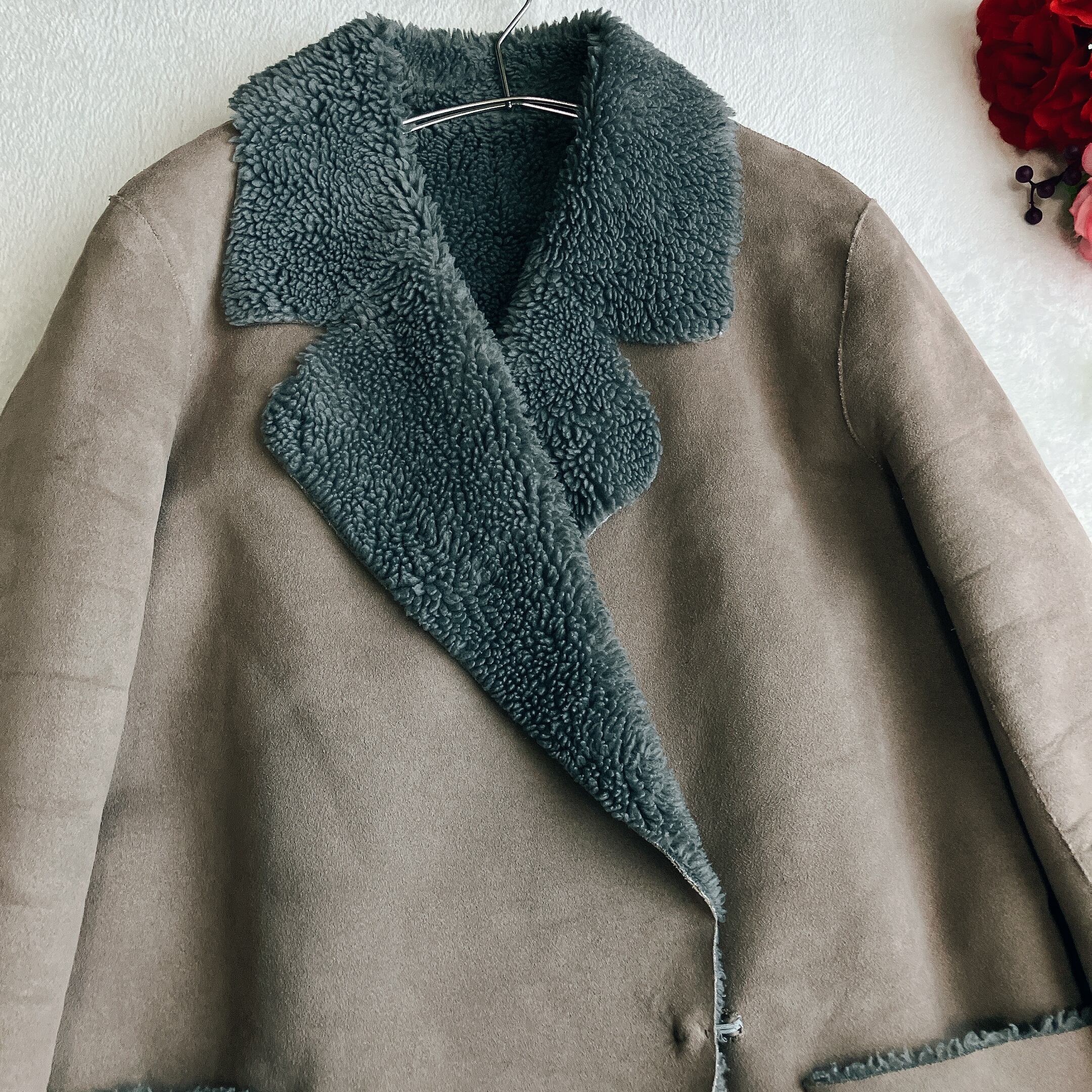 ふんわりとした フェイクムートン と、全体に施された 裏ボア がとても暖かく、軽い着心地。