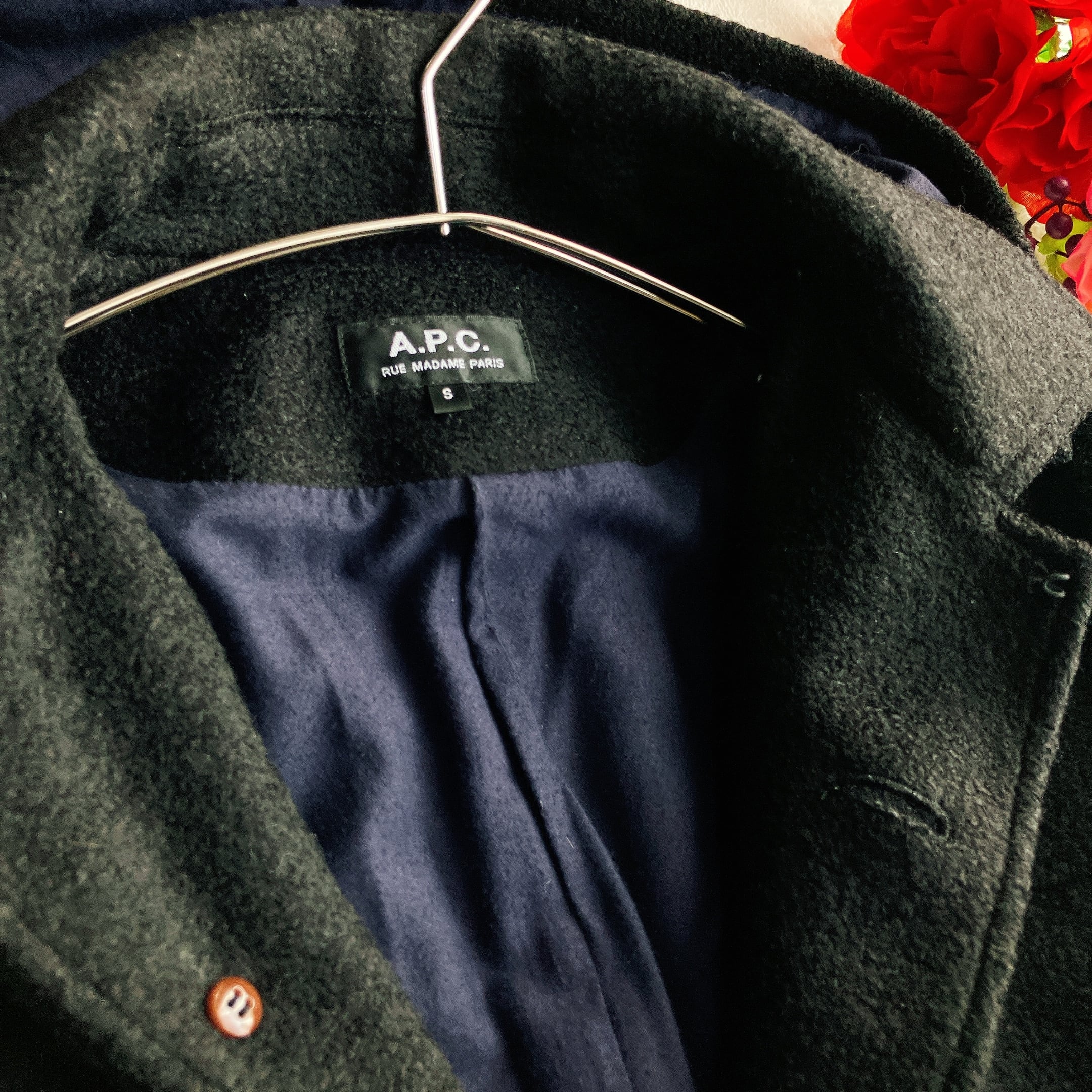 滑らかで肌ざわりの良いイタリア製メルトン生地が特徴。A.P.C.らしいミニマルデザインで、きれいめにもカジュアルにも合わせやすい“高品質アウター”を探している方に人気のアイテムです。