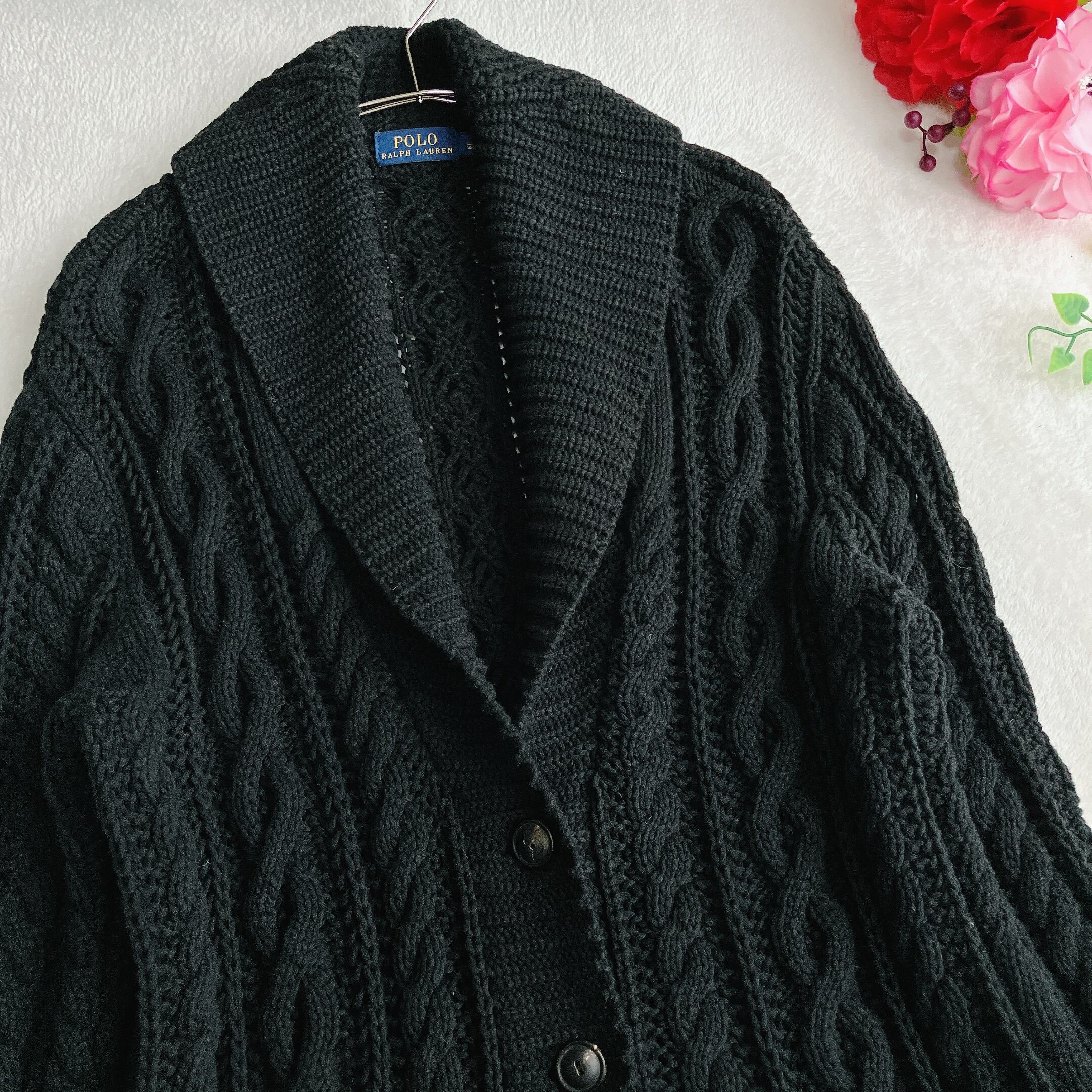 【美品】【手洗い可】POLO RALPH LAUREN ポロラルフローレン★ショールカラー ケーブルニット ローゲージ カーディガン 現行タグ ブラック
