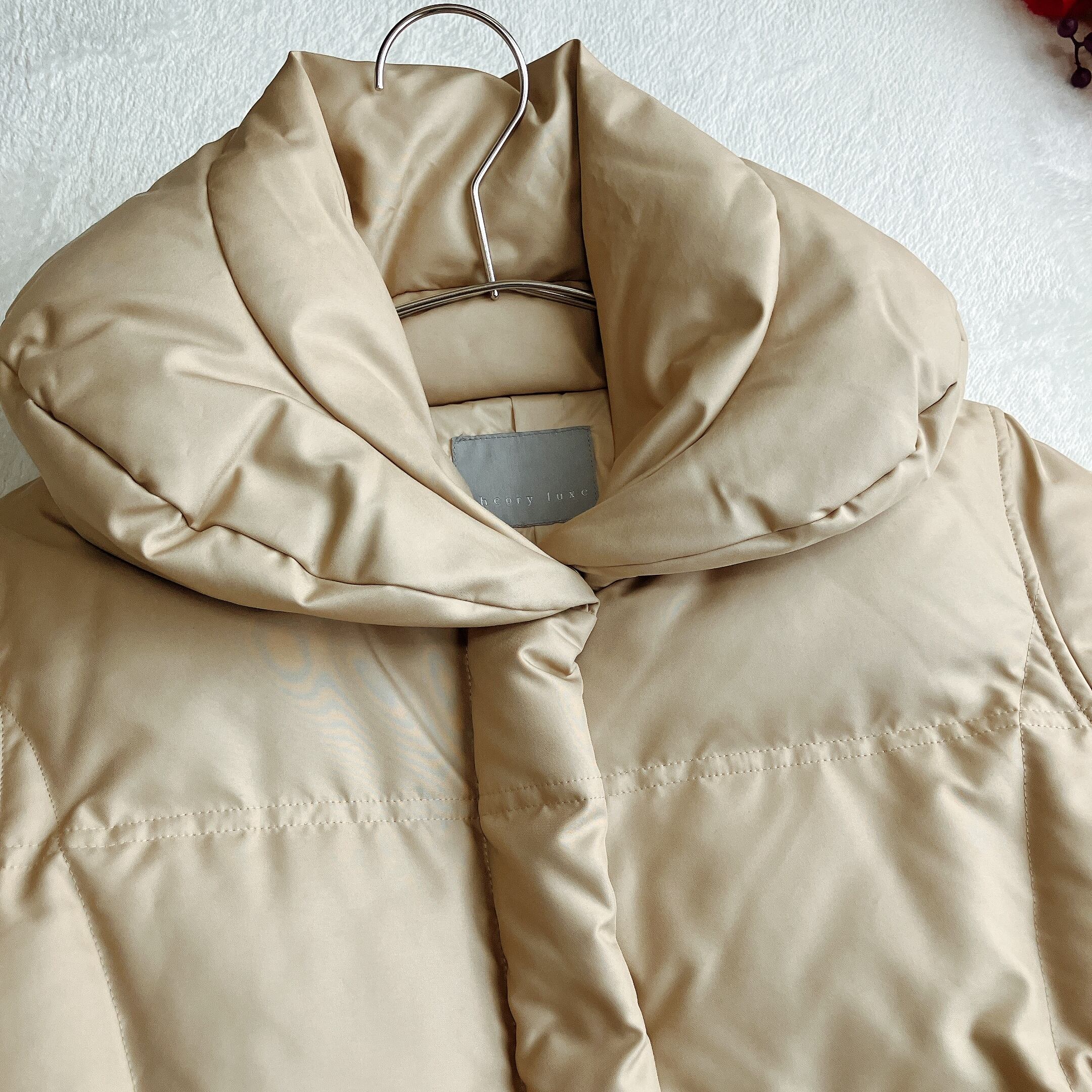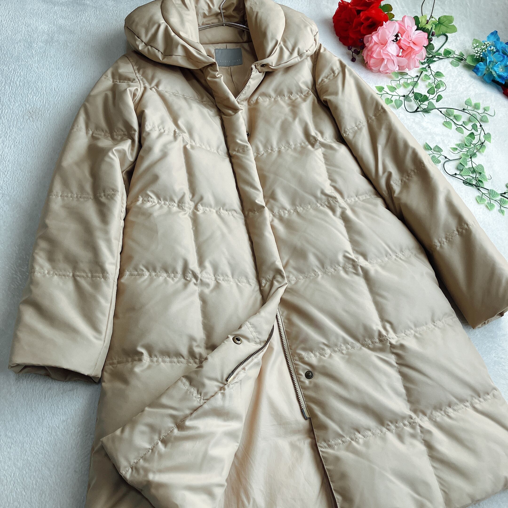 Theory luxe セオリーリュクス★ショールカラー ダウンコート RUSH Aライン 比翼ボタン 小顔効果 体型カバー ベージュ系