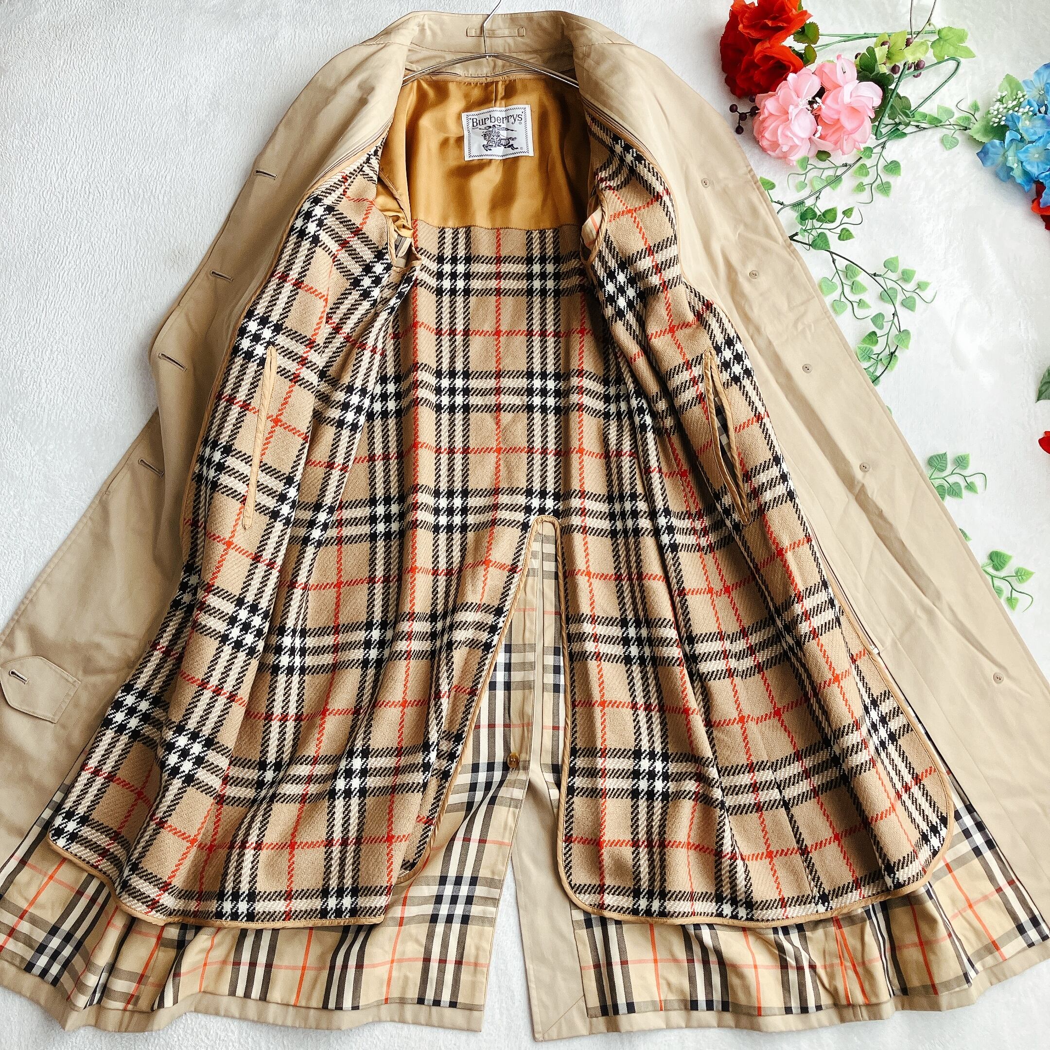 【美品】BURBERRY バーバリー★ウールライナー付き ステンカラーコート ノバチェック 比翼ボタン Aライン ロングコート ベージュ系