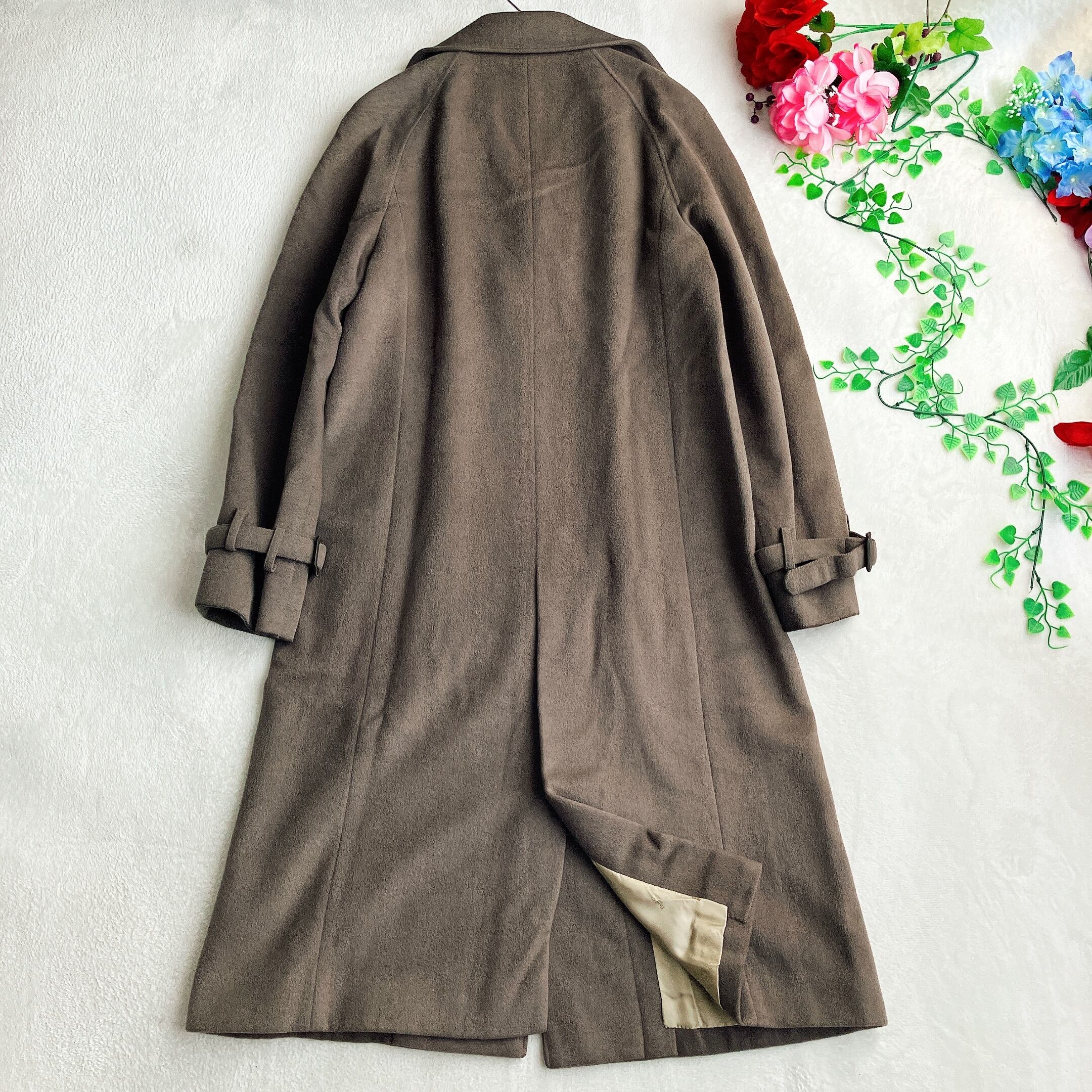 ① 上質アンゴラ混素材|軽くて暖かい大人のロングコート