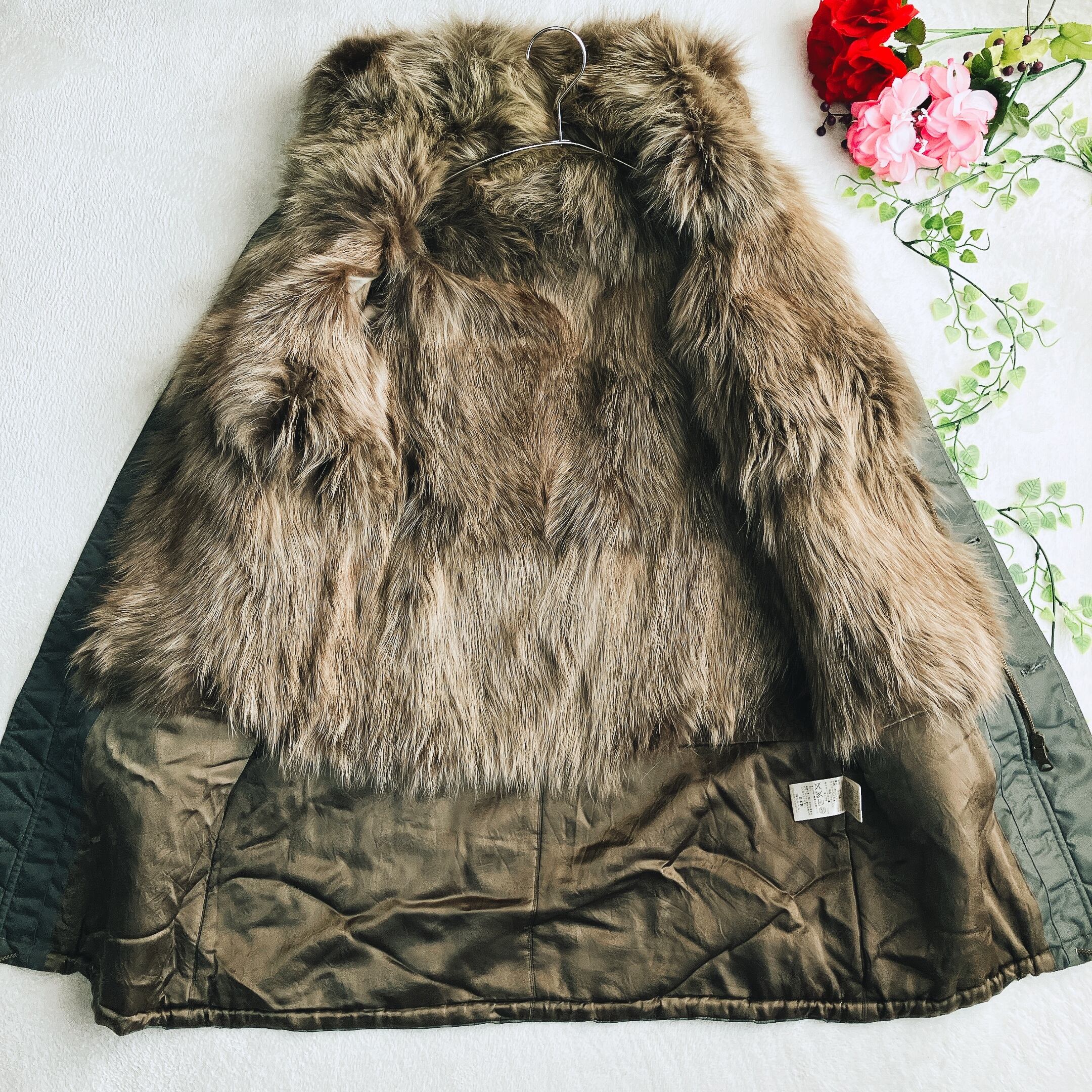 Deuxieme Classe ドゥーズィエムクラス★フォックスファーライナー付き 中綿 モッズコート 比翼ボタン フード付き カーキ系