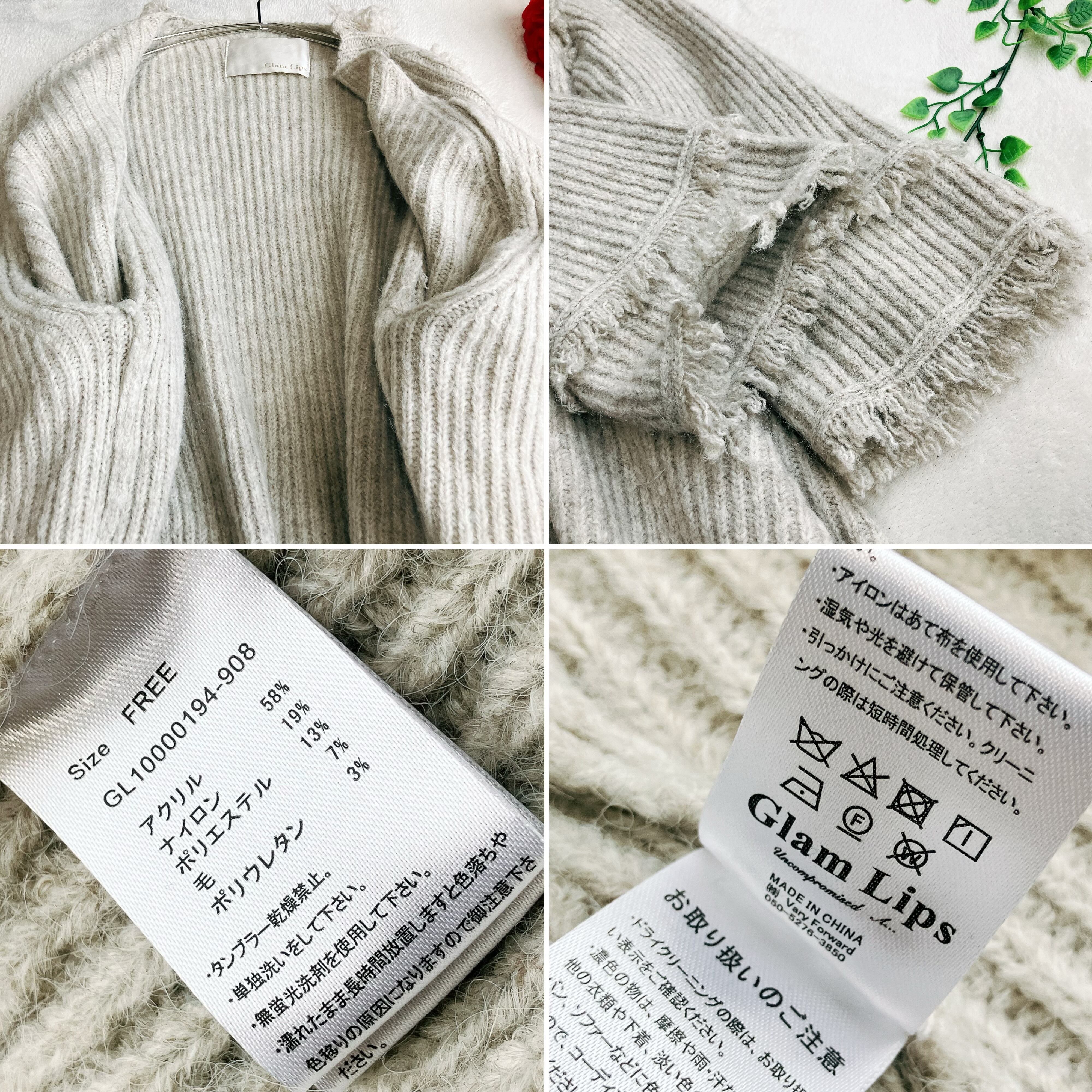 【極美品】Glam Lips グラムリップス★フリンジ ロングカーディガン ガウンコート ニットアウター ベルト付き オートミールシュガー