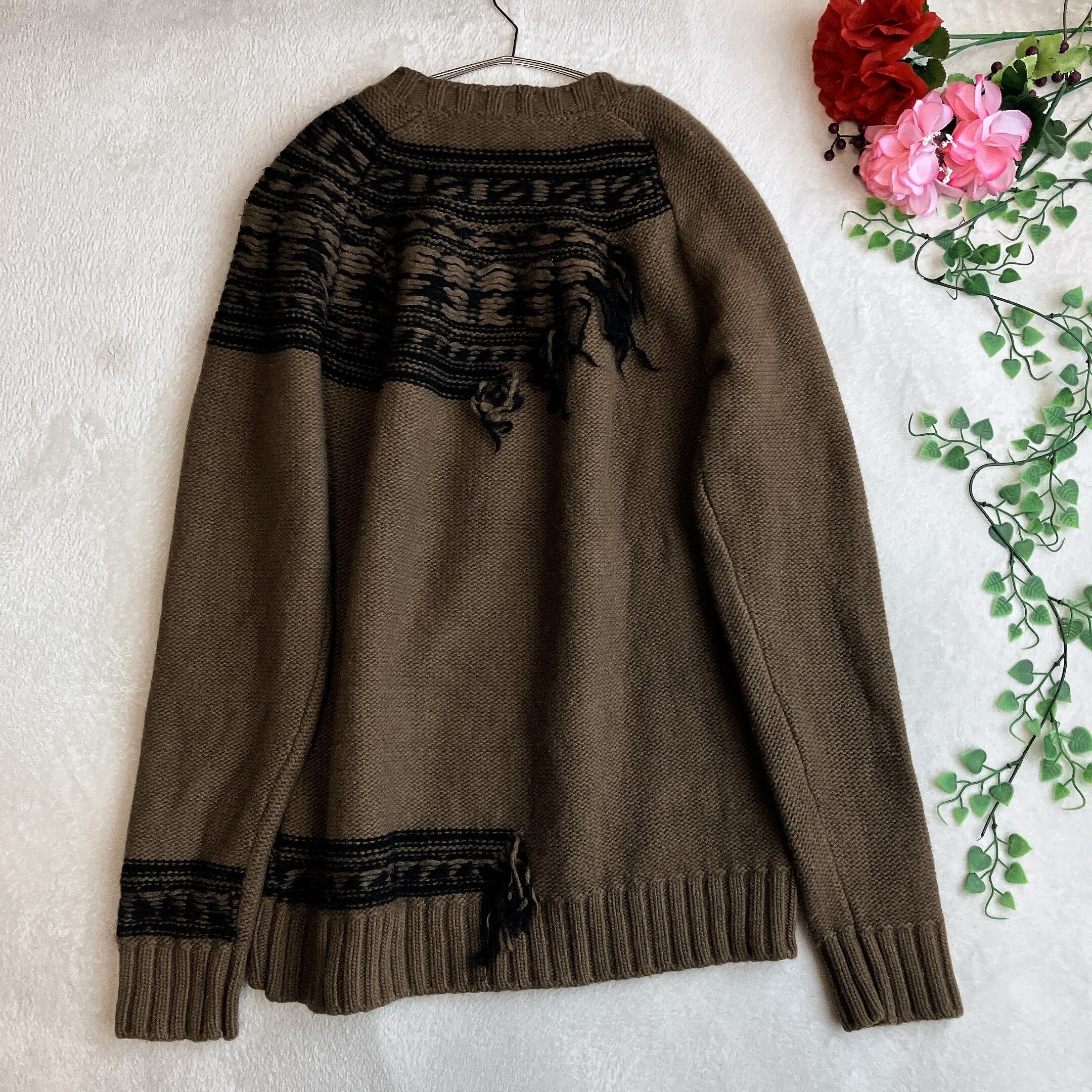 【大きいサイズ】【イタリア製】【美品】ヌメロヴェントゥーノ N°21★モヘア ウール フリンジ ノルディック柄 ニット セーター ブラウン系