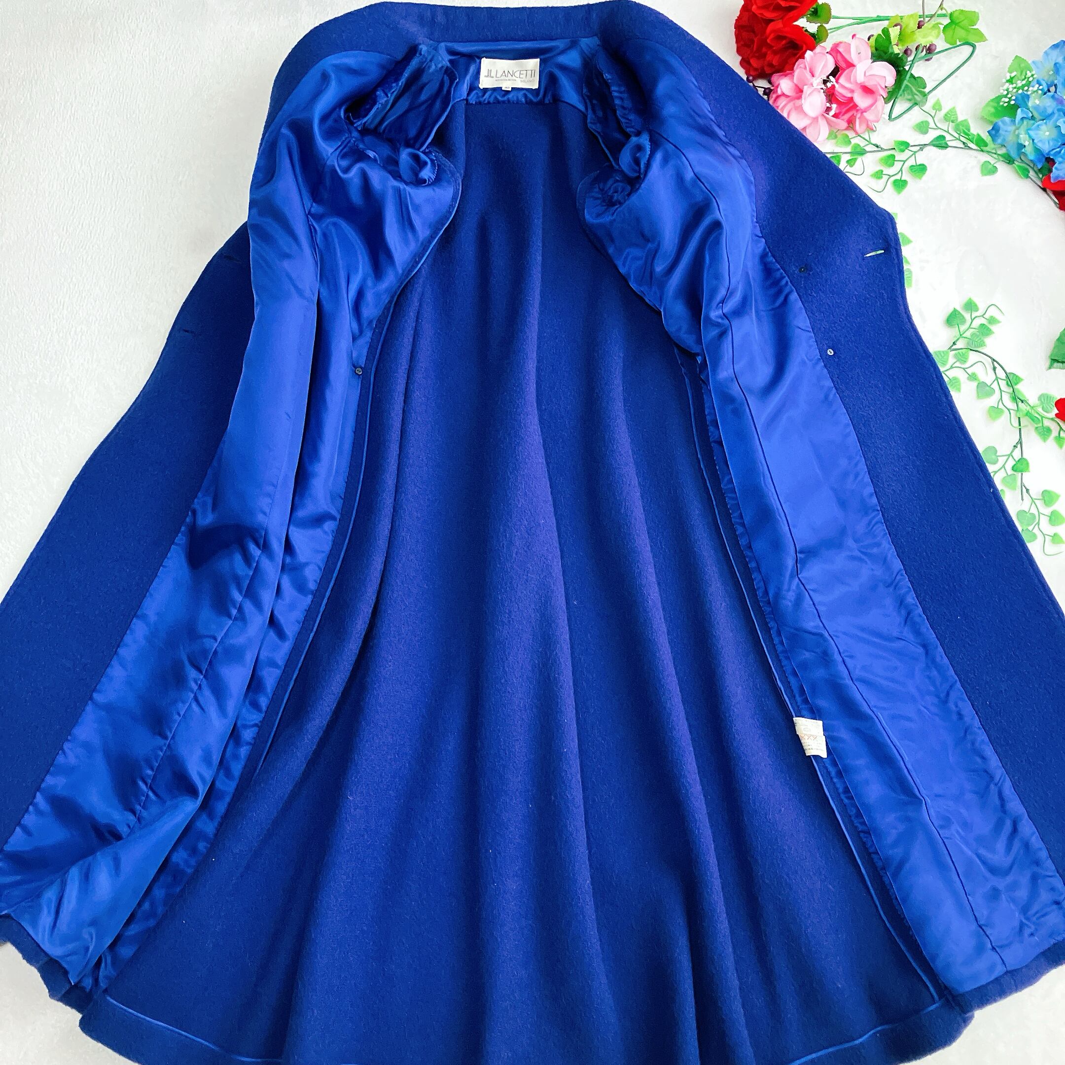 【高級ヨーロッパ製生地】【大きいサイズ】【美品】LANCETTI ランチェッティ★ダブル チェスターコート ロング Aライン ウール ブルー