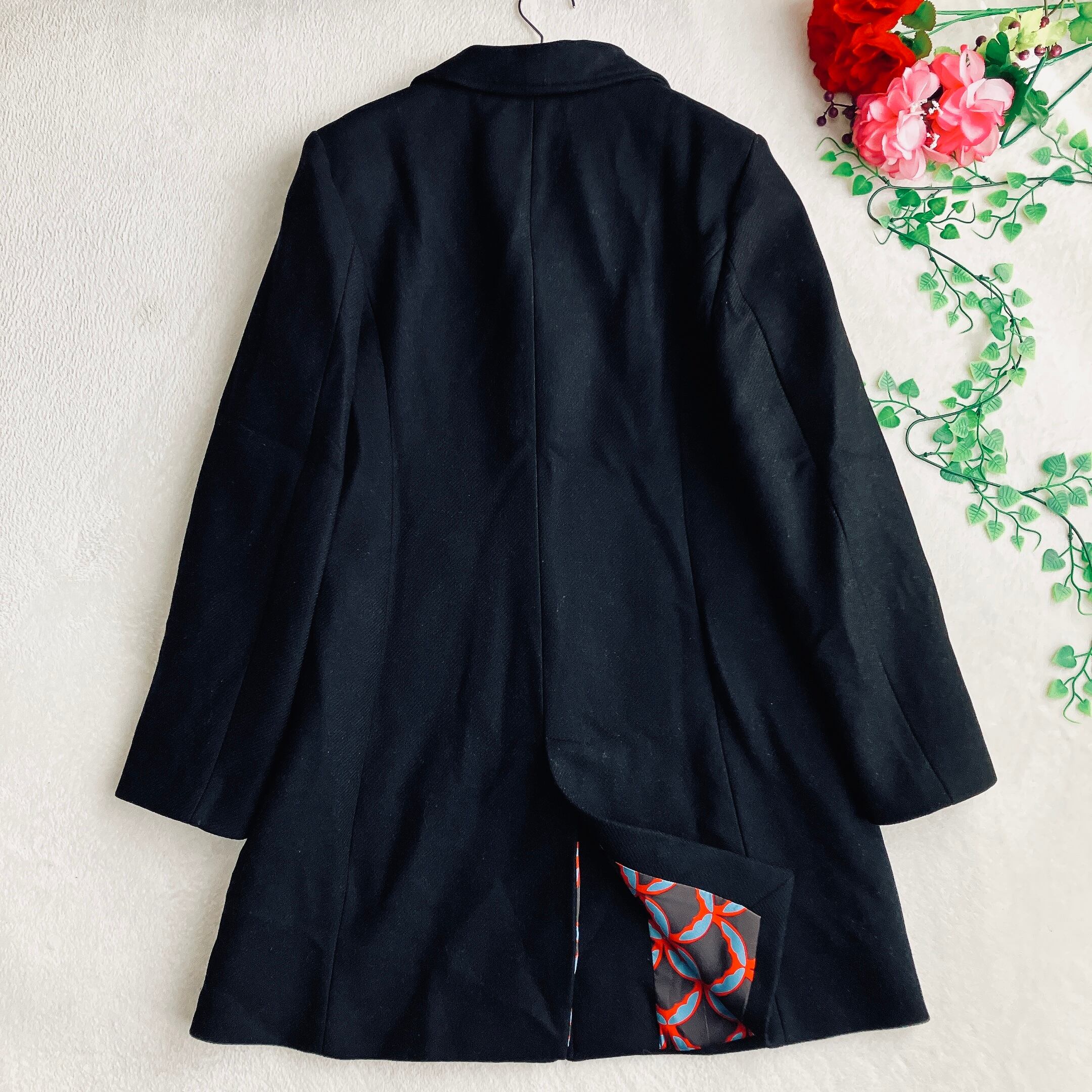 【イタリア製高級生地】ザラ ZARA/マンテコ MANTECO★金ボタン チェスターコート 総柄 Aライン ブラック系