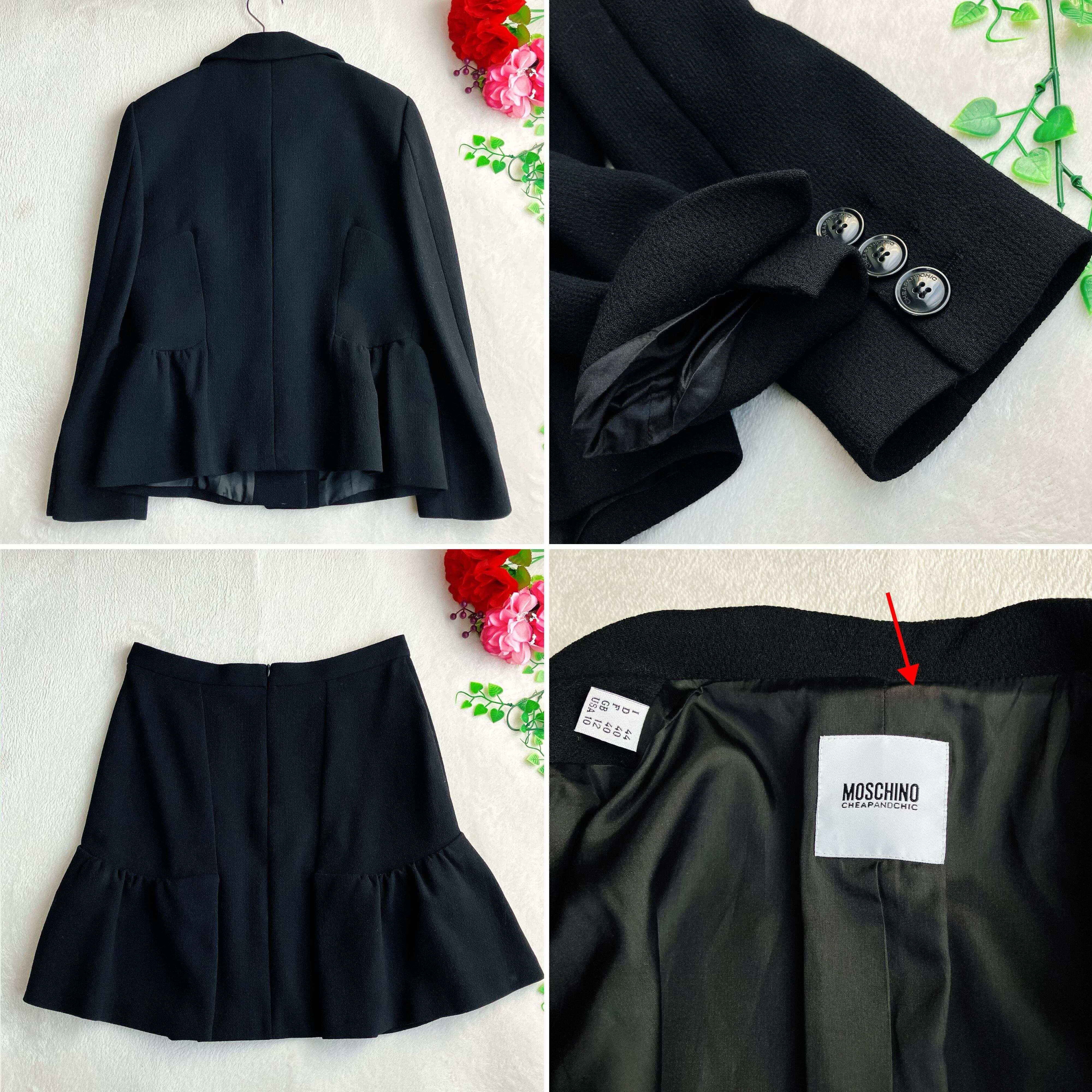 【美品】MOSCHINO モスキーノ★スカートスーツ ウール ギャザー フリル フォーマル セレモニー フレア ブラック