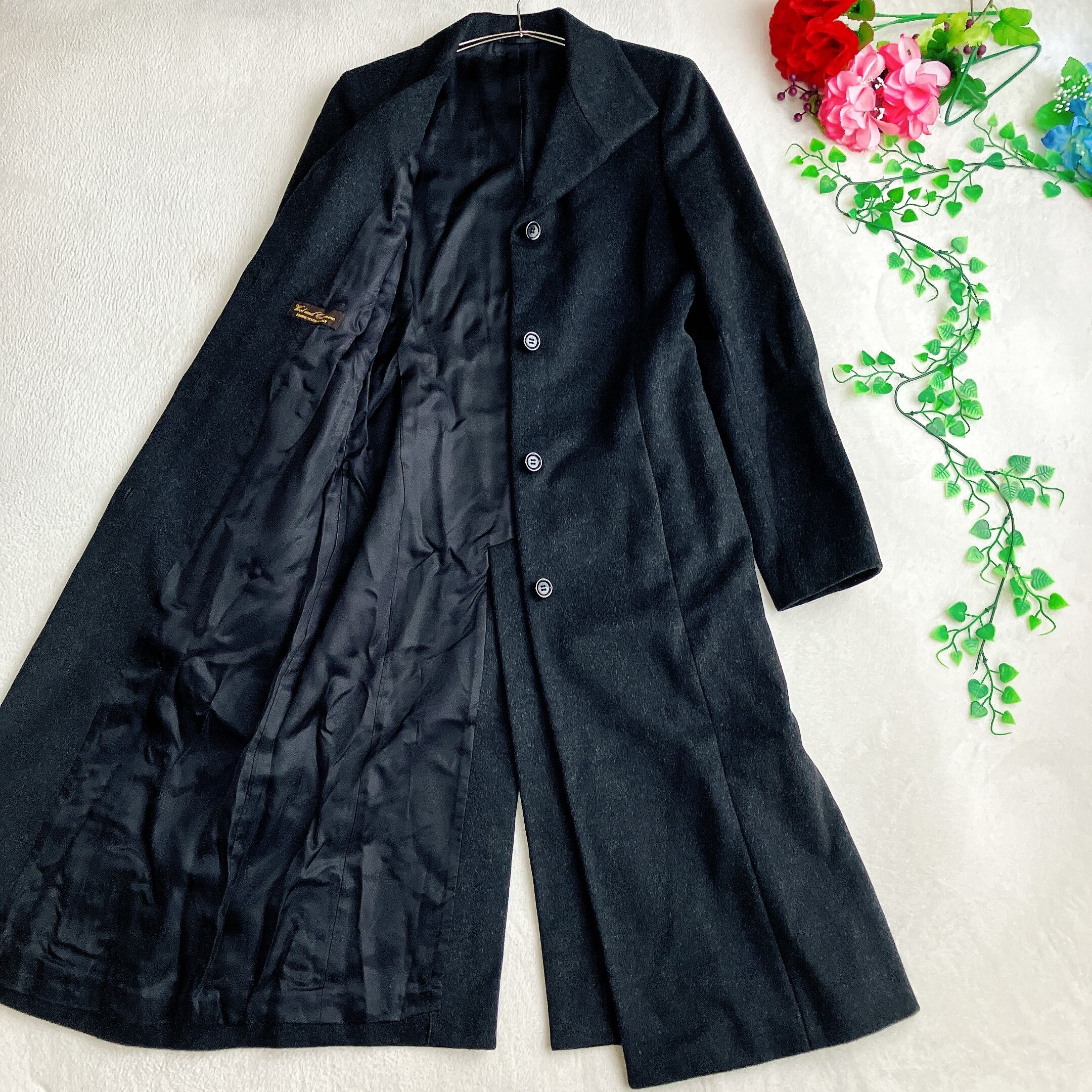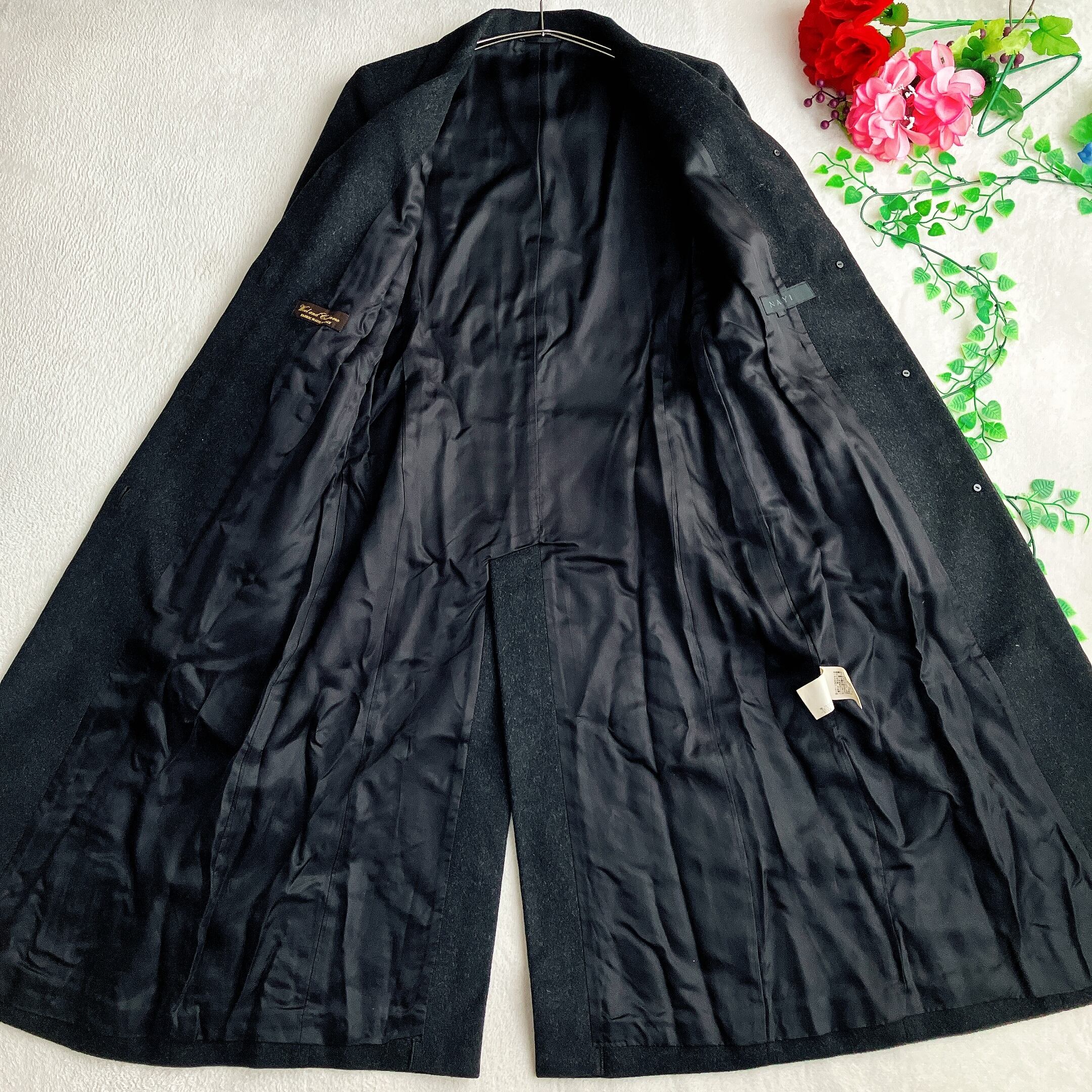 【美品】アナイ ANAYI★イタリア生地 カシミヤ ウール ビッグカラー ステンカラーコート 比翼ボタン Aライン ダークグレー系