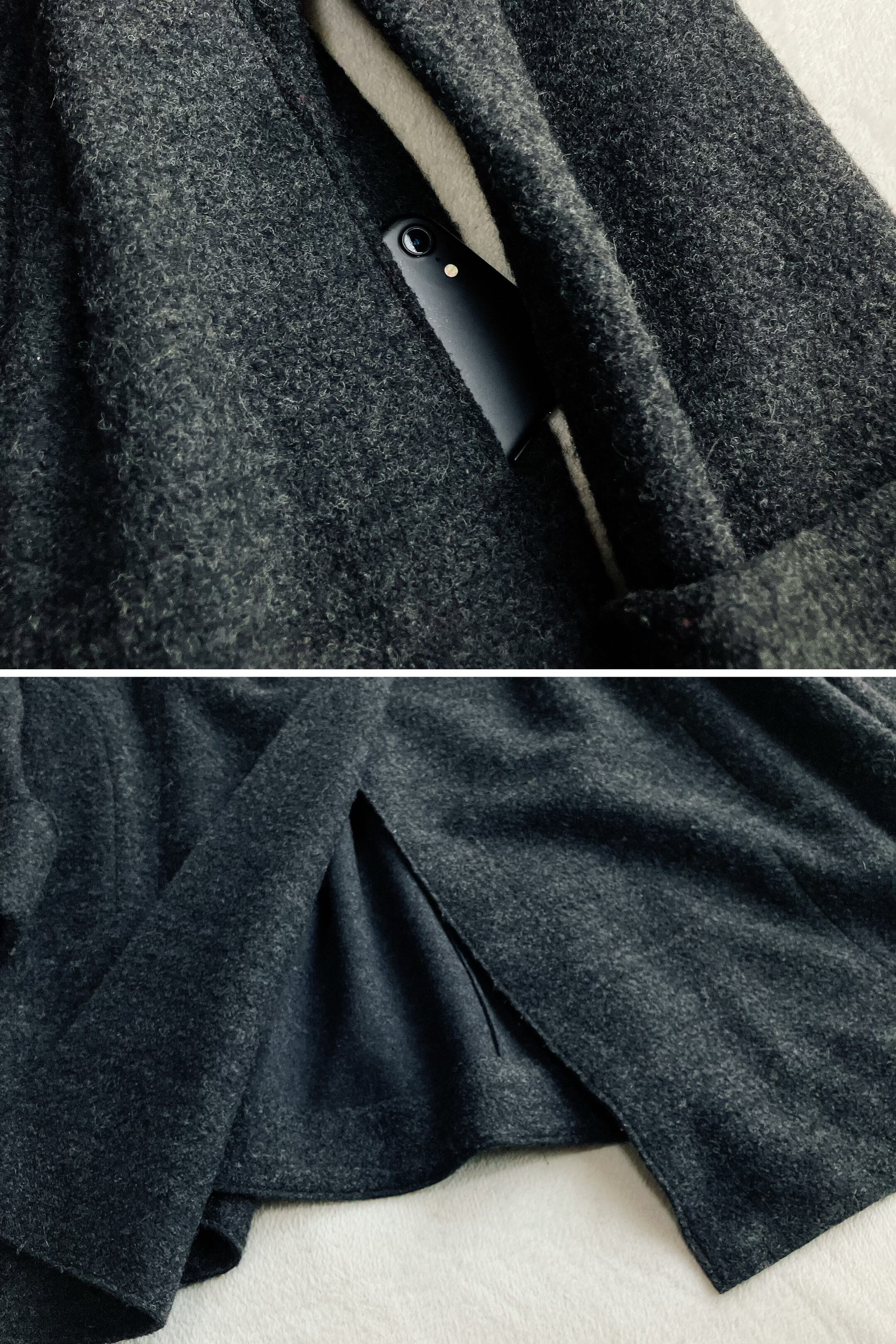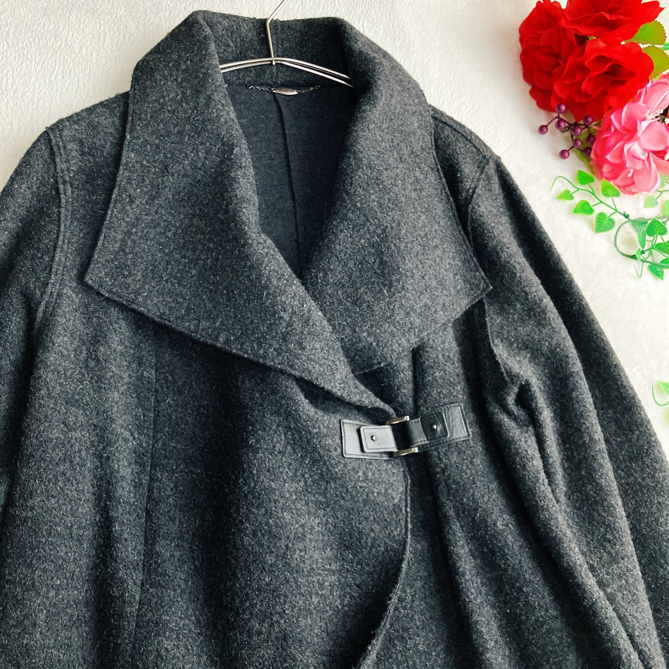 自由区★ダブルフェイス アシンメトリー ビッグカラーコート ウール Aライン ビッグシルエット ダークグレー系