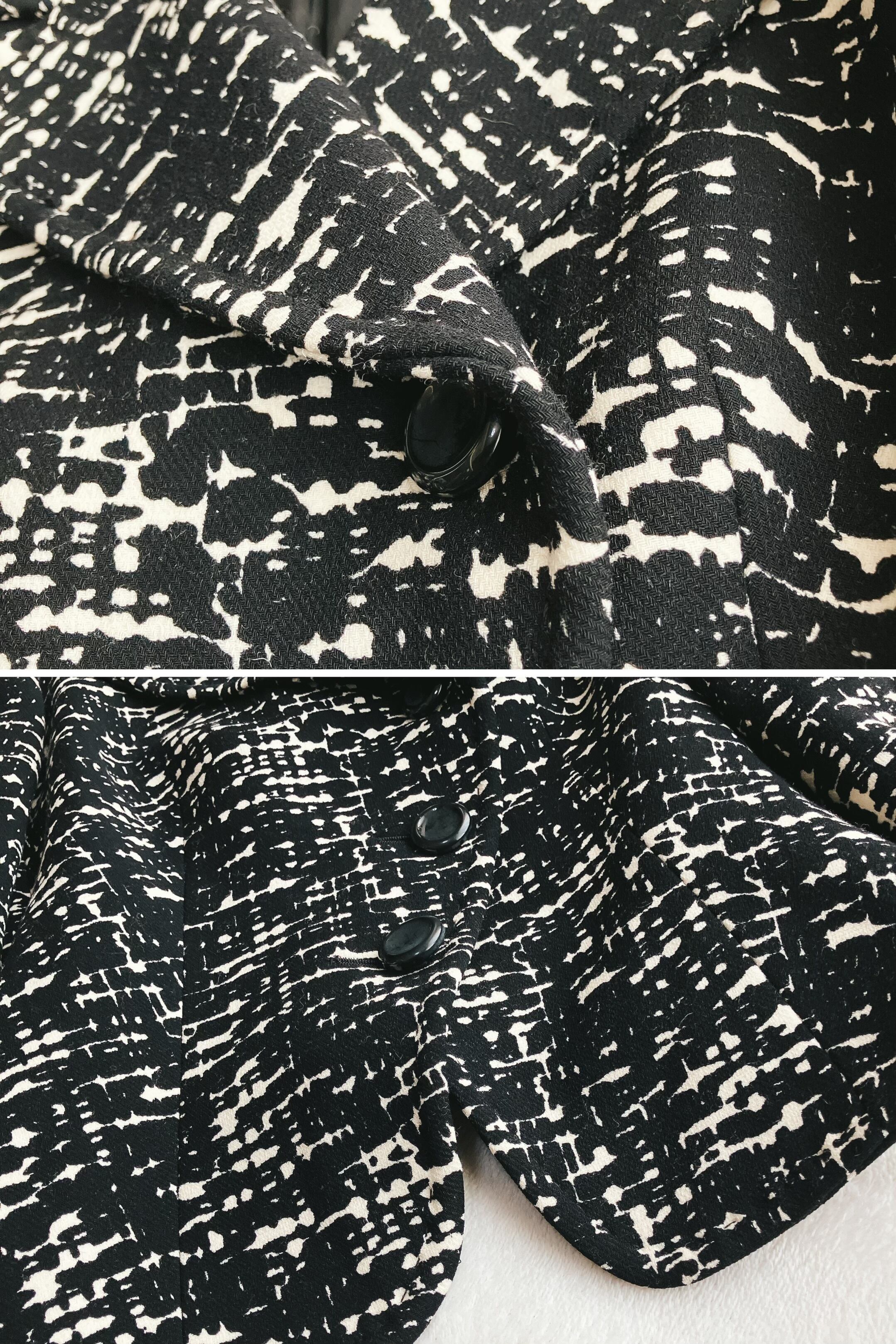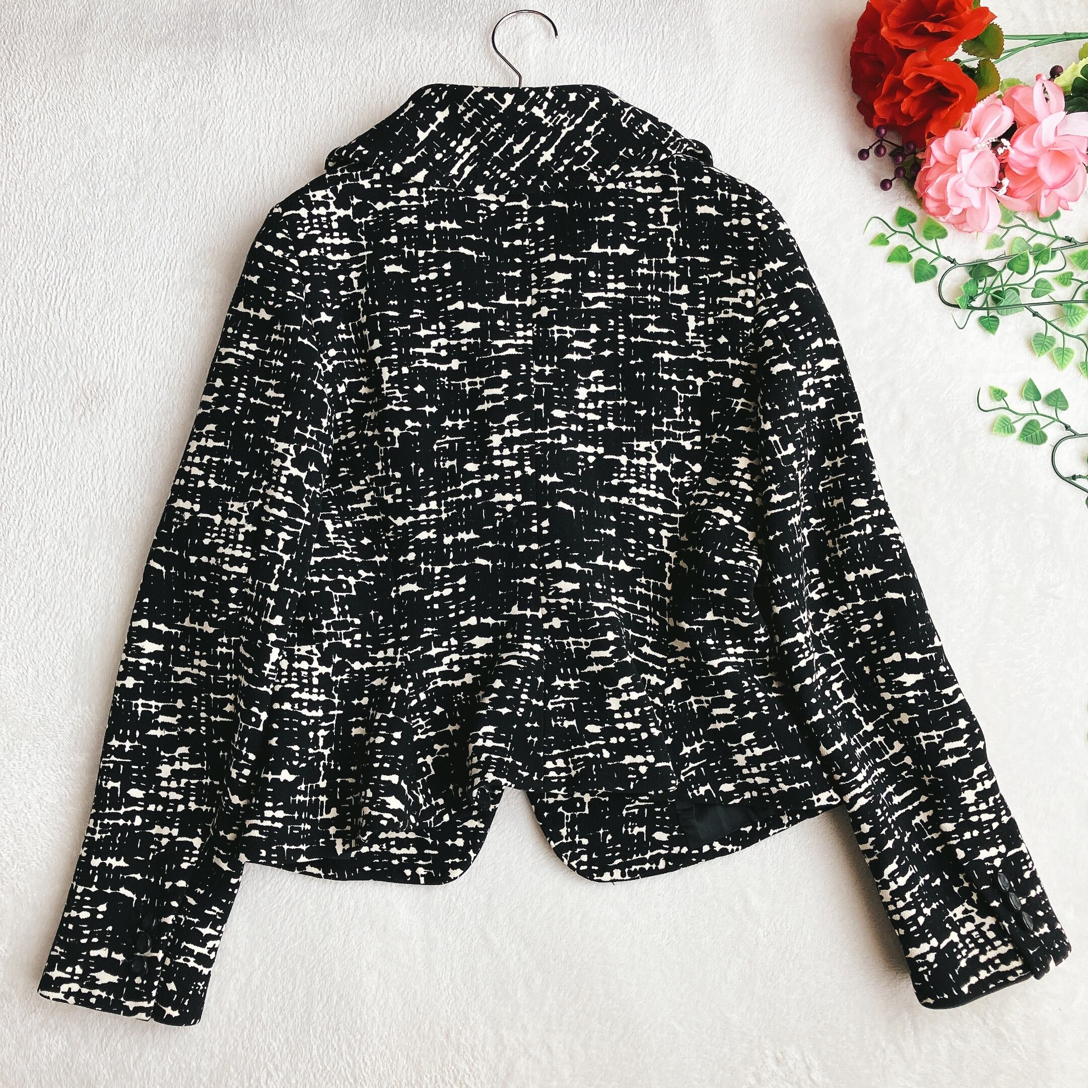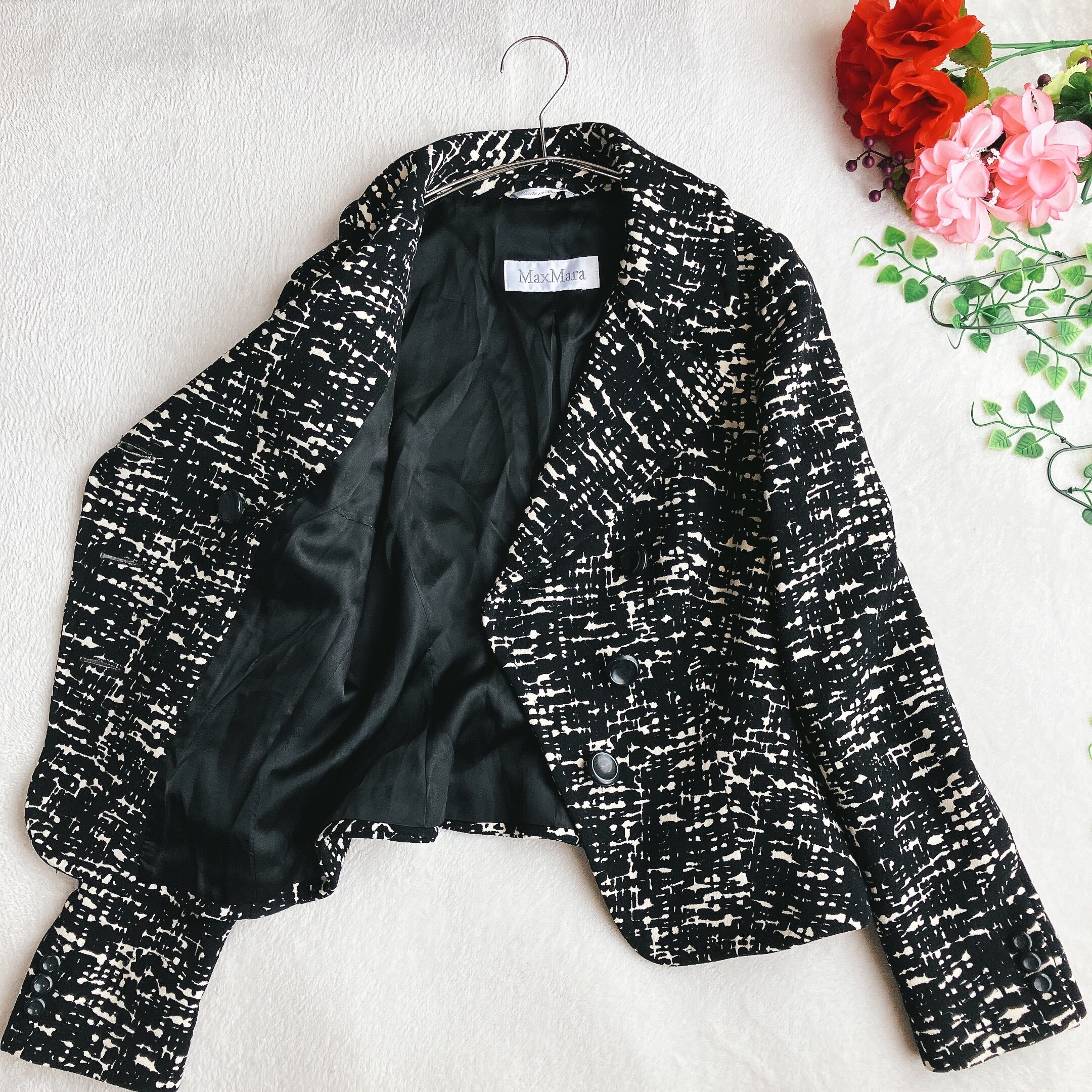 Max Mara マックスマーラ★白タグ ストレッチ テーラードジャケット 総柄 アシンメトリー ウール ビッグカラー ブラック×ホワイト