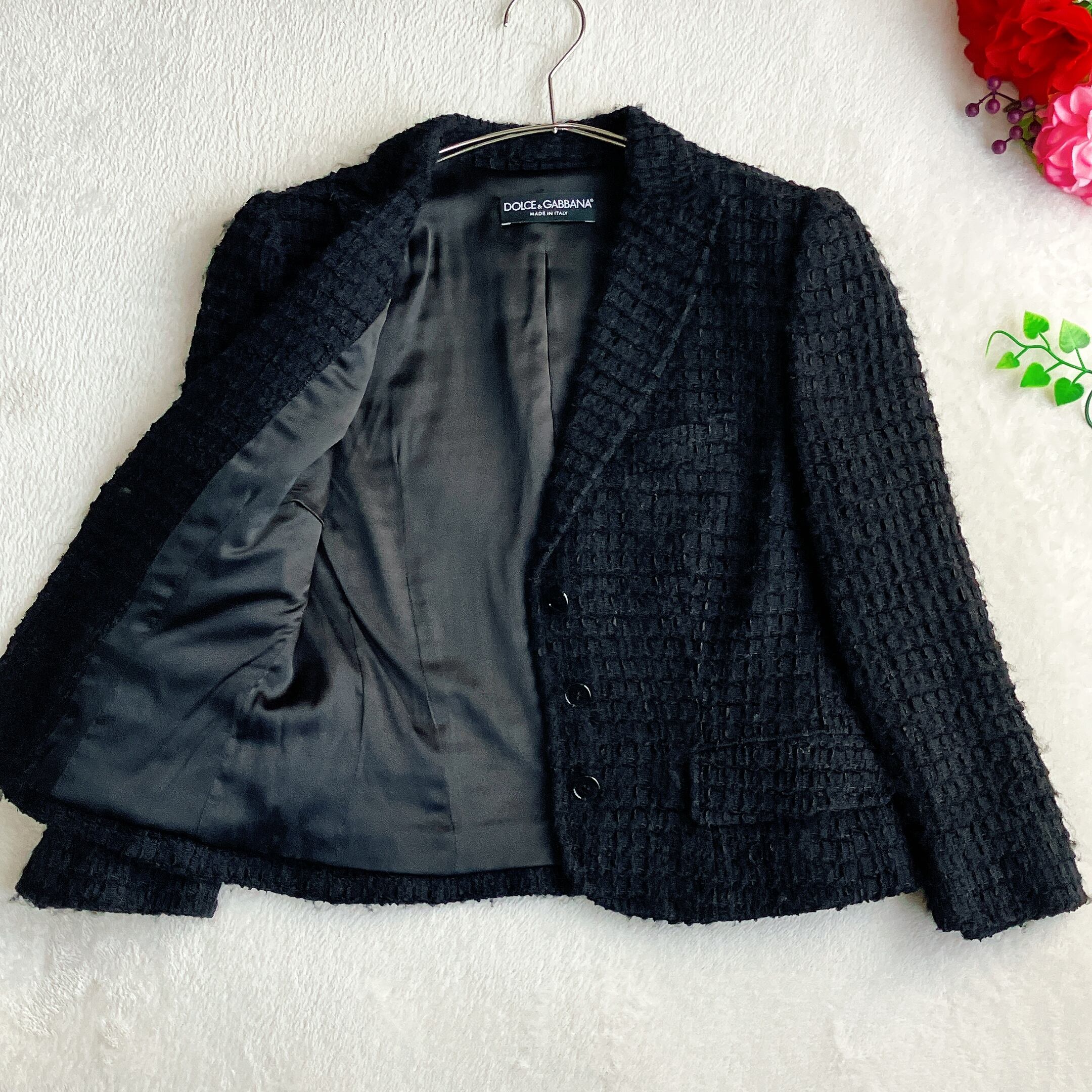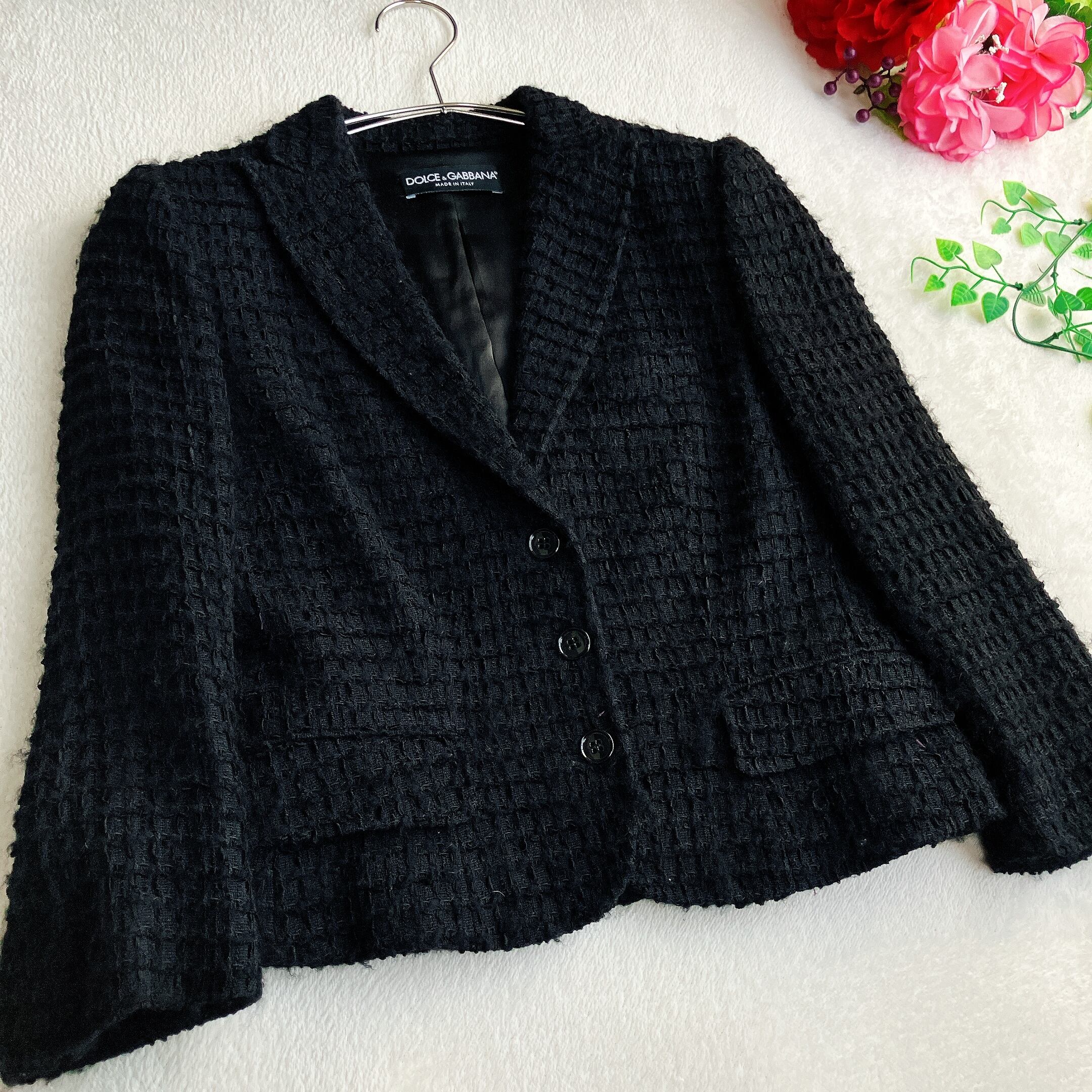 【美品】【イタリア製】DOLCE&GABBANA ドルチェアンドガッバーナ★ファンシーツイード テーラードジャケット シルク裏地 ブラック系