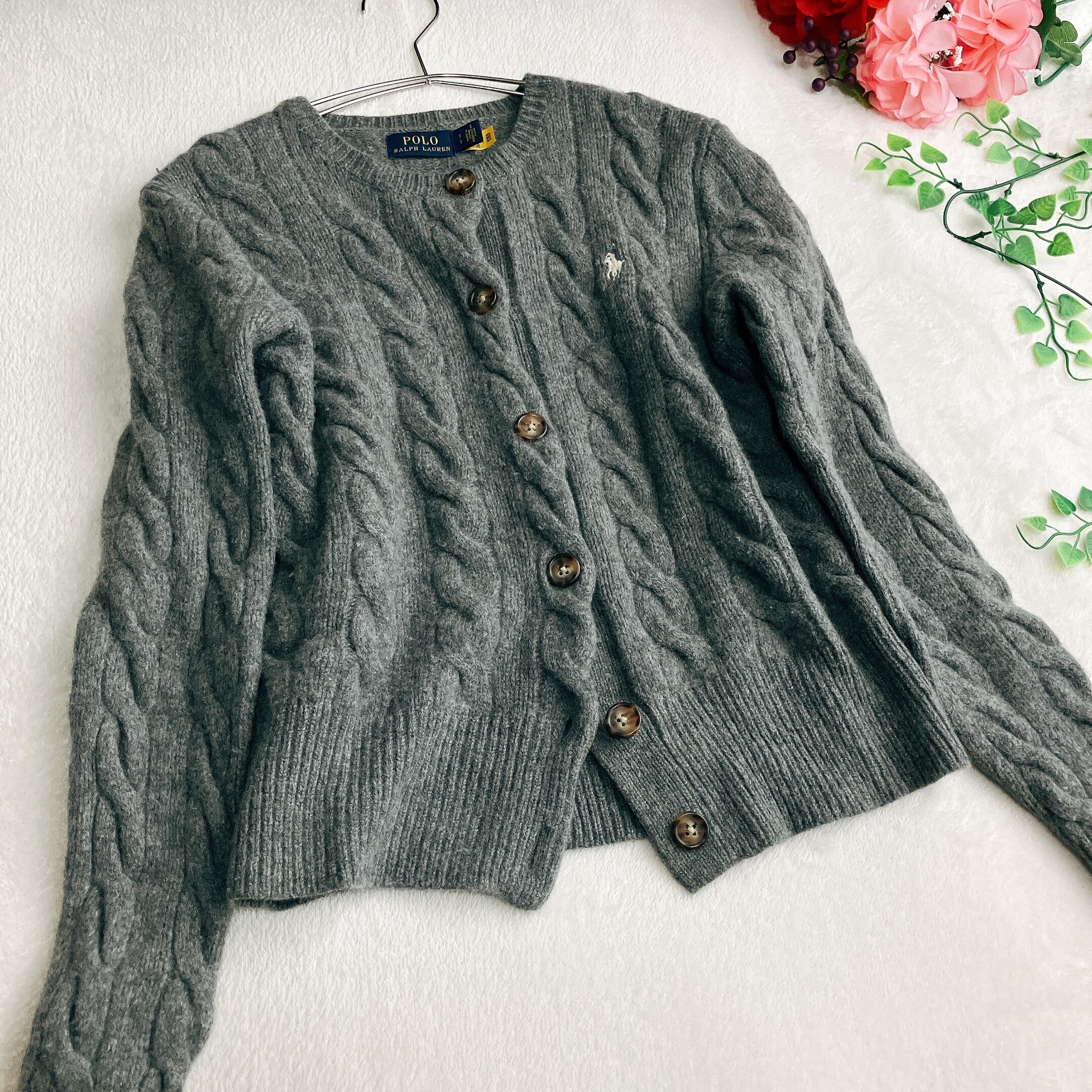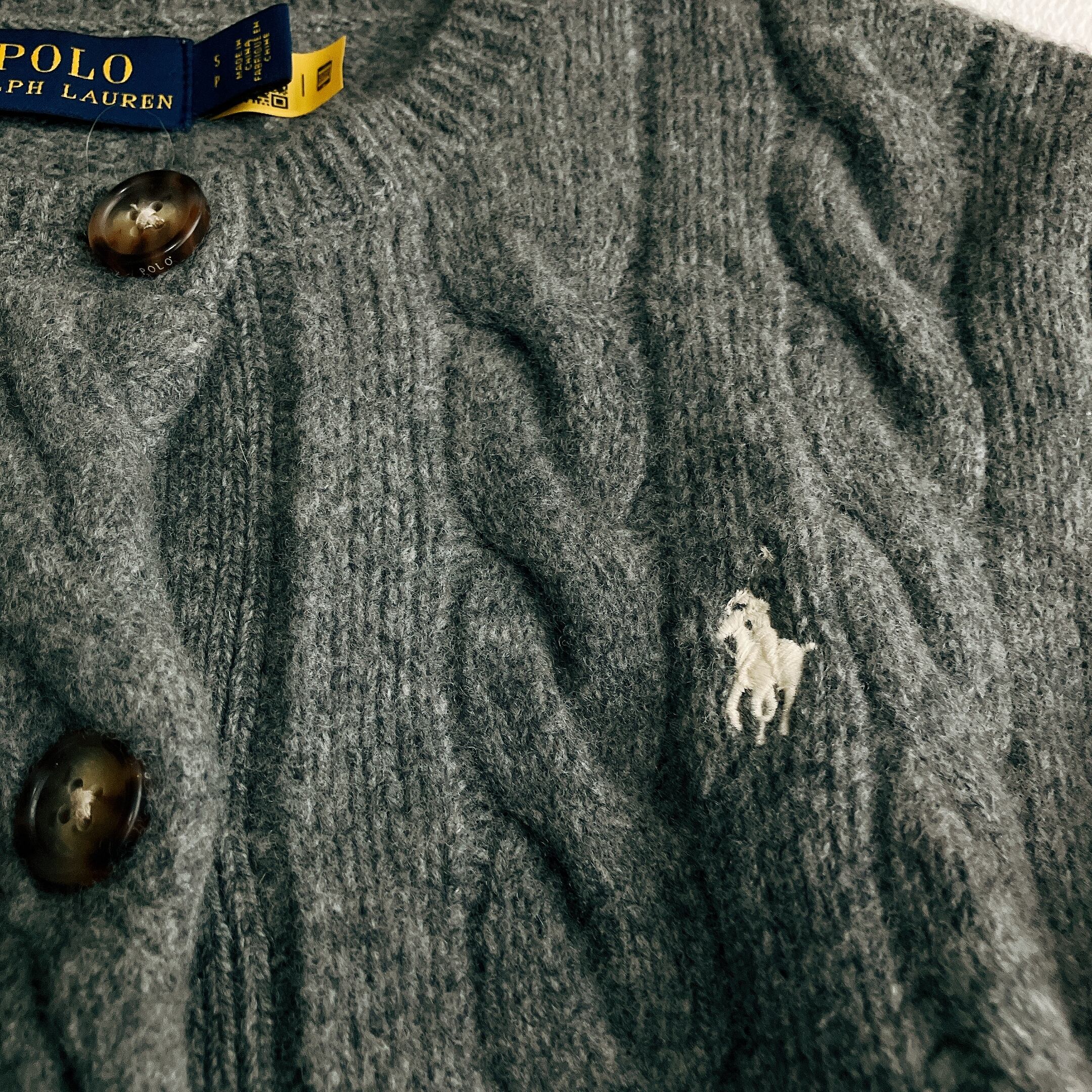 POLO RALPH LAUREN ポロラルフローレン★カシミヤ ウール ケーブルニット ポニー刺繍 カーディガン グレー系