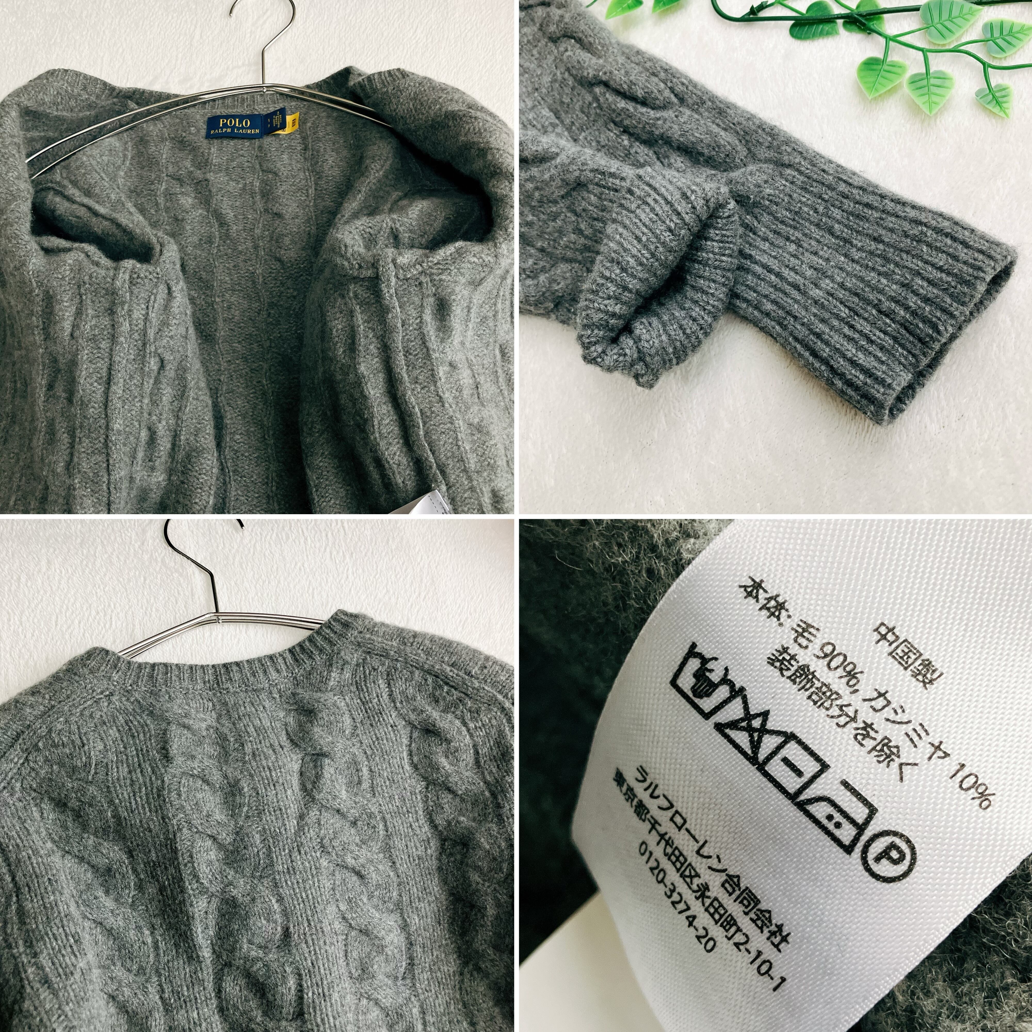 【現行QRタグ/手洗い可/美品】POLO RALPH LAUREN ポロラルフローレン★カシミヤ ウール ケーブルニット ポニー刺繍 カーディガン グレー系