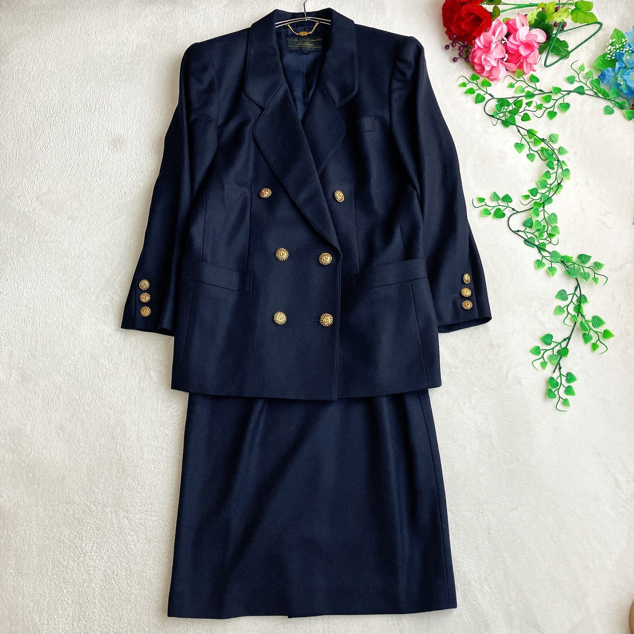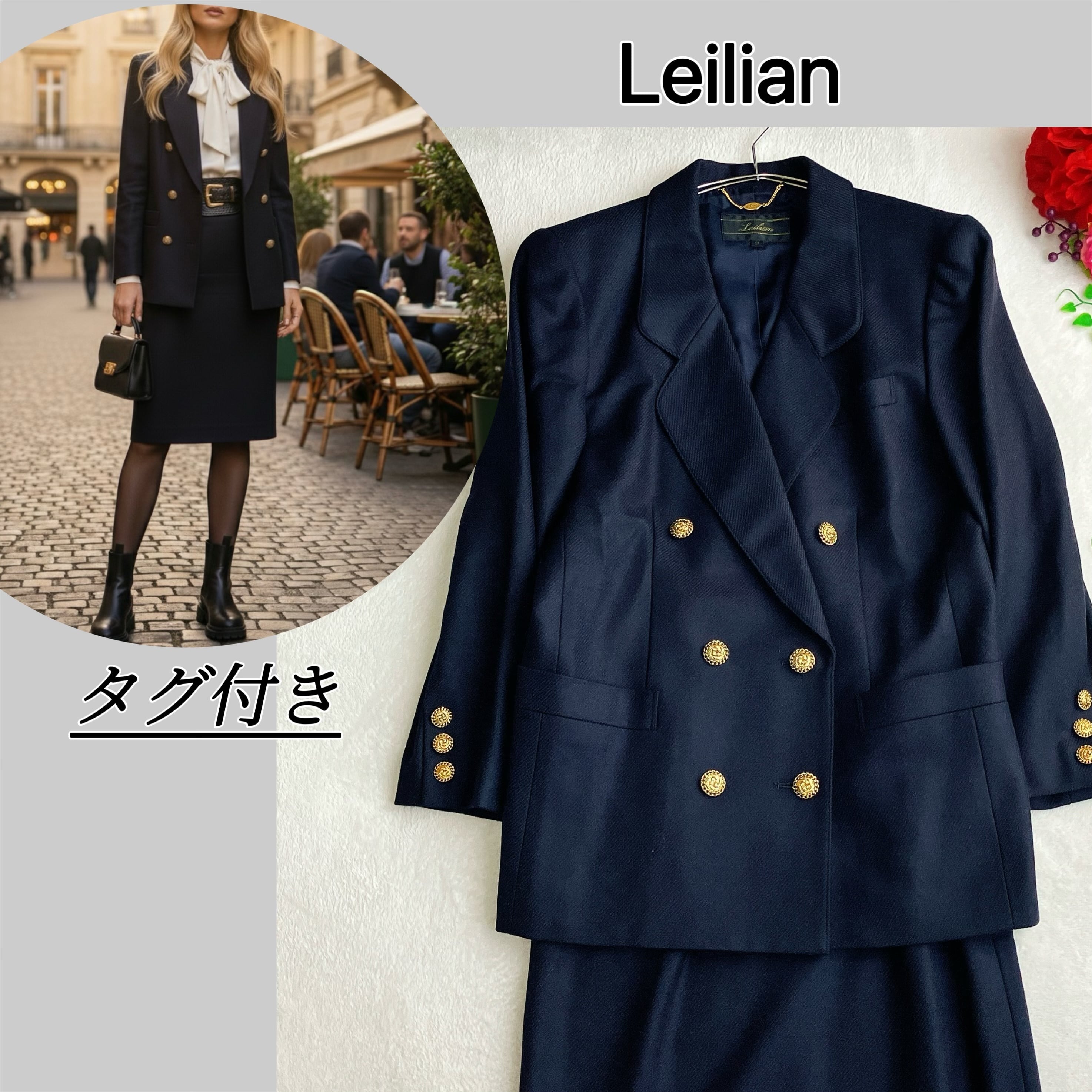 【タグ付き】【極美品】【ドイツ製生地】Leilian レリアン★紺ブレ 金ボタン ダブル スカートスーツ ビッグシルエット セレモニースーツ