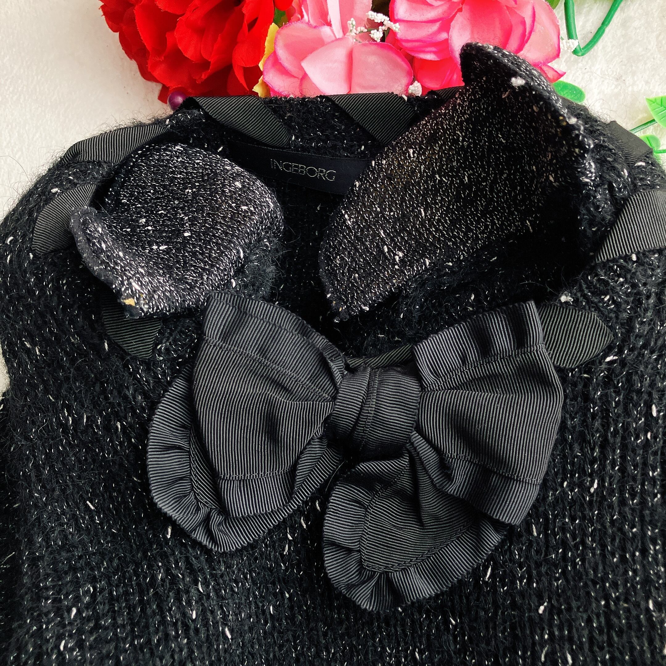 【美品】インゲボルグ INGEBORG★モヘア アルパカ ウール ニット セーター リボン ブラック系