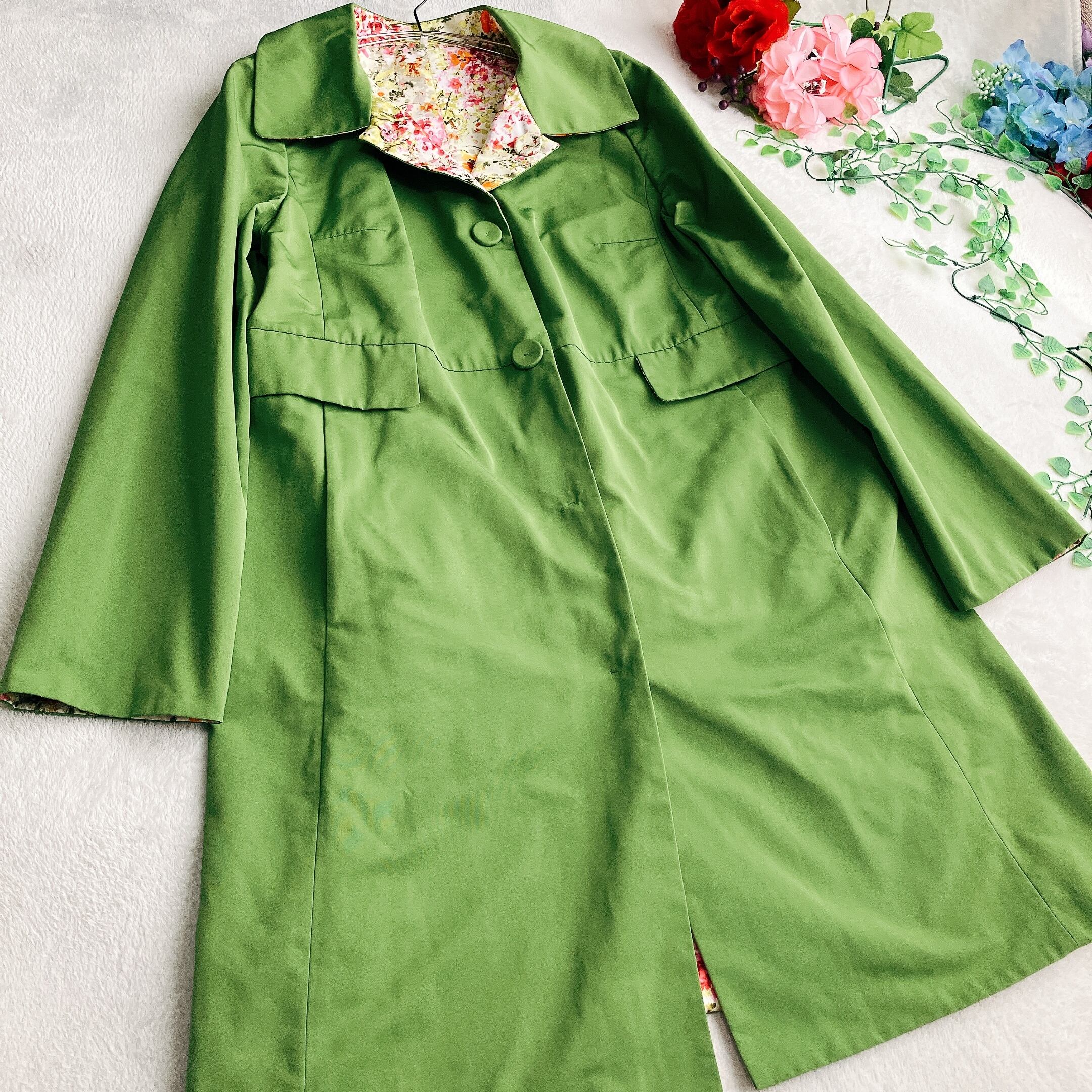 TO BE CHIC トゥービーシック★リバーシブル ステンカラーコート 花柄 総柄 Aライン グリーン系×マルチ