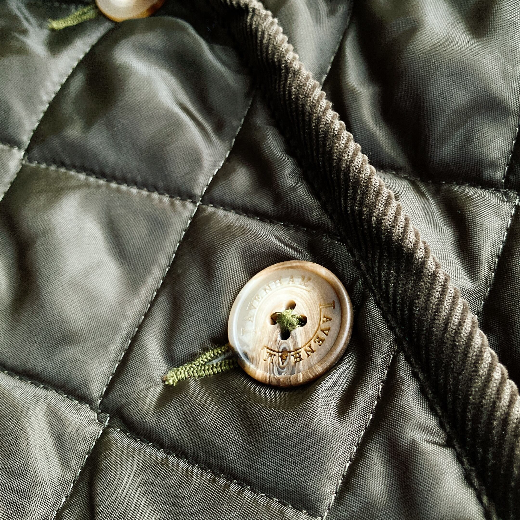 LAVENHAM ラベンハム★中綿 キルティングコート Aライン バイカラー 現行タグ コーデュロイパイピング ロゴボタン フード付き カーキ系
