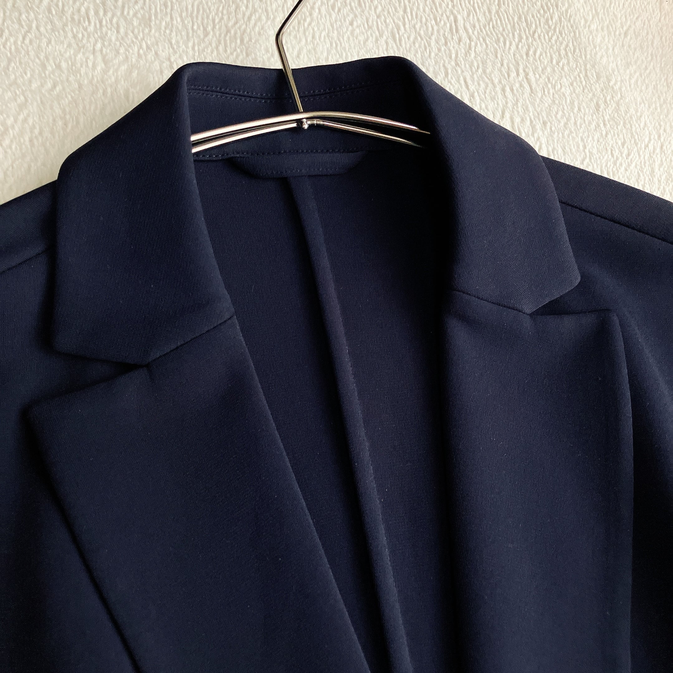 落ち着いたダークネイビーは、ビジネス・セレモニー・フォーマルまで対応可能。ジャケット単体・パンツ単体でも着回ししやすく、**MACKINTOSH(マッキントッシュ)**ならではの洗練された大人のパンツスーツです。