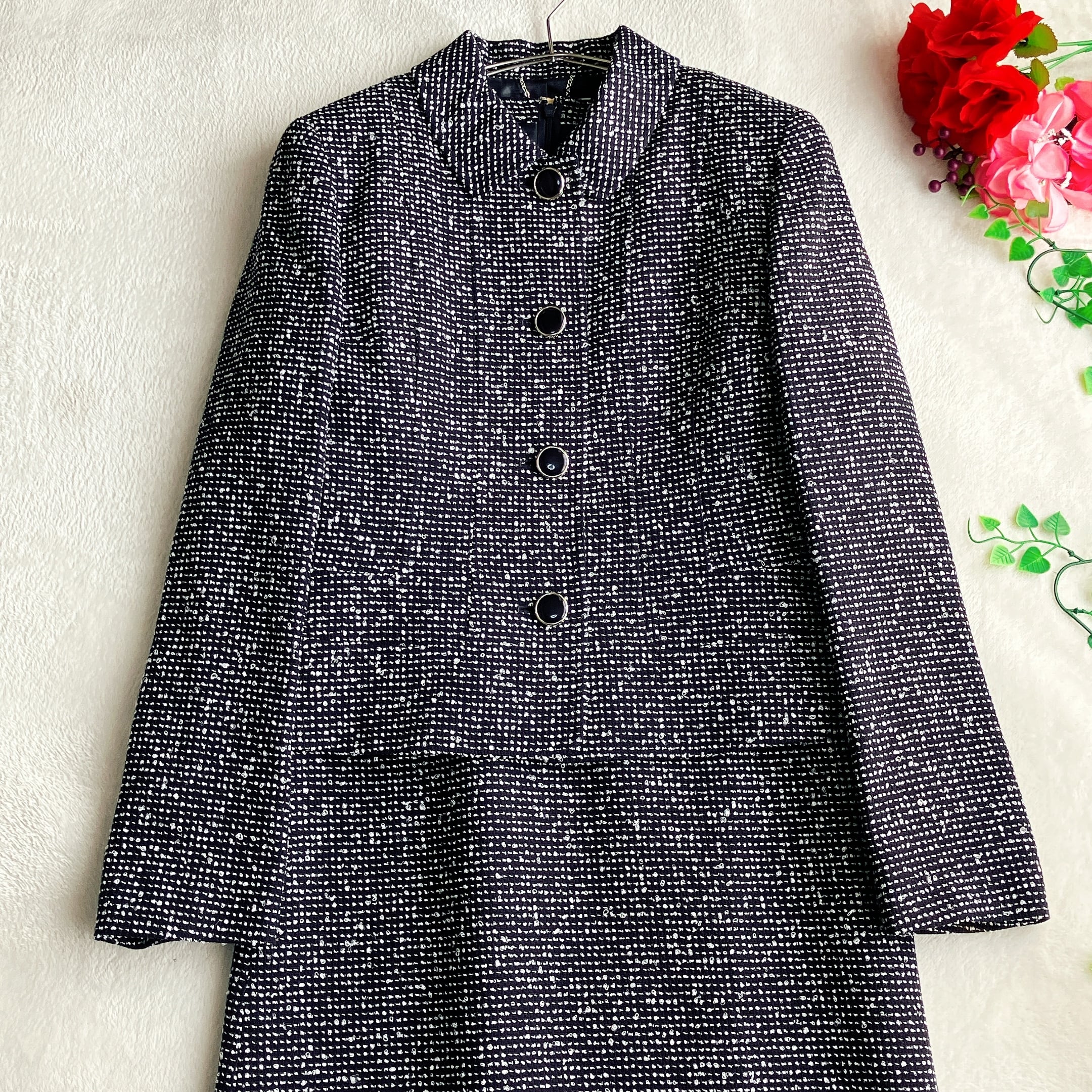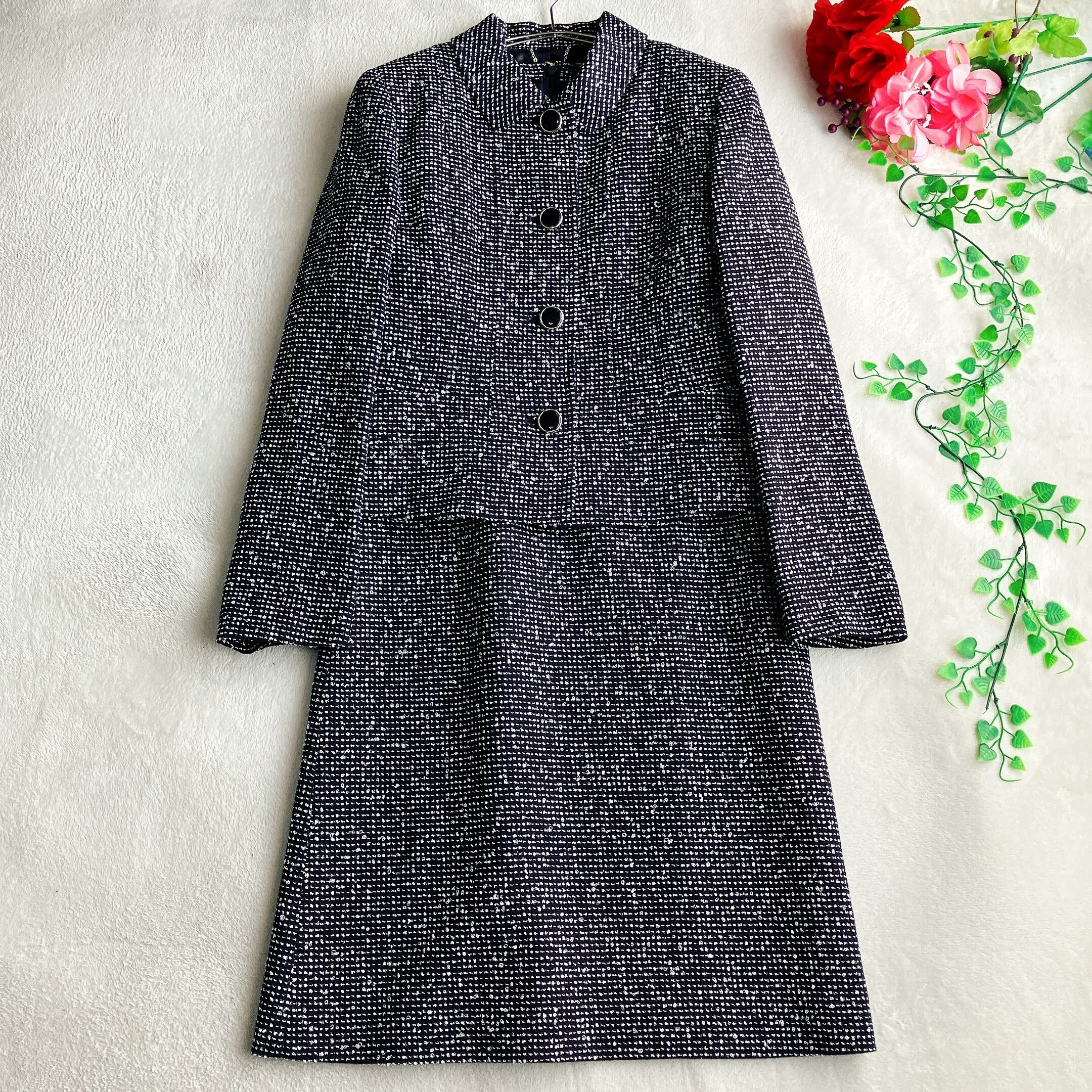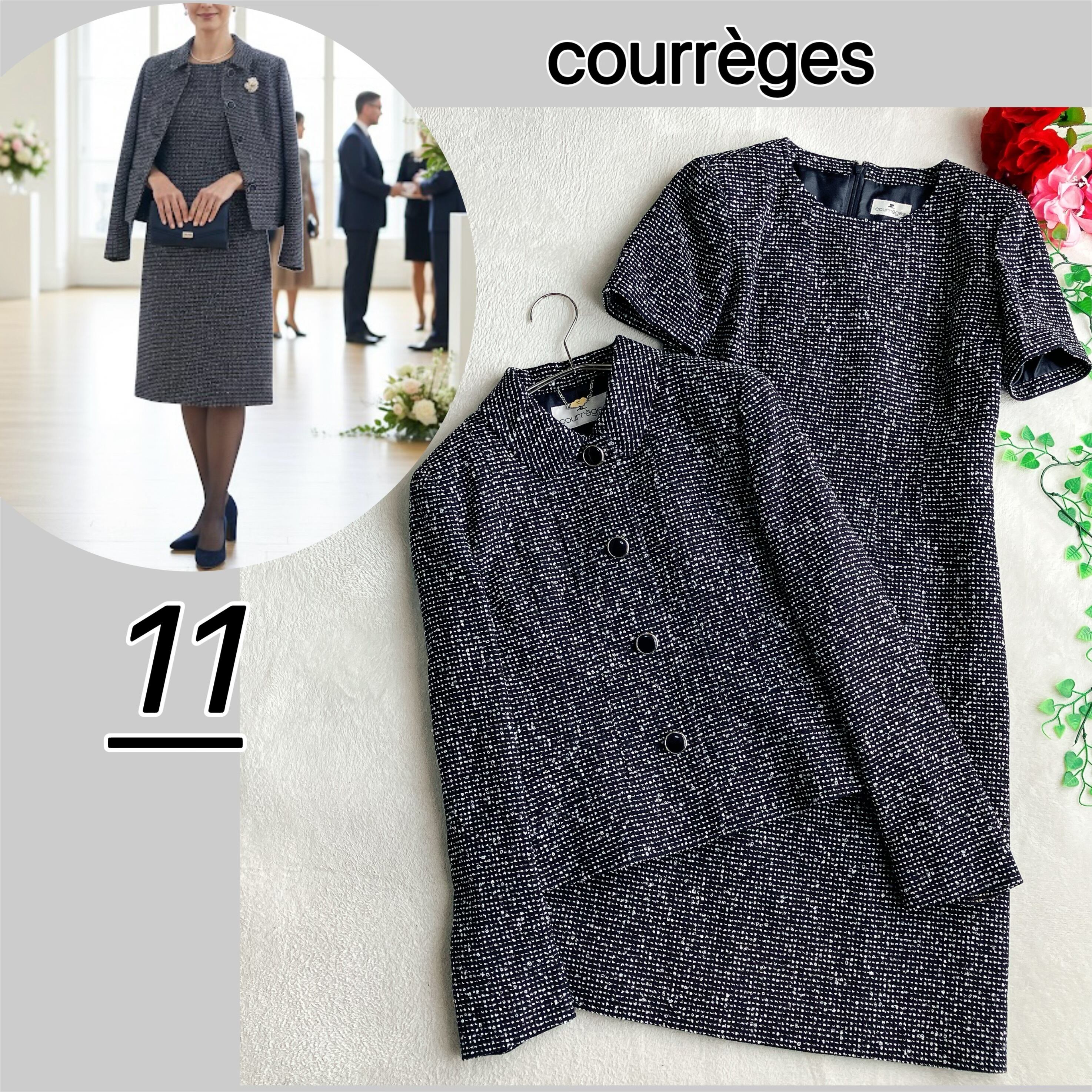 courreges(クレージュ)らしい上質なツイード ワンピーススーツ。ブラック×ホワイトの定番配色で、入学式・卒業式・結婚式・フォーマル・セレモニーなど幅広いシーンに対応します。