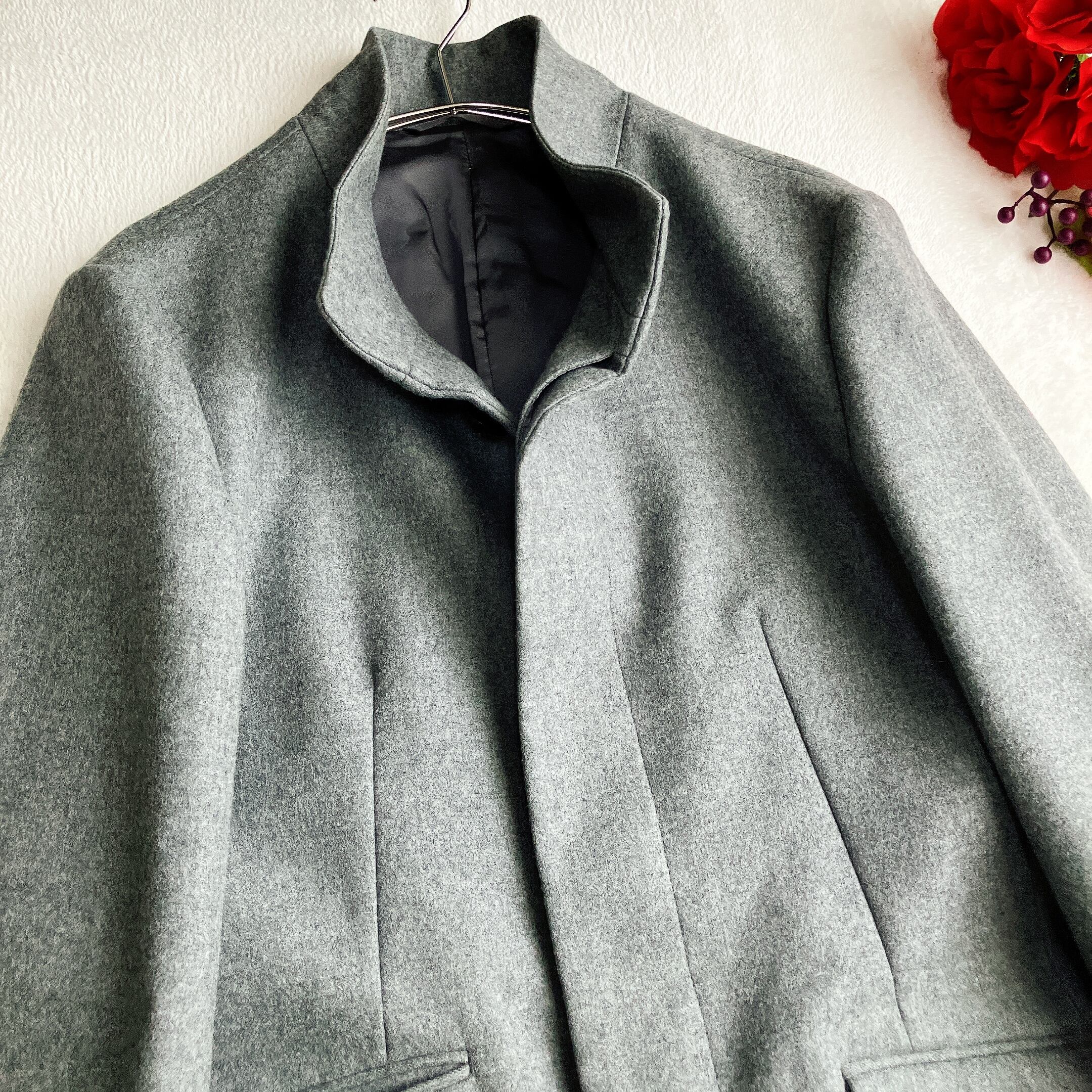 エポカウォモ EPOCA UOMO★スタンドカラーコート 比翼ボタン ウール グレー